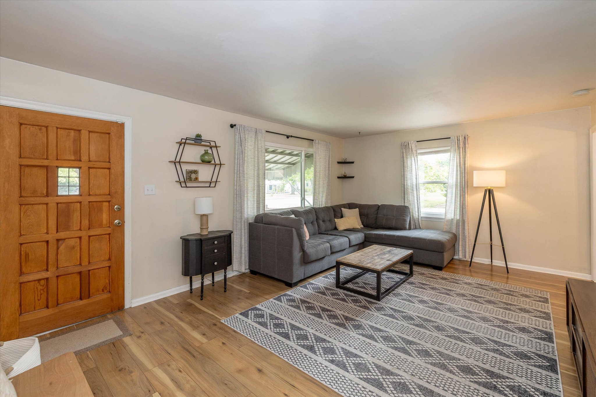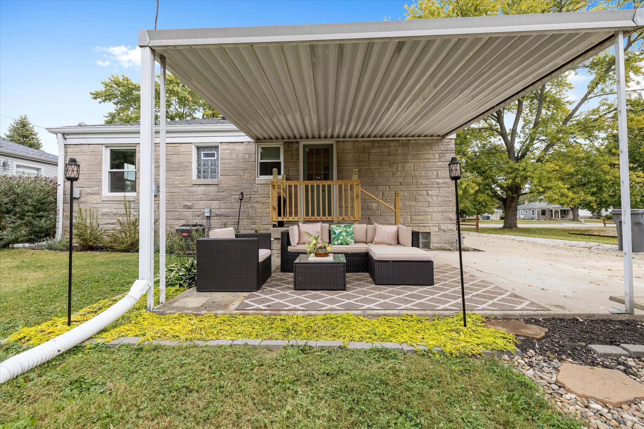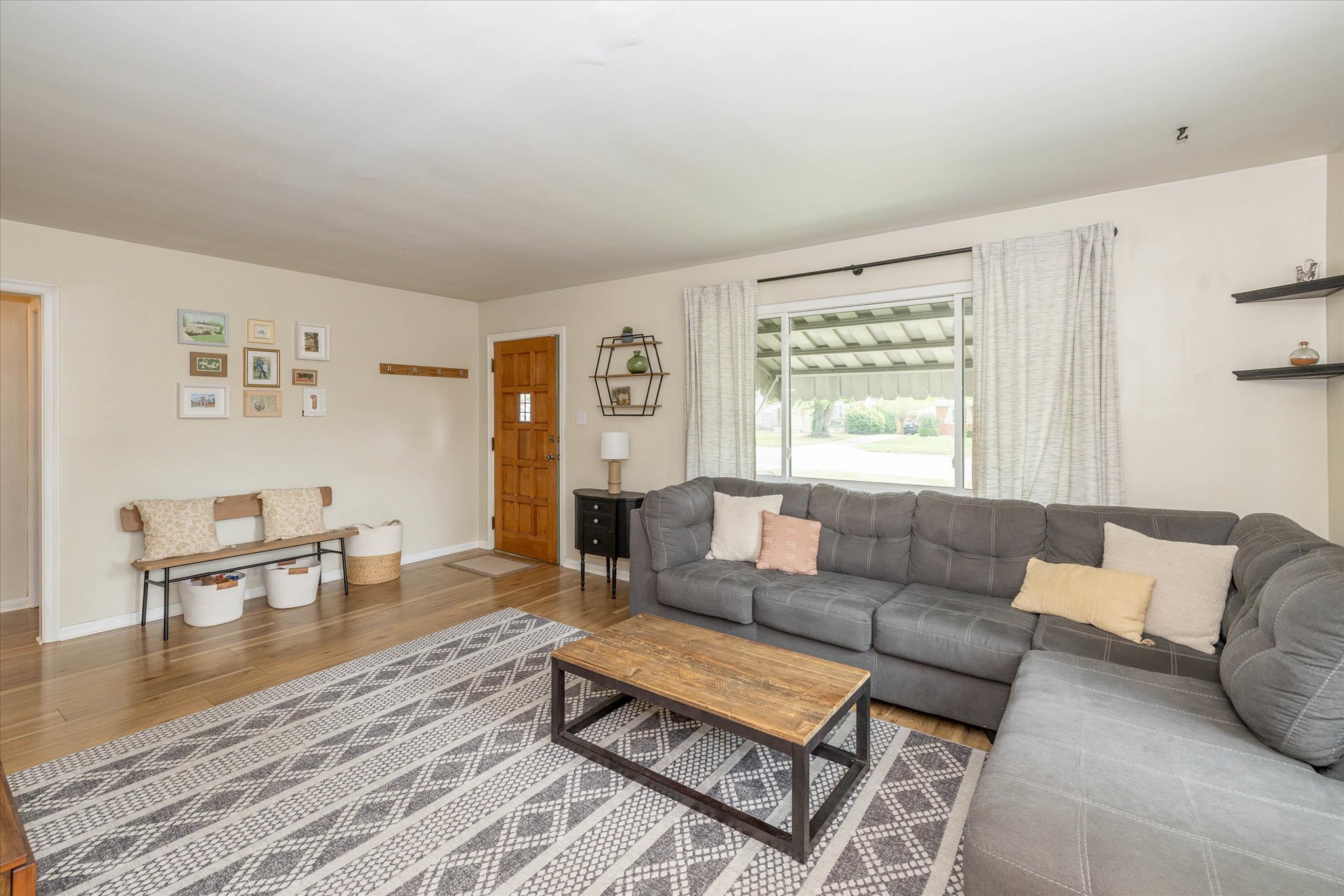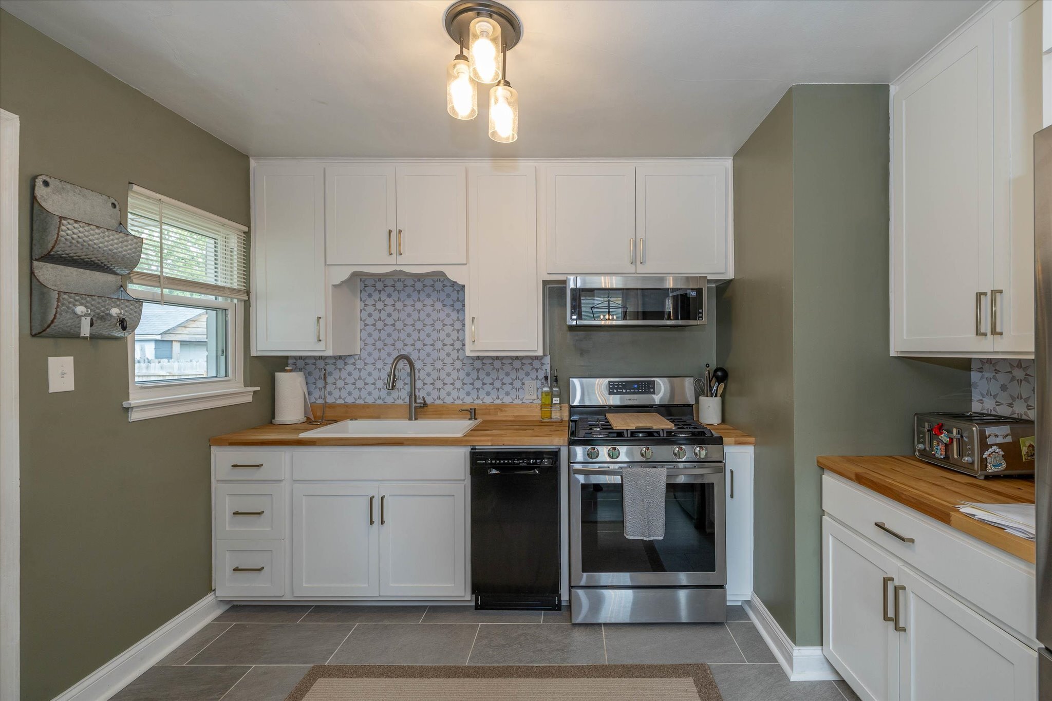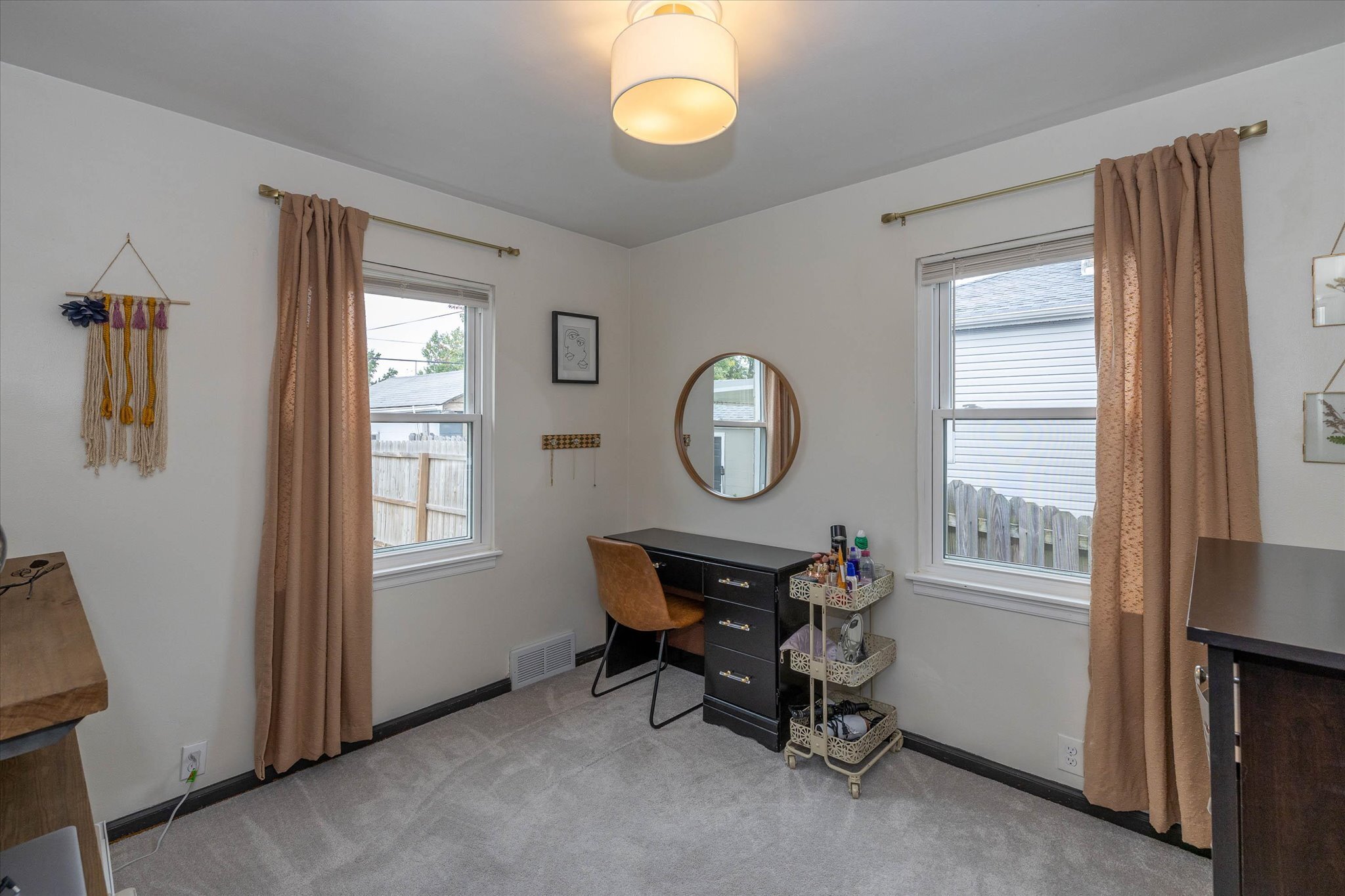 Rare opportunity just north of Irvington! This charming 2 bed 1 bath home has been renovated and exudes warmth with wood and thoughtfully curated design elements. The kitchen features-newer stainless steel gas stove oven, a low profile microwave, a double door refrigerator/freezer, butcher block countertops, white cabinetry, a built-in wine bottles storage, and retro geometric backsplash to complete a classy cottage kitchen. All new flooring and carpet throughout. Newer roof and gutters installed in 2017. The partially fenced backyard invites you to relax and unwind on the covered patio or around a cozy and warm fire pit. Full basement with laundry hookups, new patio wood railing, and a 2-car garage. Schedule a showing today!