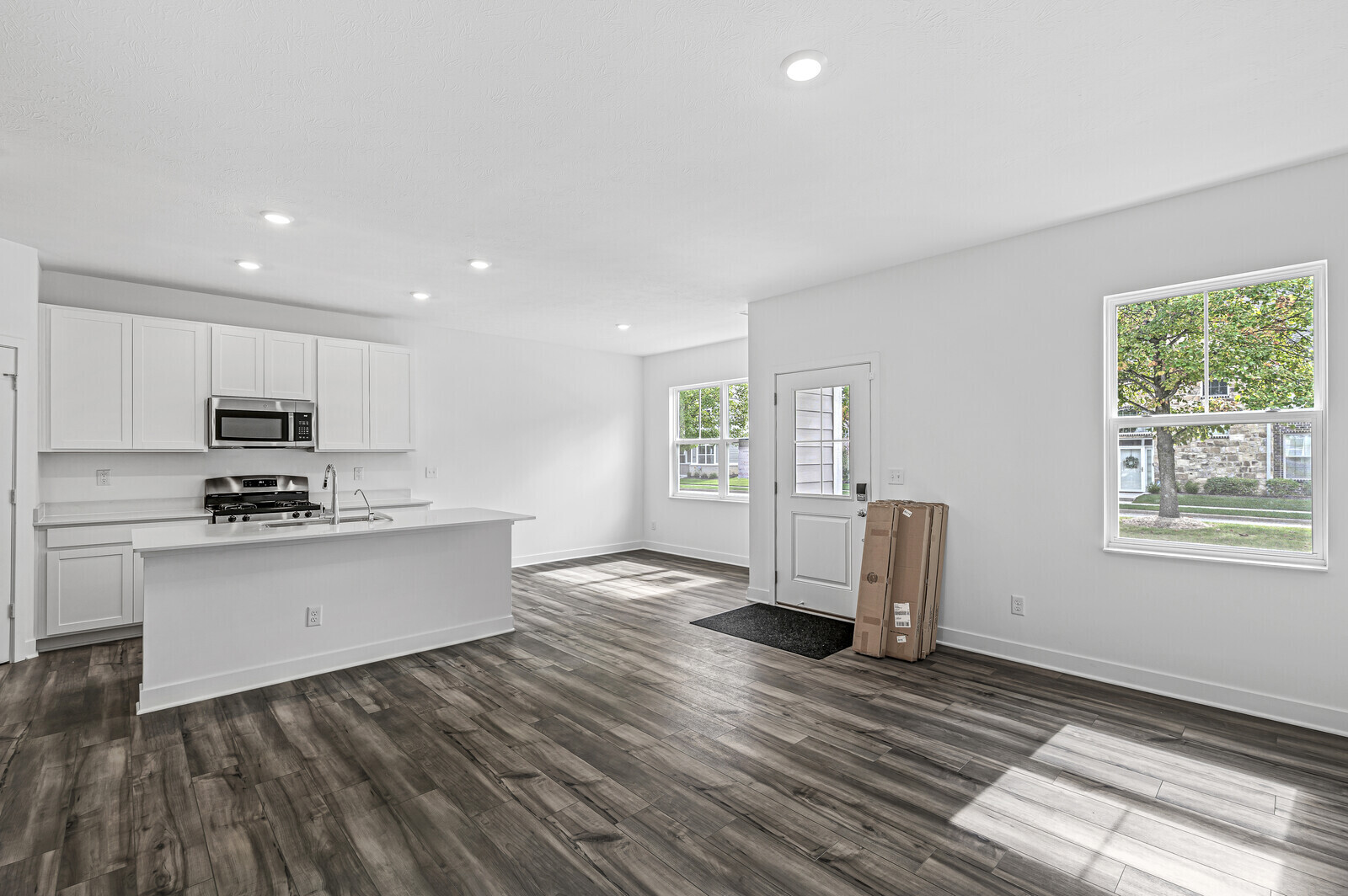 Brand new townhome Endeavor floor plan, never lived in, available to rent. 3 bed 2.5 bath and 2 car garage. Open loft upstairs, laundry upstairs too. Quartz countertops everywhere. Stainless steel gas appliances. Green space across the street, and easy walk to trails. Community pool access. No maintenance on outside, Yard maintained by HOA.