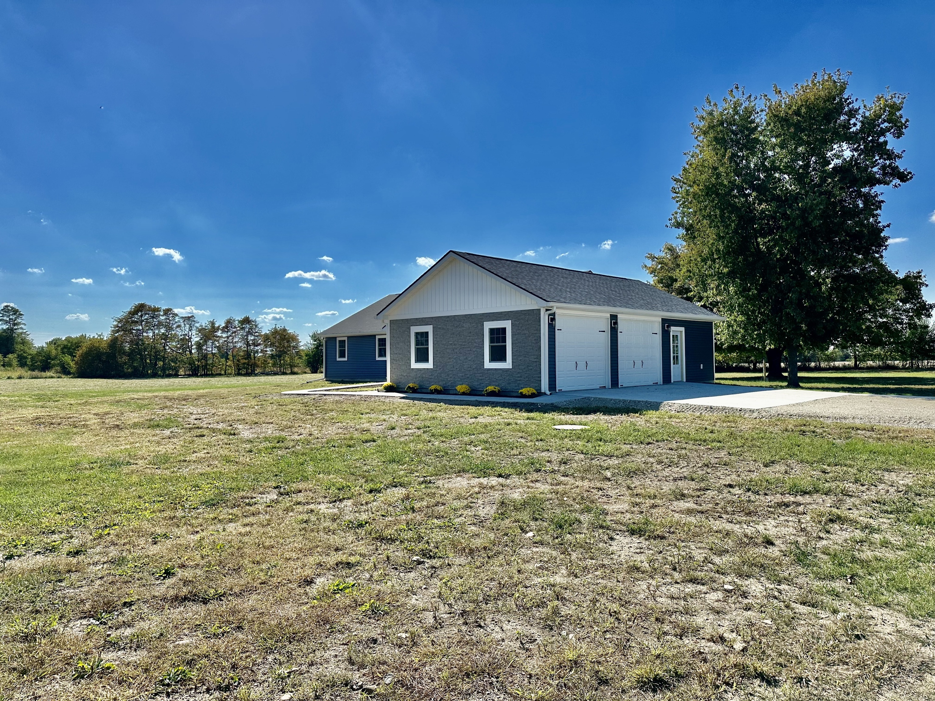 New construction-move in ready! Ranch style home is approximately 3000 sqft (including garage) 3 bedrooms, 2 full baths, 1 half bath and a 2 car attached garage with extra space. The garage is 24×40 and doors are 10′ wide and 8′ high. This home is open concept and has vaulted ceilings in the living area. Kitchen has granite countertops. All GE Appliances that include refrigerator, stove, garbage disposal, and dishwasher. There is a den/office for whatever your needs may be. Total electric with air to air heat pump. Home is spray foam insulated. 16×20 shed with concrete floors and new siding. Home sits on 3 acres and would be perfect for 4-H animals or livestock. There is even room to build a barn! Don’t wait, see this charming home now!