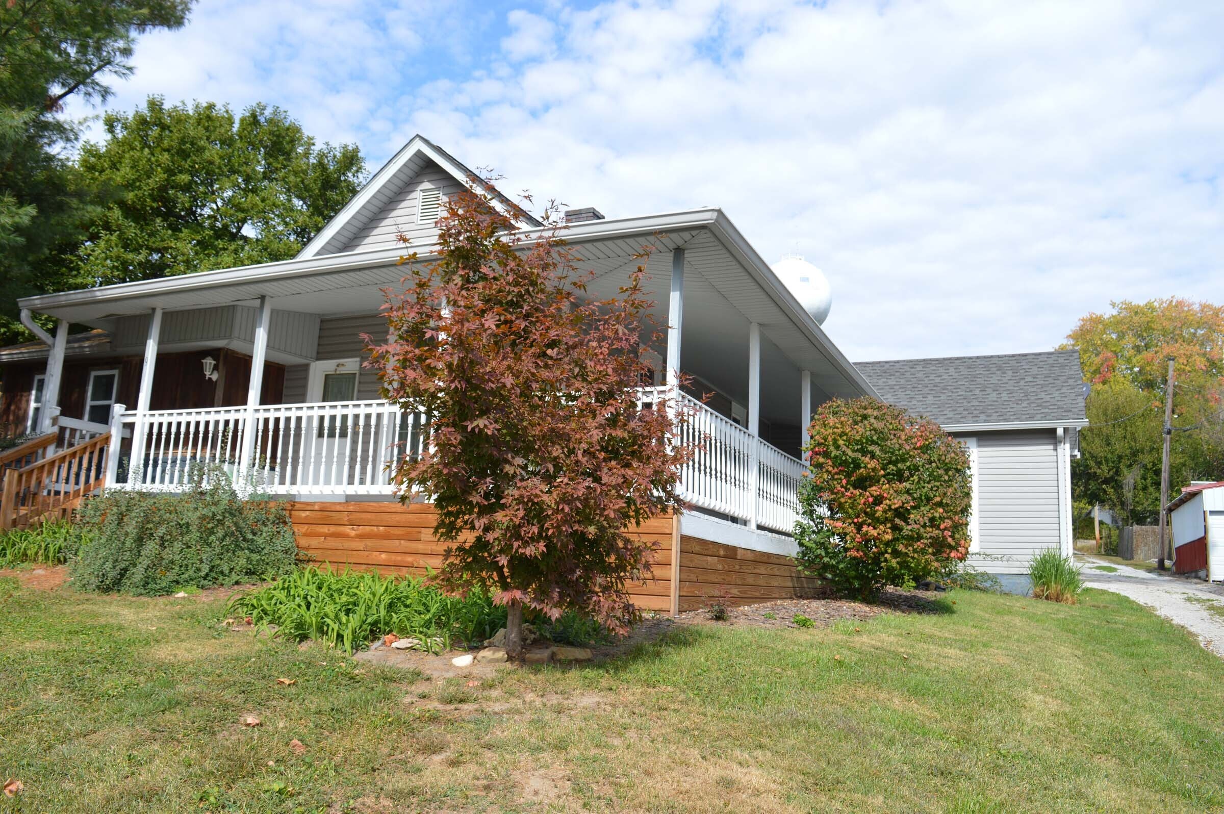 Traditional style home with many updates. Home has wrap around porch, detached garage, nice landscaping and some privacy fencing. Concrete bench is excluded from sale. There are 3 bedrooms, 1 large bath with washer/dryer hook up on main floor. There is a partial basement with newer furnace and water heater. The bath has new flooring.