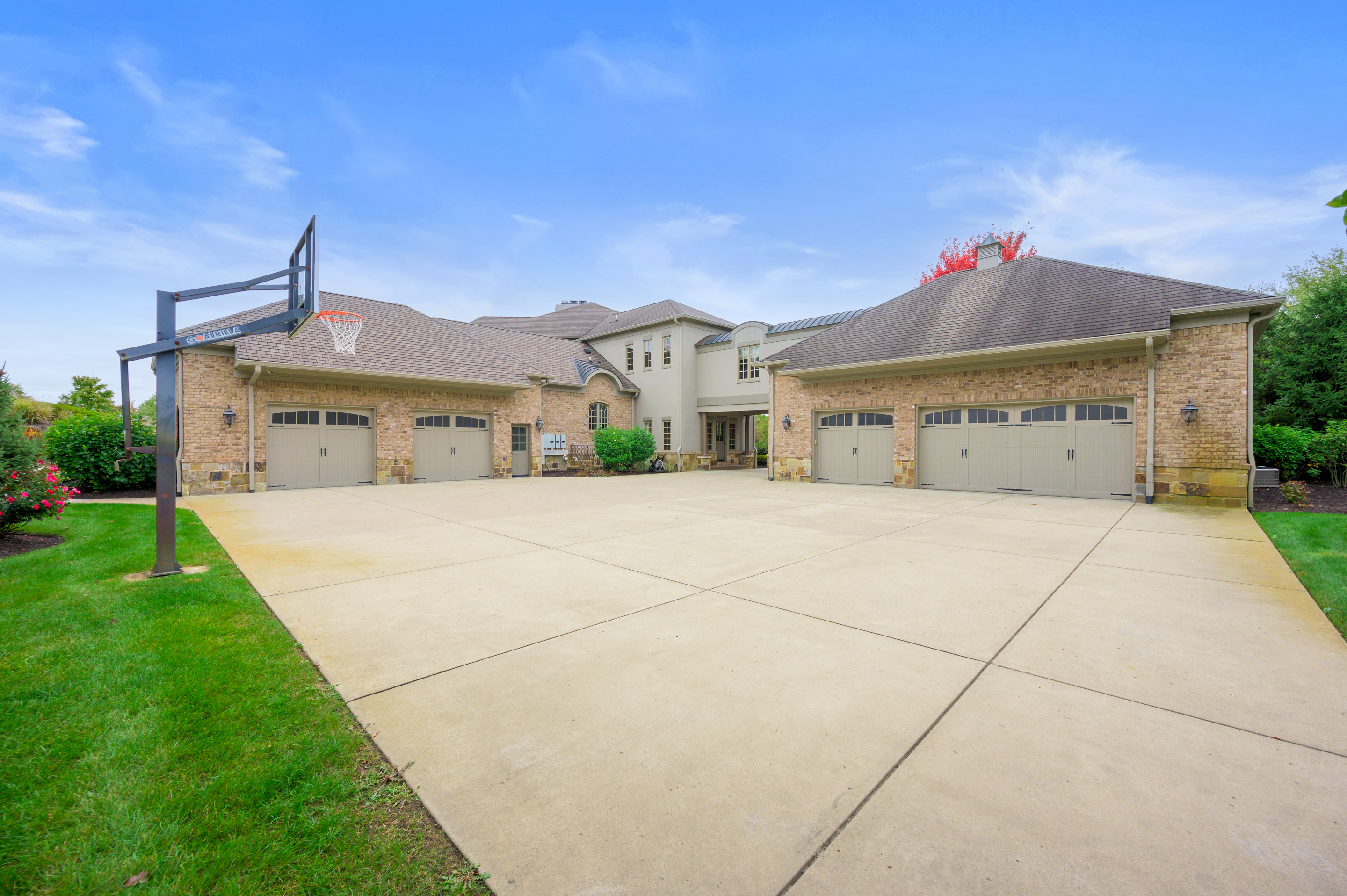 This stunning estate is nestled on a sprawling 22 acres in Greenfield, Indiana at the southern end of Hawk’s Tail golf course, just beyond the 13th green. As the designer, Dale Hughes described the residence, “It has a bit of old-world design, a twist of Tuscan, stately, elegant, yet livable and comfortable.” It’s a testament to timeless craftsmanship and modern luxury. Don’t bother leaving the comfort of your own home with a dedicated half court gymnasium complete with a workout space, locker room, and steam shower. Don’t forget to step outside to a spectacular pool with a slide and jacuzzi, a loggia and outdoor kitchen beckoning you to unwind and savor the Indiana sunshine.