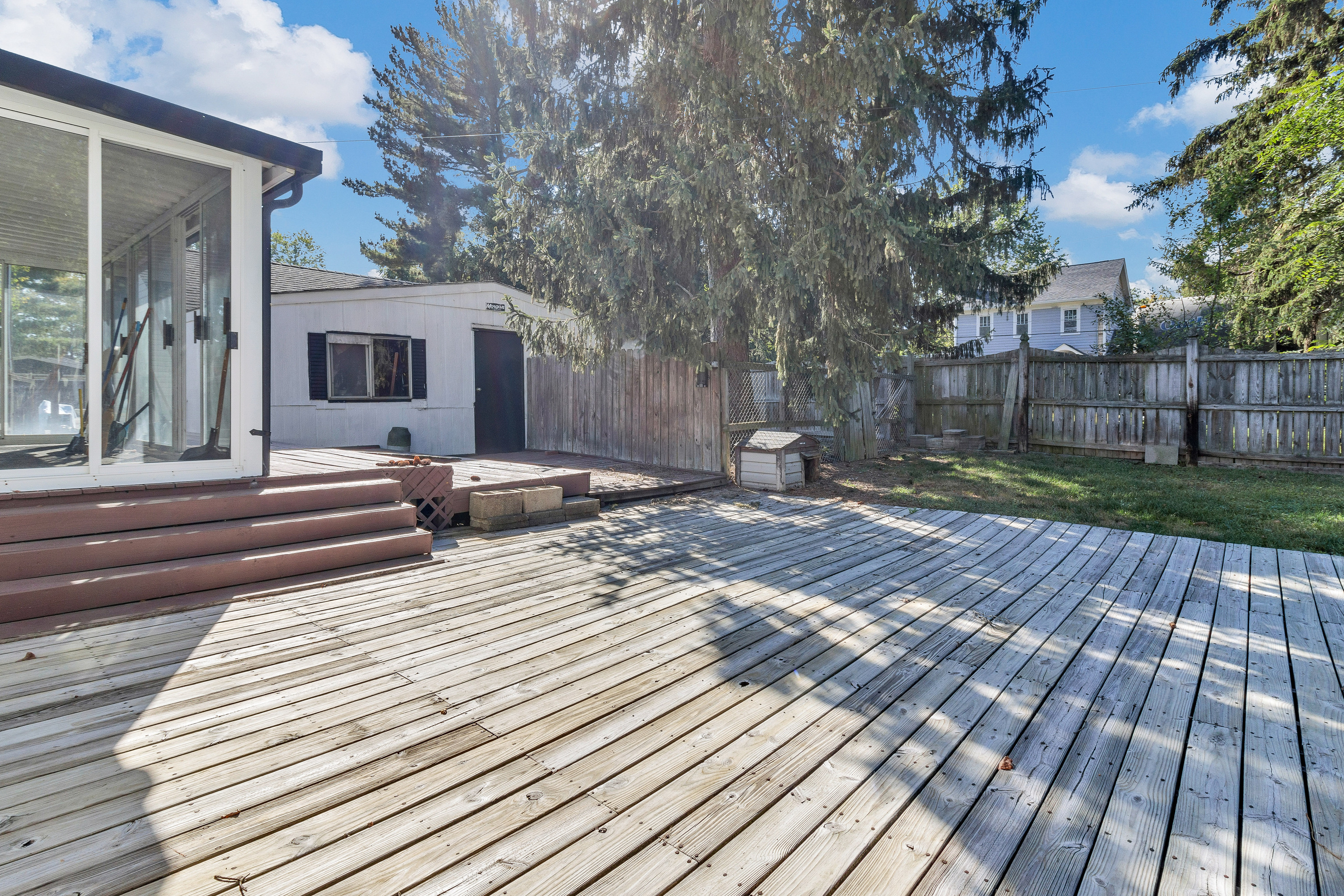 Nice Cape Cod home on large corner lot! 2bd/2ba, plus basement, lots of original details. Newer windows, siding, furnace, a/c, water heater, and water softener. Needs cosmetics. Full Potential commercial usage (no variance currently in-place). Large 3-season sunroom, 2-car garage, plus a 20×10 workshop, and a separate storage shed.
