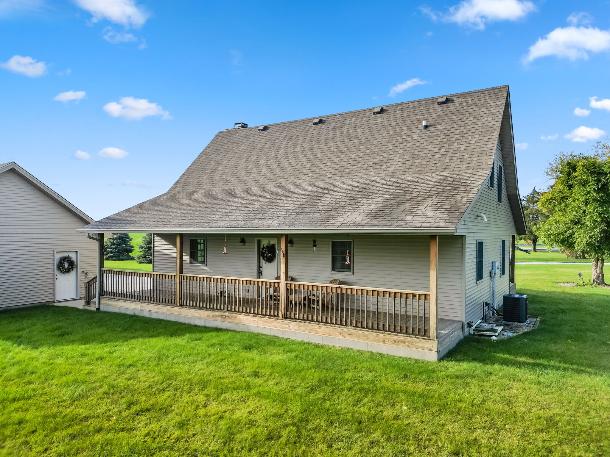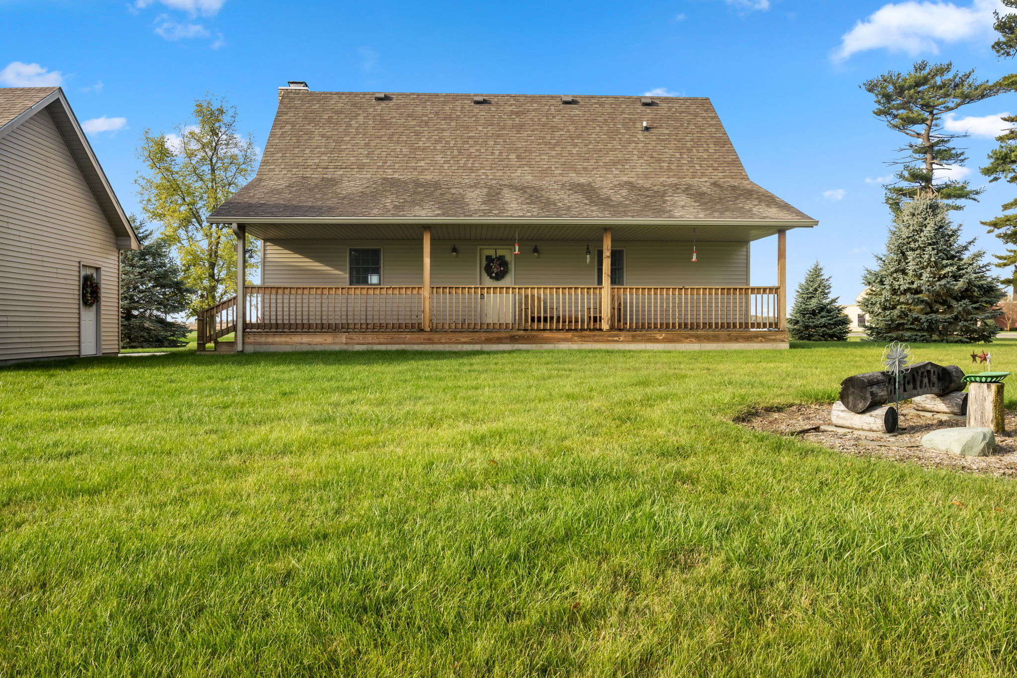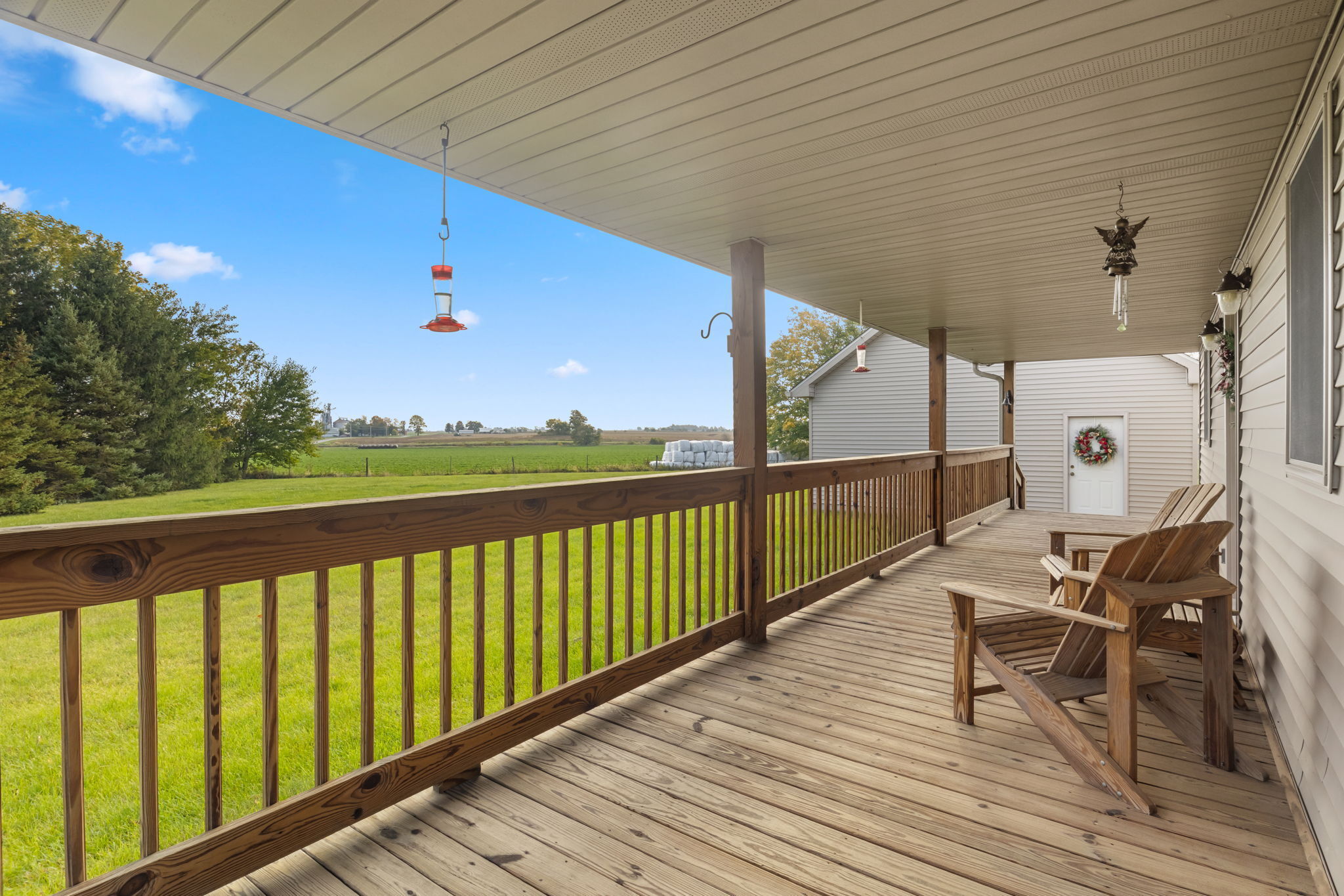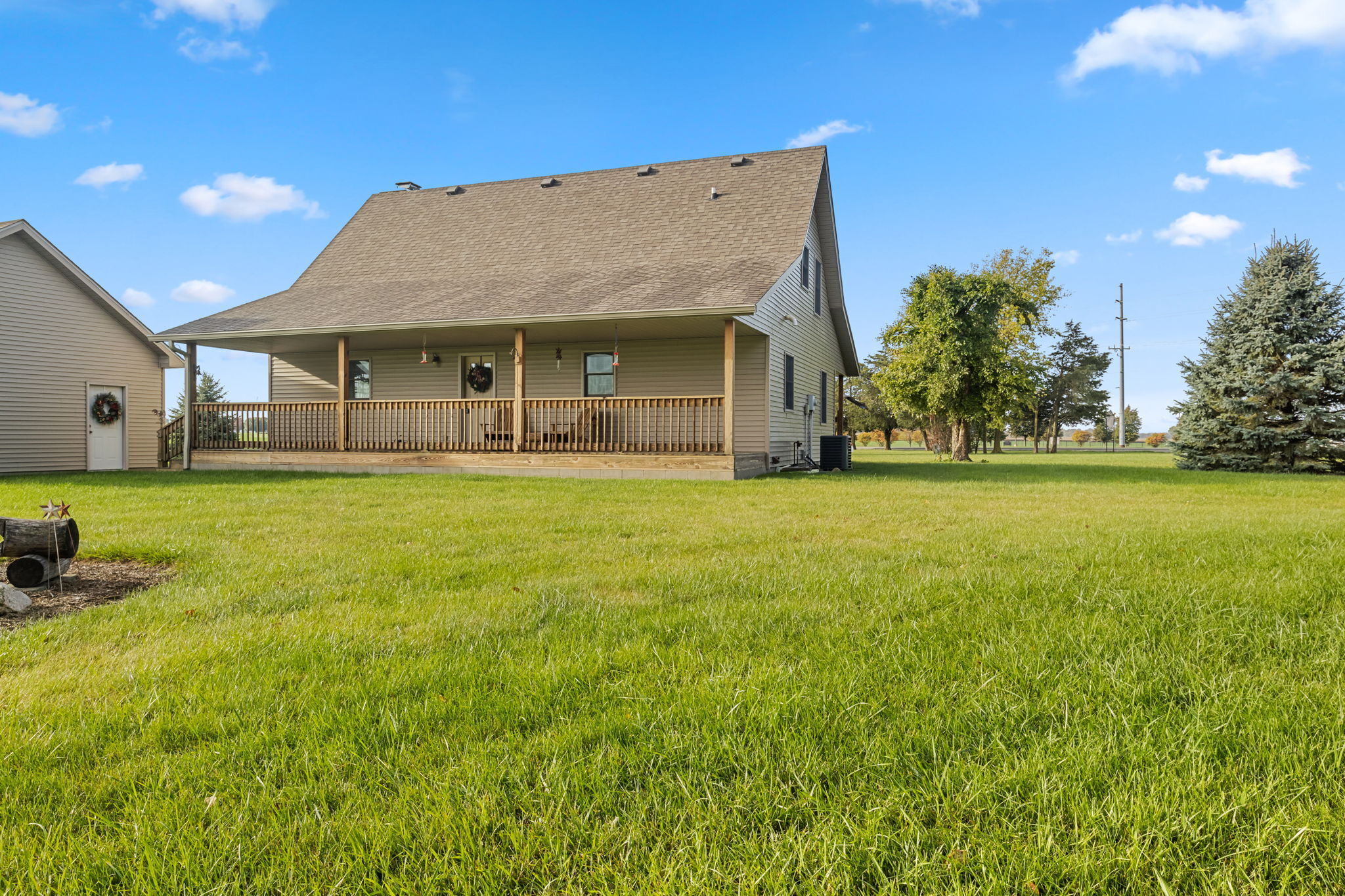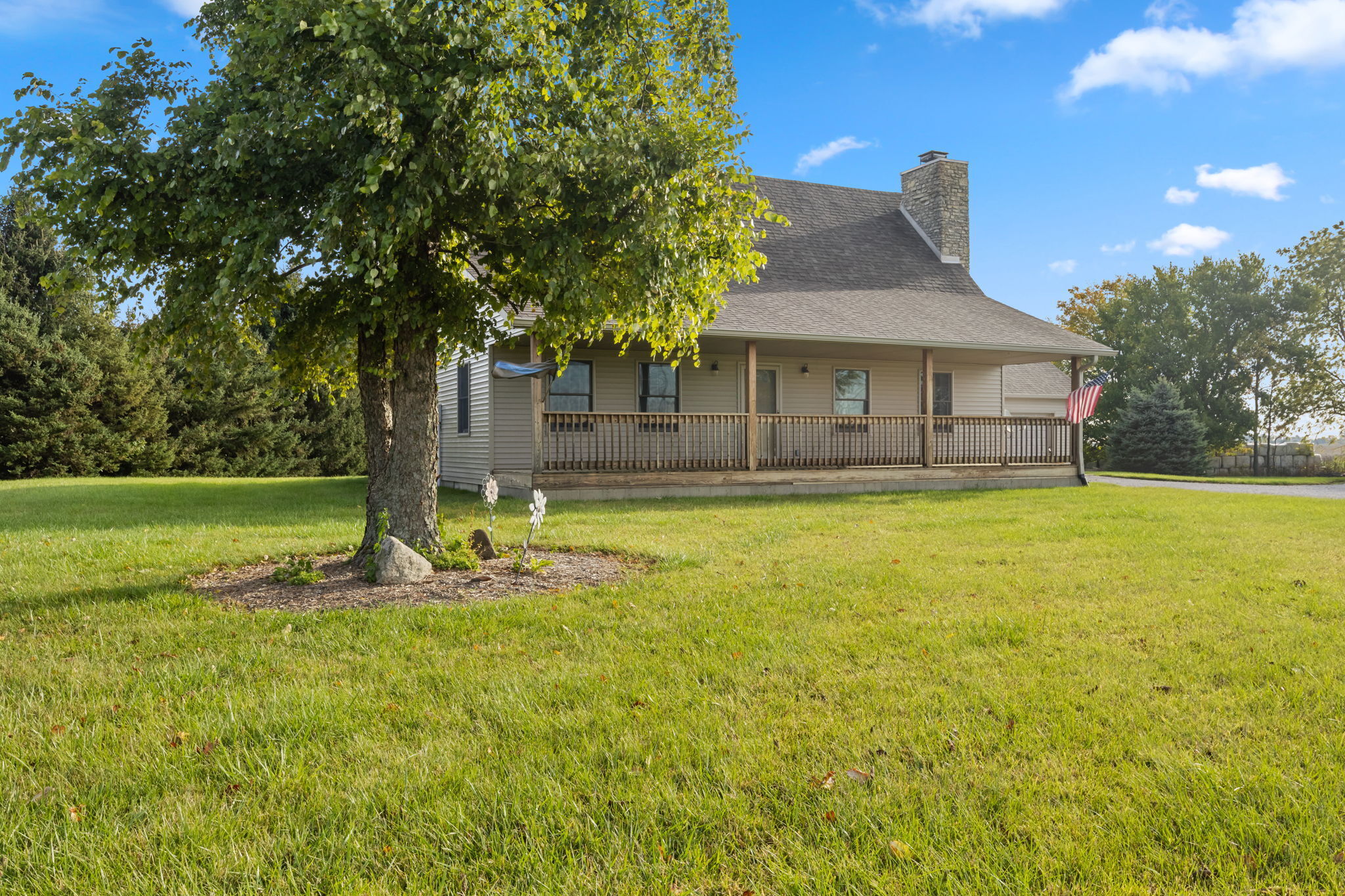 Beautiful Cabin Style Home with a floor to ceiling Stone Fireplace! Located in Southwestern Boone County across from Granville Wells Elementary and only 3 minutes north of I-74 Jamestown Exit northwest of Indy. Home has 6 inch walls providing excellent insulation. All new siding and roof in 2018! A wide stairway in the Great Room with beautiful hardwoods through the open kitchen leads to the loft which is the 2nd BR with its own private bath. The primary BR is on the main with a small walk-in. The bath is across the hall which serves as the downstairs bathroom. The 3rd smaller BR is currently an office. Utility room with owner owned water softener, water heater, furnace and washer and dryer are inside the back door. The home has a great covered front porch deck 8×40 and also the same sized deck at the rear of the home for great summer entertainment. The Detached 2 car 26×24 garage has electric and lots of room. The 40×30 Barn is a dream for the mechanic as well as tall vehicles with its big over 11′ wide x 13′ high commercial door. It features a furnace, air compressor, and 220 volt outlets and workshop area. The beautiful cared for yard with 2.23 acres makes this well cared property with amazing views a great country home and only minutes to nearby shopping in Brownsburg, Lebanon, or Crawfordsville. as well as 20 minutes from west Indy, via I-74 or I-65