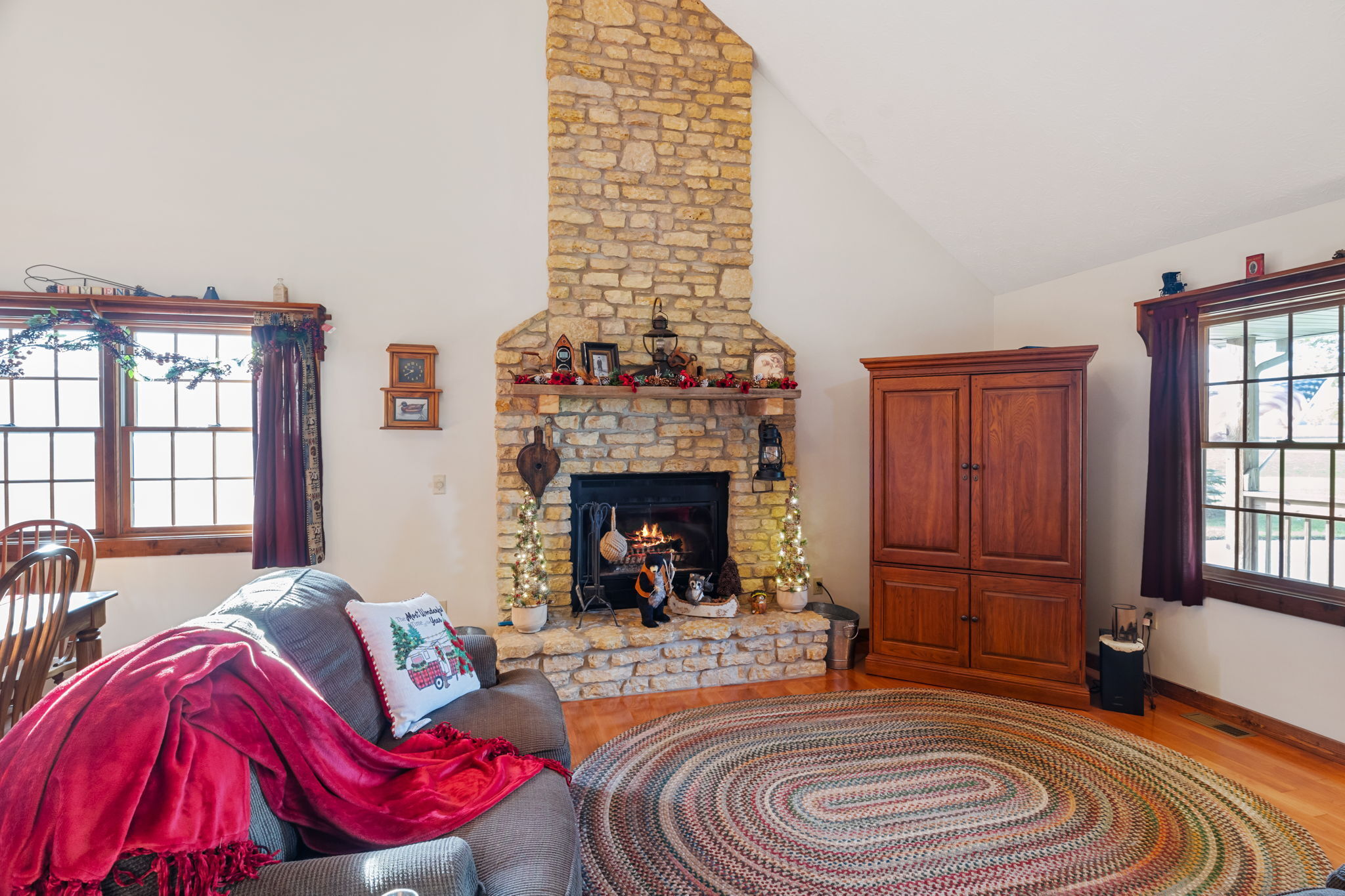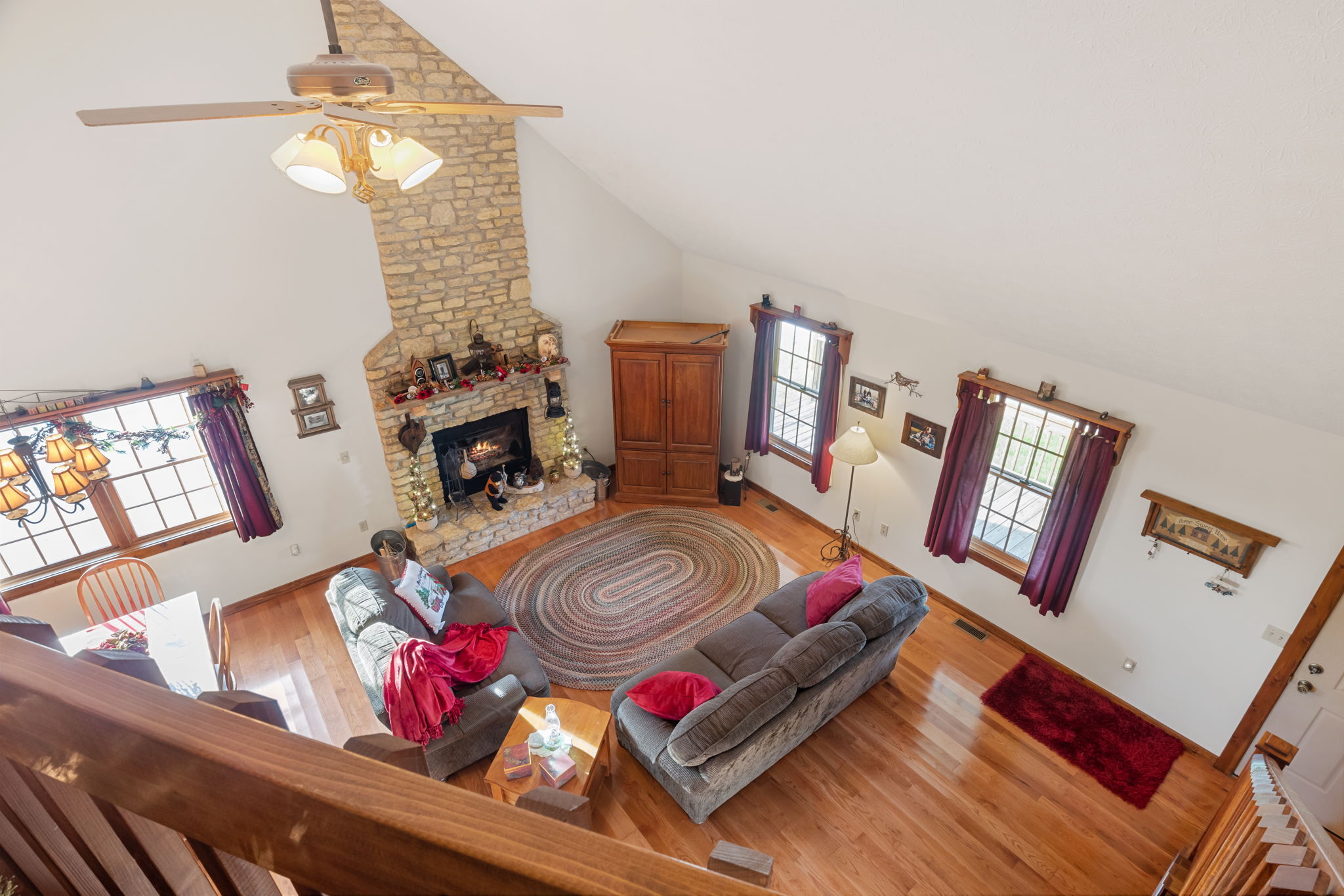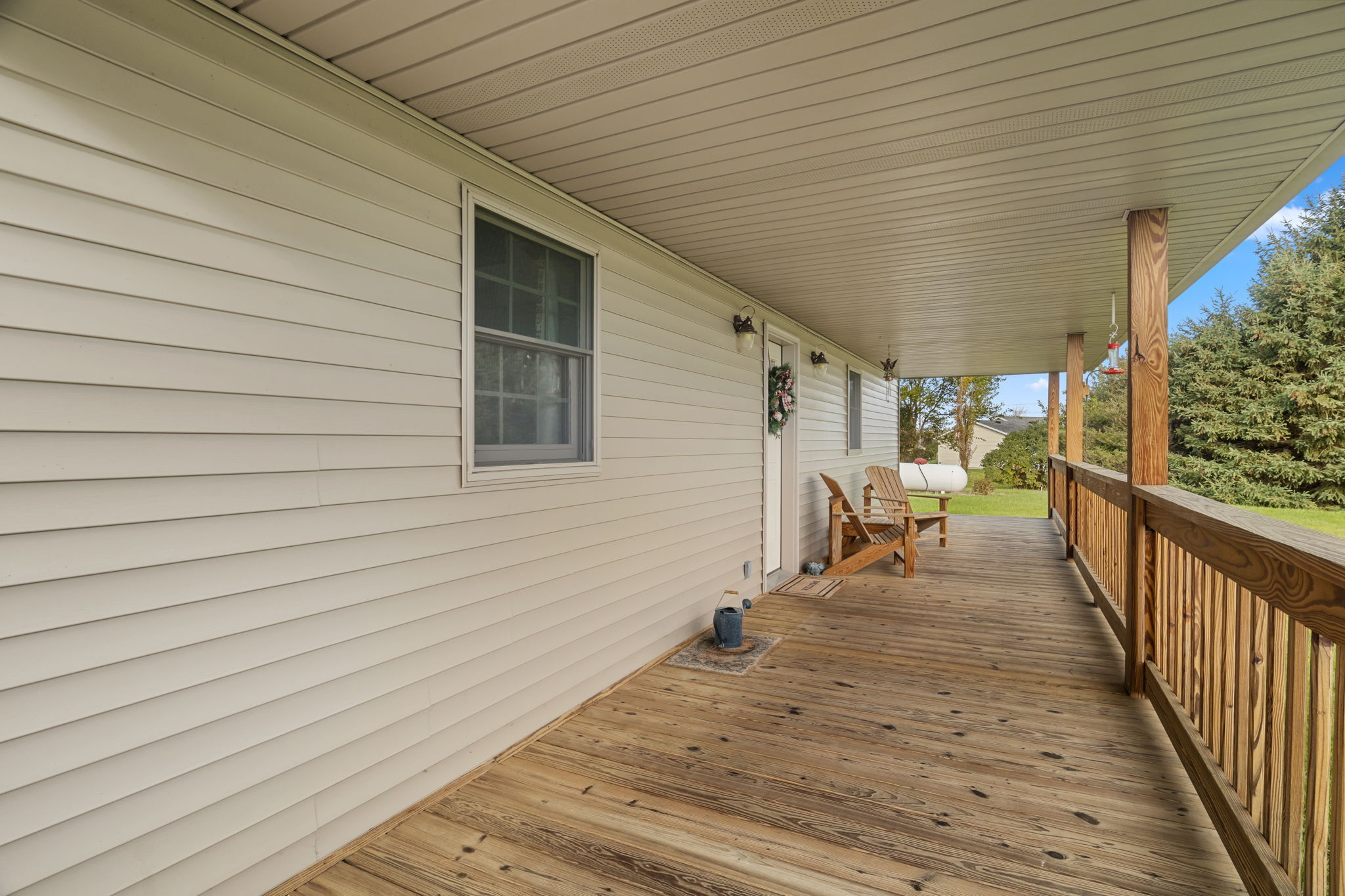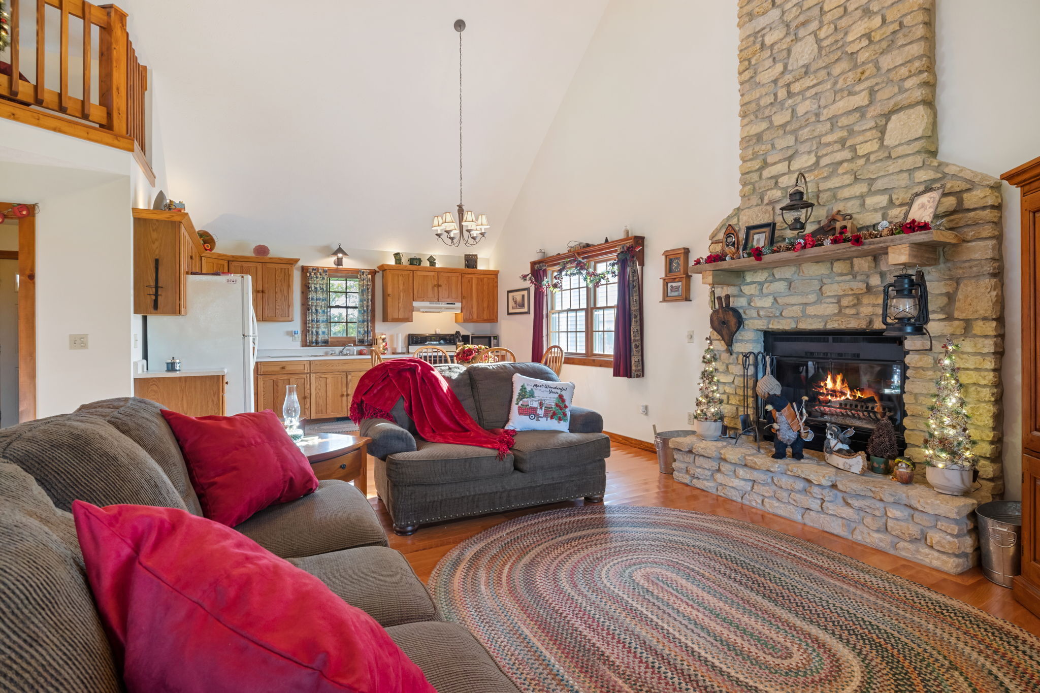Beautiful Cabin Style Home with a floor to ceiling Stone Fireplace! Located in Southwestern Boone County across from Granville Wells Elementary and only 3 minutes north of I-74 Jamestown Exit northwest of Indy. Home has 6 inch walls providing excellent insulation. All new siding and roof in 2018! A wide stairway in the Great Room with beautiful hardwoods through the open kitchen leads to the loft which is the 2nd BR with its own private bath. The primary BR is on the main with a small walk-in. The bath is across the hall which serves as the downstairs bathroom. The 3rd smaller BR is currently an office. Utility room with owner owned water softener, water heater, furnace and washer and dryer are inside the back door. The home has a great covered front porch deck 8×40 and also the same sized deck at the rear of the home for great summer entertainment. The Detached 2 car 26×24 garage has electric and lots of room. The 40×30 Barn is a dream for the mechanic as well as tall vehicles with its big over 11′ wide x 13′ high commercial door. It features a furnace, air compressor, and 220 volt outlets and workshop area. The beautiful cared for yard with 2.23 acres makes this well cared property with amazing views a great country home and only minutes to nearby shopping in Brownsburg, Lebanon, or Crawfordsville. as well as 20 minutes from west Indy, via I-74 or I-65