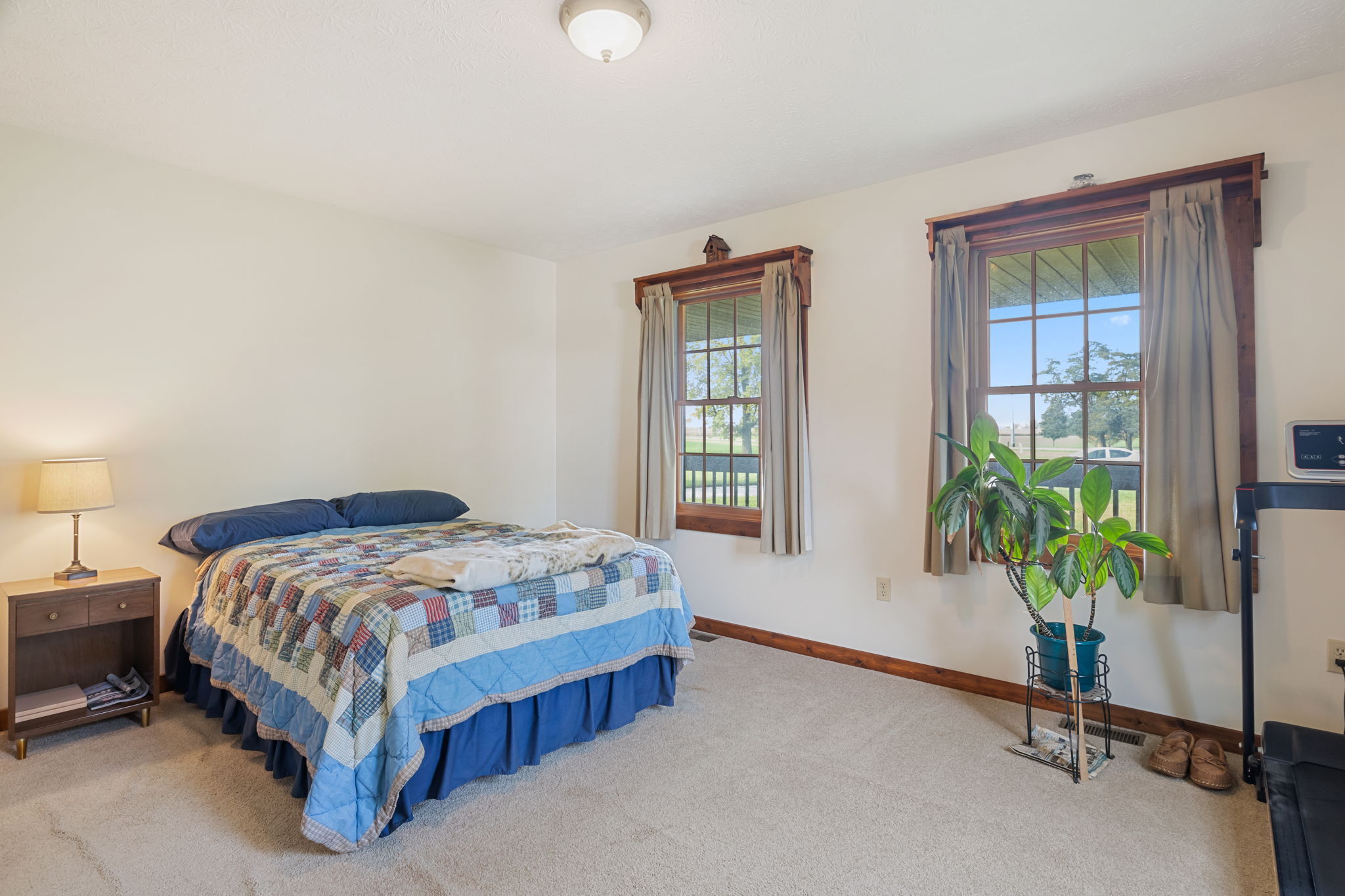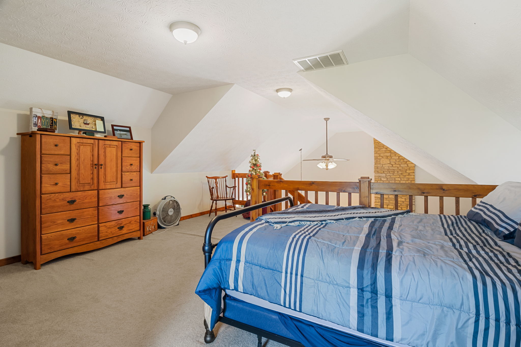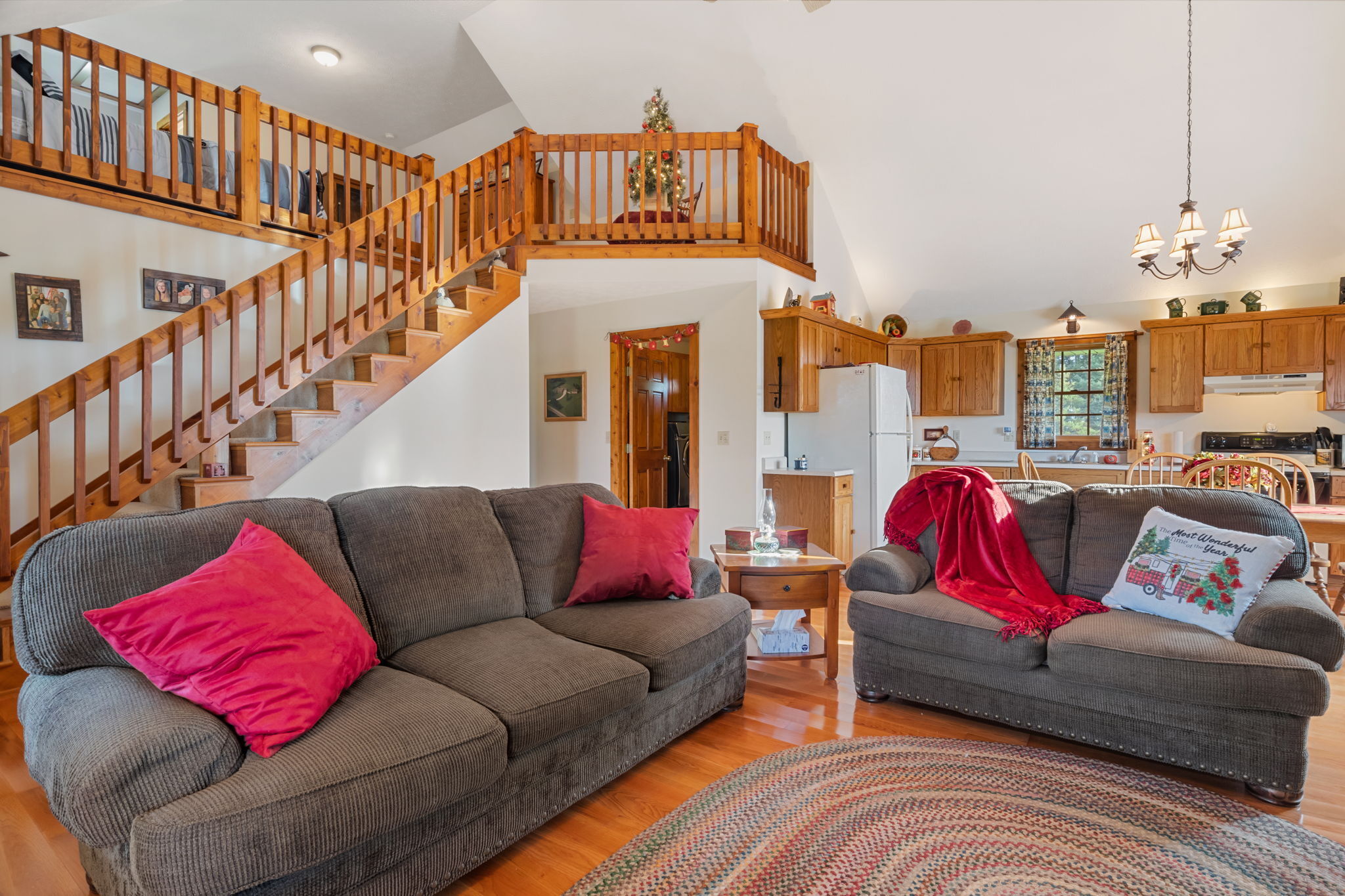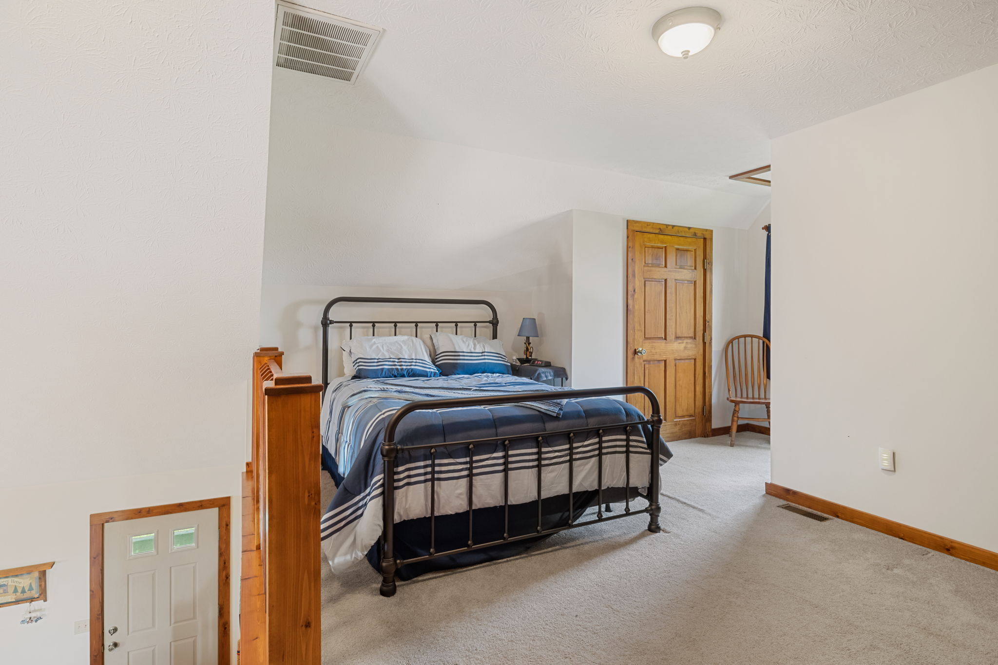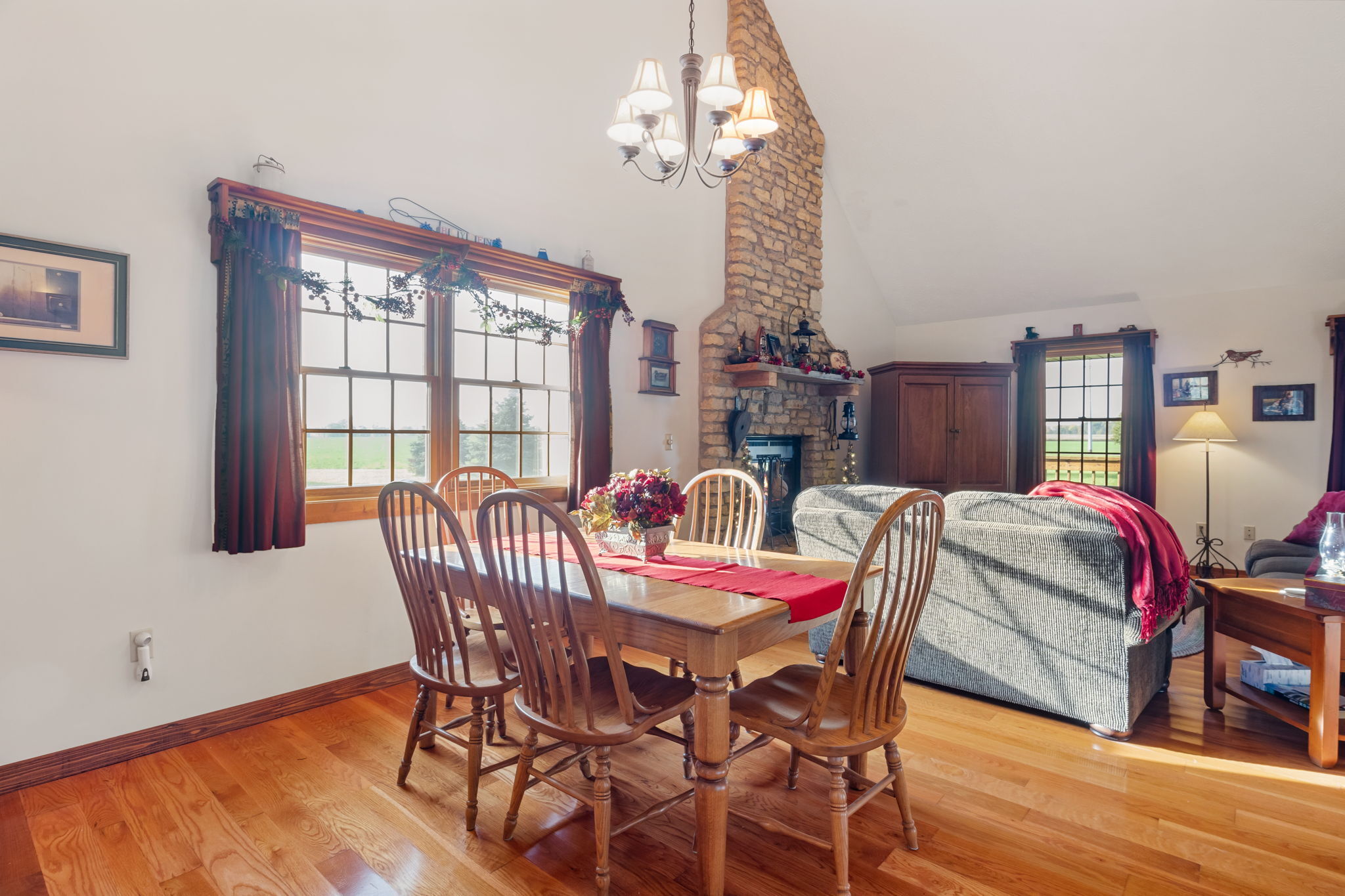 Beautiful Cabin Style Home with a floor to ceiling Stone Fireplace! Located in Southwestern Boone County across from Granville Wells Elementary and only 3 minutes north of I-74 Jamestown Exit northwest of Indy. Home has 6 inch walls providing excellent insulation. All new siding and roof in 2018! A wide stairway in the Great Room with beautiful hardwoods through the open kitchen leads to the loft which is the 2nd BR with its own private bath. The primary BR is on the main with a small walk-in. The bath is across the hall which serves as the downstairs bathroom. The 3rd smaller BR is currently an office. Utility room with owner owned water softener, water heater, furnace and washer and dryer are inside the back door. The home has a great covered front porch deck 8×40 and also the same sized deck at the rear of the home for great summer entertainment. The Detached 2 car 26×24 garage has electric and lots of room. The 40×30 Barn is a dream for the mechanic as well as tall vehicles with its big over 11′ wide x 13′ high commercial door. It features a furnace, air compressor, and 220 volt outlets and workshop area. The beautiful cared for yard with 2.23 acres makes this well cared property with amazing views a great country home and only minutes to nearby shopping in Brownsburg, Lebanon, or Crawfordsville. as well as 20 minutes from west Indy, via I-74 or I-65