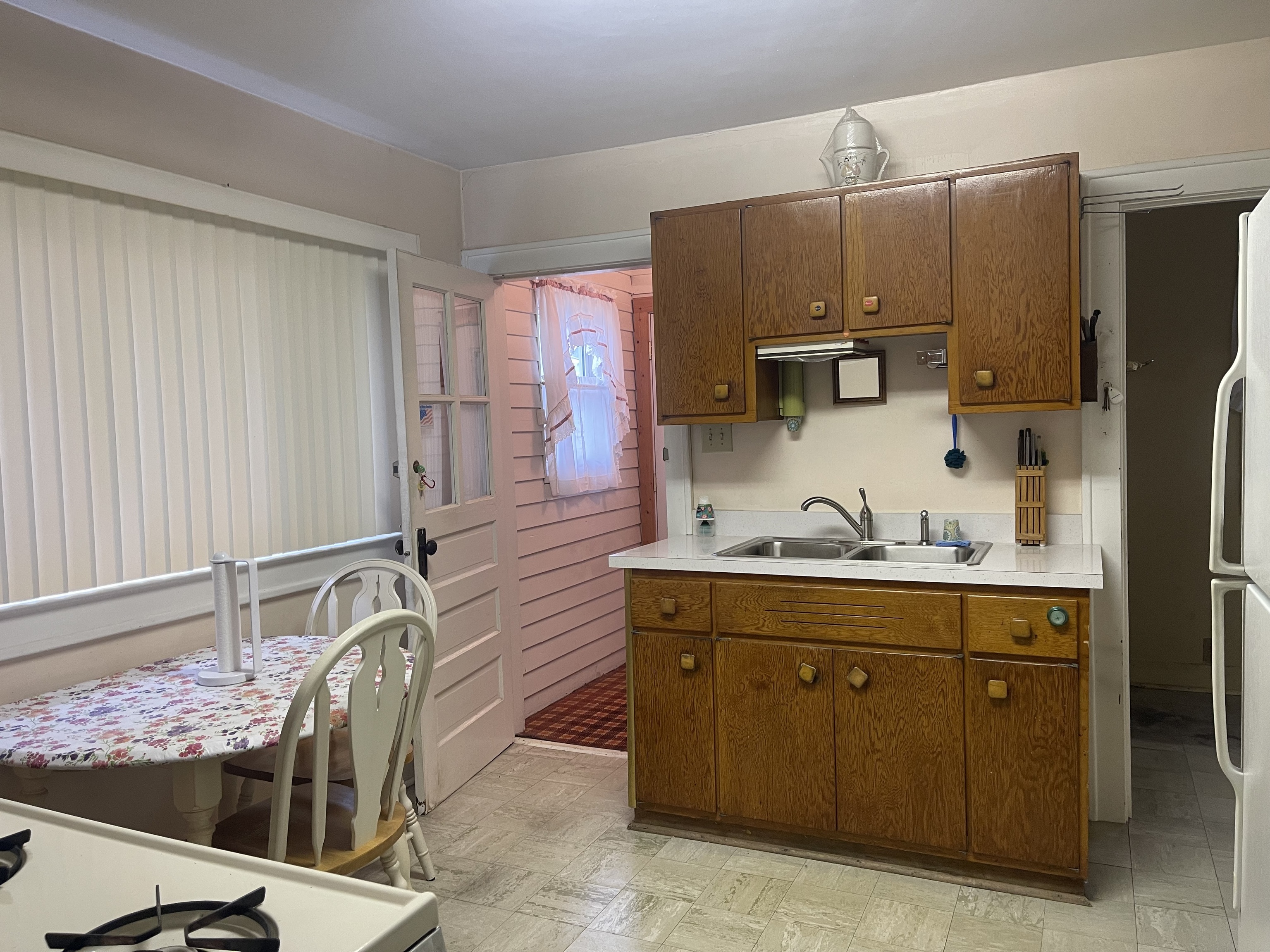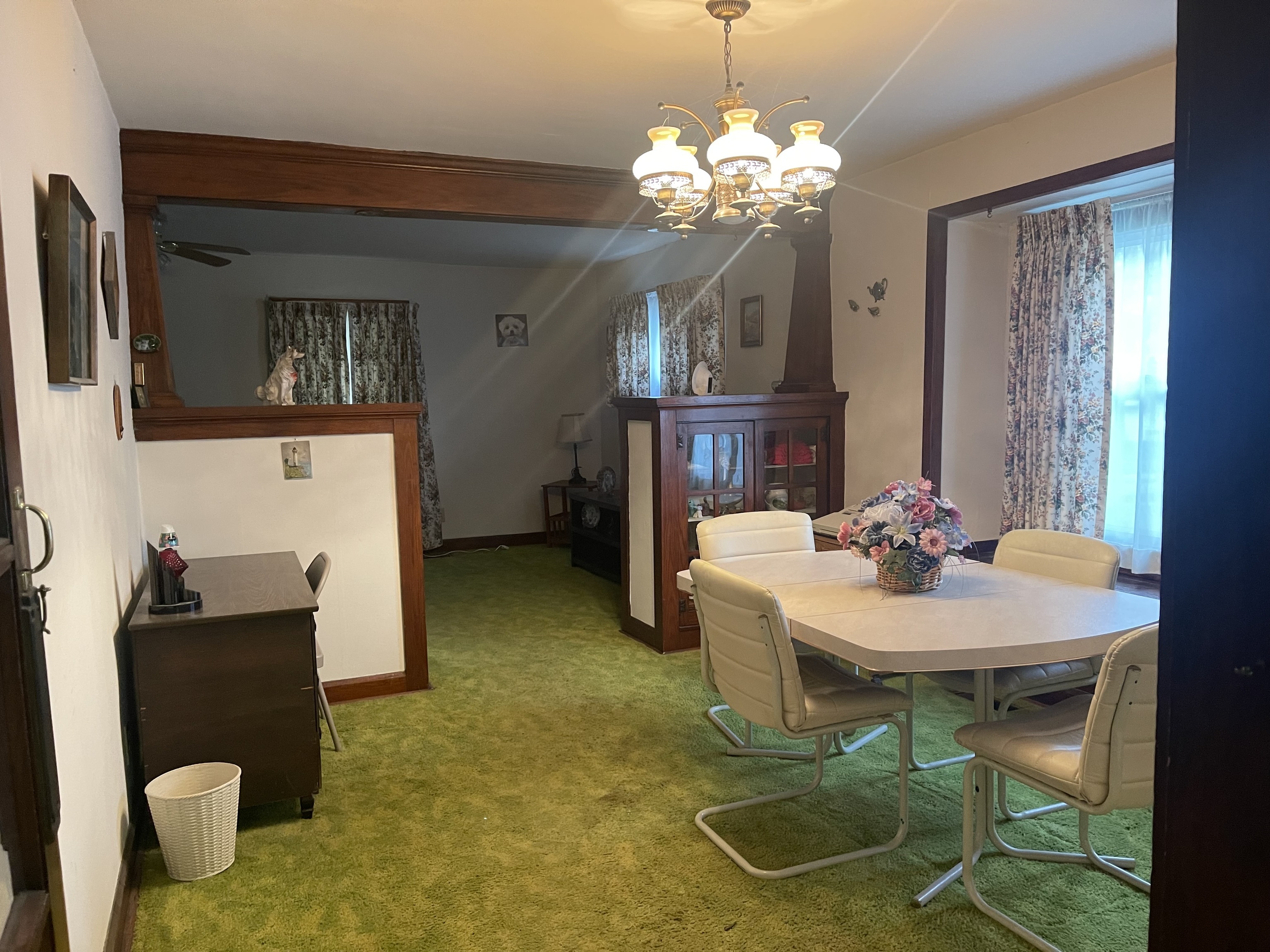 Large 2 bedroom home going to live AUCTION on Nov 2nd at noon. Be the highest winning bidder and this house can become your home. Eat in kitchen and formal dining area, living room with glass built in china cabinets, bench window seating, unfinished basement, enclosed breezeway, and attached garage. This home is located on a corner lot and has a concrete patio, and partially fenced yard.