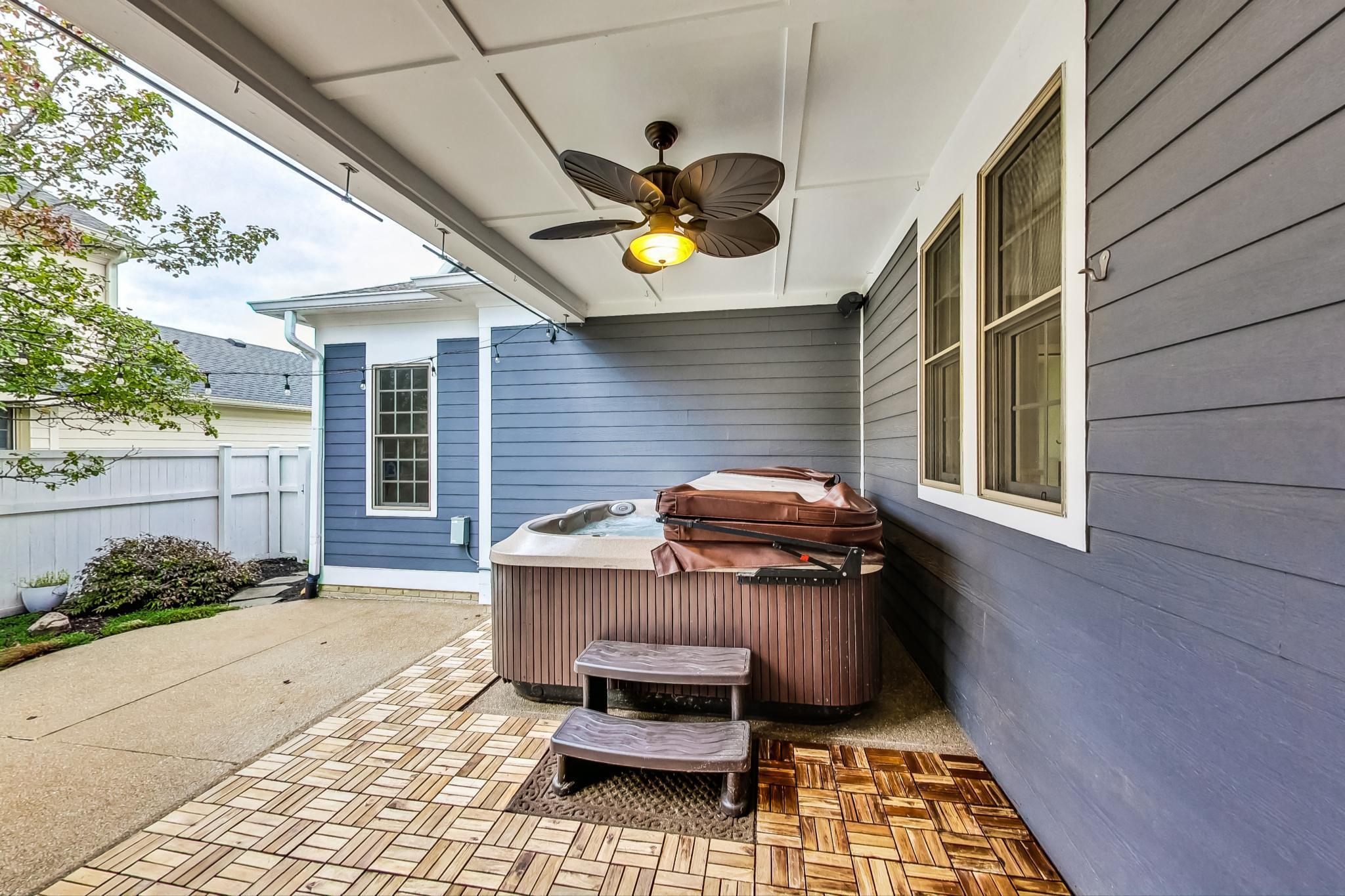 Welcome to a home that has the space & features to enjoy for many years ahead. 4 Bedrooms/ 3.5 Baths & spacious 3-car garage. Over 3,300 sq. ft. of living space including a Finished Lower level. Inside the front door is a spacious Great Room with Fireplace flanked by built-ins & main level has hardwood flooring. Kitchen has stainless appliances including Double-Ovens, Dishwasher, Gas Cooktop & Refrigerator. The upper floor has 3 bedrooms (including the primary bedroom) all with trayed ceilings & fans. Each also has large walk-in closets. There is also floored attic storage access. The lower level has the 4th bedroom and finished recreation space with wet bar. For extended living – there are two covered porches to enjoy. The covered front porch extends the width of the home to take in the wild flower/ butterfly garden and streetscape. The covered side porch just off of the kitchen/ dining area has wonderful hot tub that will be relished looking to the open patio and private, fenced in yard. Home is feet away from a pocket park and around the corner from one of three community pools/ tennis courts and exercise.