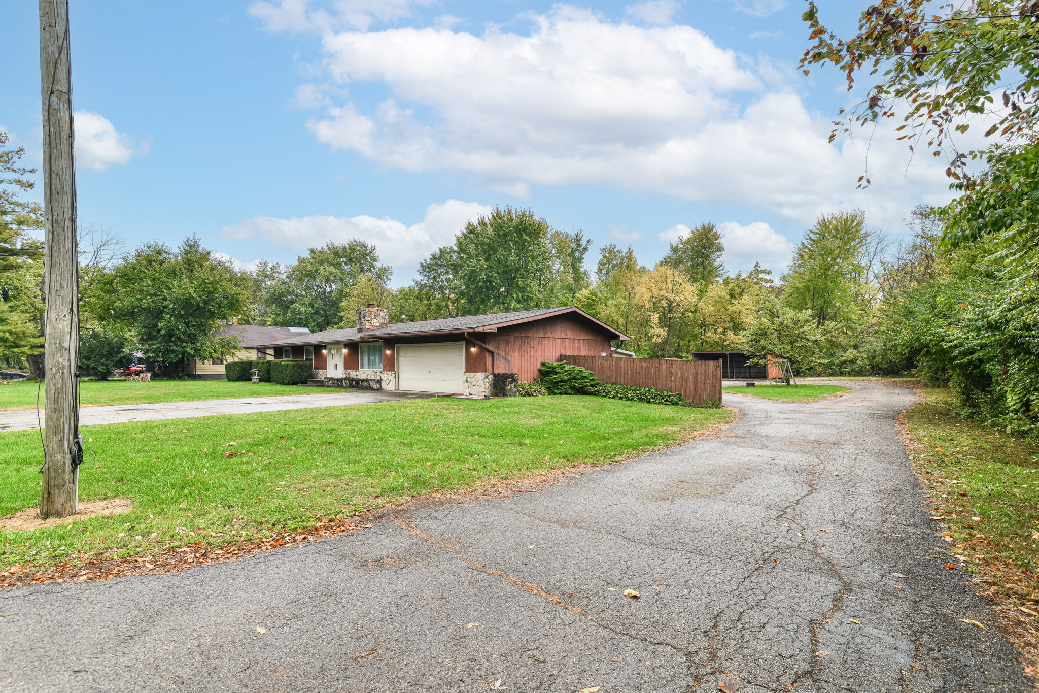 WAIT. WHAT?!? Impossible to find 1700 sq. ft. ranch with 3 bed, 2 bath, 2 car att garage PLUS 4+ car detached garage on 1.72 WOODED ACRES 15 min to downtown & 10 min to AIRPORT. Imagine the business/income/development possibilities! CLEAN & ready for your personal touches. Newer vinyl double hung windows. Stone fireplace w/ blower & picture window in your Huge family room. Kitchen includes appliances & pantry, breakfast bar, dining area with access to huge deck overlooking wooded lot. LARGE bonus room could become 4th bedroom, “man cave,” or home office. Large laundry room with additional storage. Primary suite w/full bathroom. Possibly add living space from attached garage. Wayne Township Schools, near shopping, dining and interstates, you’ll enjoy the convenience of this lovely home and peaceful lot. Don’t miss this opportunity to own such a rare property in a convenient location! *Do not visit property without scheduling appointment first.*