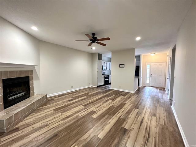 Welcome to this stunning 3-bedroom, 2-bathroom end unit condo, offering single-level living and an array of modern upgrades. The 1,344 square foot space is adorned with luxury vinyl flooring throughout, ensuring easy maintenance and a clean, contemporary look. Convenient parking right at the front door means there are no steps to navigate, providing accessibility for all. Step inside to discover a well-appointed interior featuring a new HVAC and a new water heater for ultimate comfort and efficiency. The kitchen boasts updated appliances, quartz countertops, and a double oven, while the refrigerator-freezer is a premium model. Custom showers, six-panel doors, and new hardware on cabinetry and doors add a touch of elegance to every corner of this home. Cozy up by the wood-burning fireplace or step out onto the 24 x 8 ft screened deck with a metal roof, offering serene views of the surrounding woods and golf course. For outdoor enthusiasts, a walking trail leads to a picturesque lake, making it easy to explore the natural beauty of the area. This condo also features a Pella storm door for added security and insulation. With its spacious layout, high-end finishes, and serene surroundings, this condo is a must-see for those seeking a comfortable, stylish, and peaceful home.