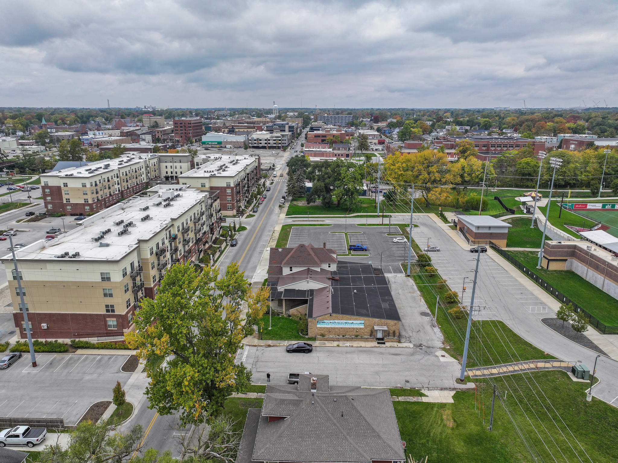 Prime Opportunity-Commercial or Residential! Located downtown, next to Kokomo Municipal Stadium; which is home to the Jackrabbits! Directly situated across from a newly built apartment community off of E. Vaile St with plenty of drive by and walk-in traffic. This property would make a great family sports bar, community center, event center, or restaurant-the possibilities are endless. Be ready to dive in and flip this into a profitable business venture. There is also a 2 bedroom apartment located upstairs with an exterior entrance on the north side–possible on-site management opportunity, office space or extra income. Newly paved city parking lot and ample street parking.