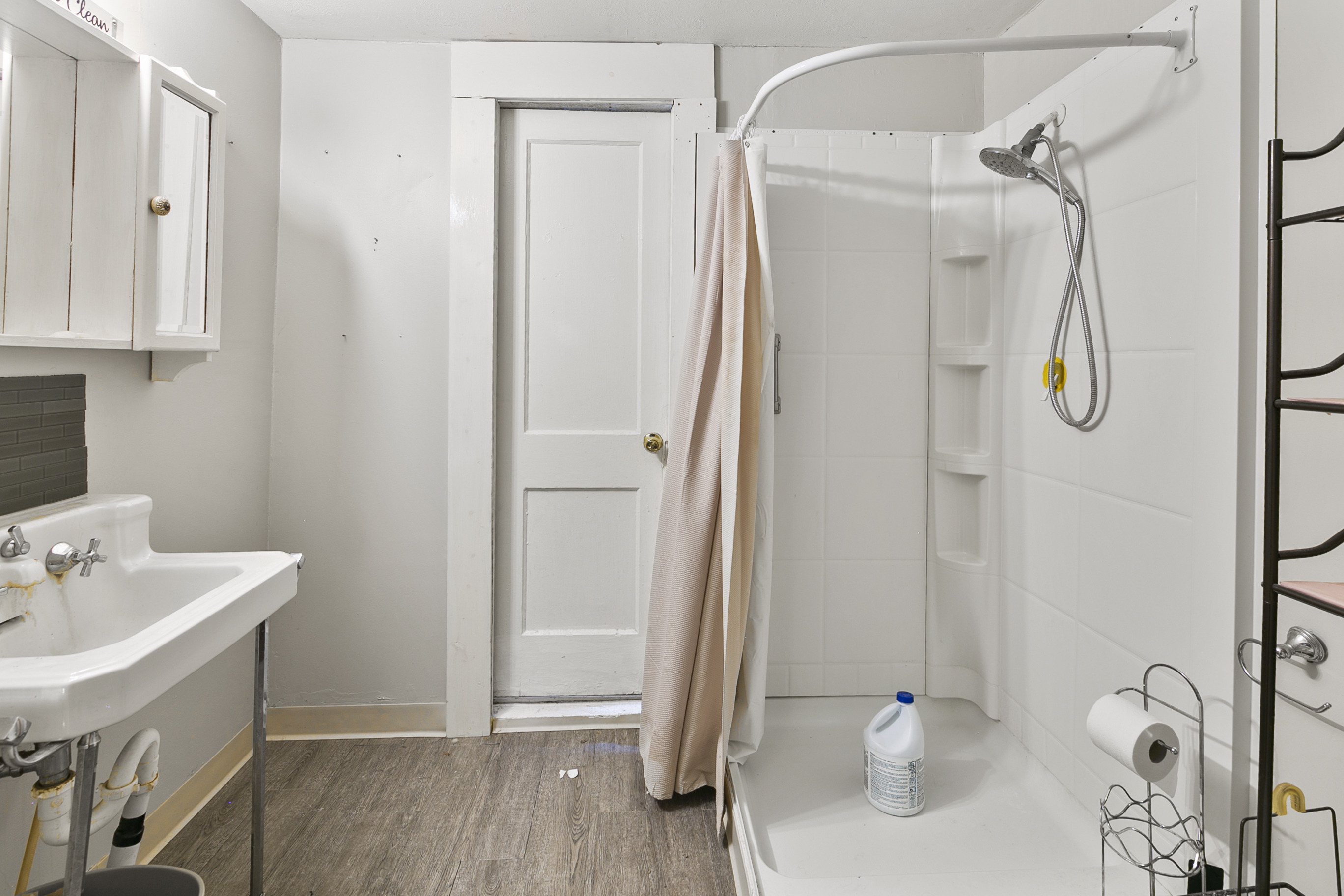 Solidly constructed with wood floors, wide baseboards, pocket door, leaded windows, built-in shelving, fireplace and more! The HVAC, water heater and dish washer are newer. The foyer holds a half bath to be finished by this home’s new owner, as well as a tall coat closet. The substantial living room flows into the vaulted and airy oversized formal dining room. The kitchen and primary bath are also roomy and the other sleeping rooms are adjoining, so could be a single expansive room. The private rear outdoor living space has a brick-paved mud room, patio and walk path share space with a newer shed and garage foundation pad with electricity. With so much space and potential, this home won’t be available long!