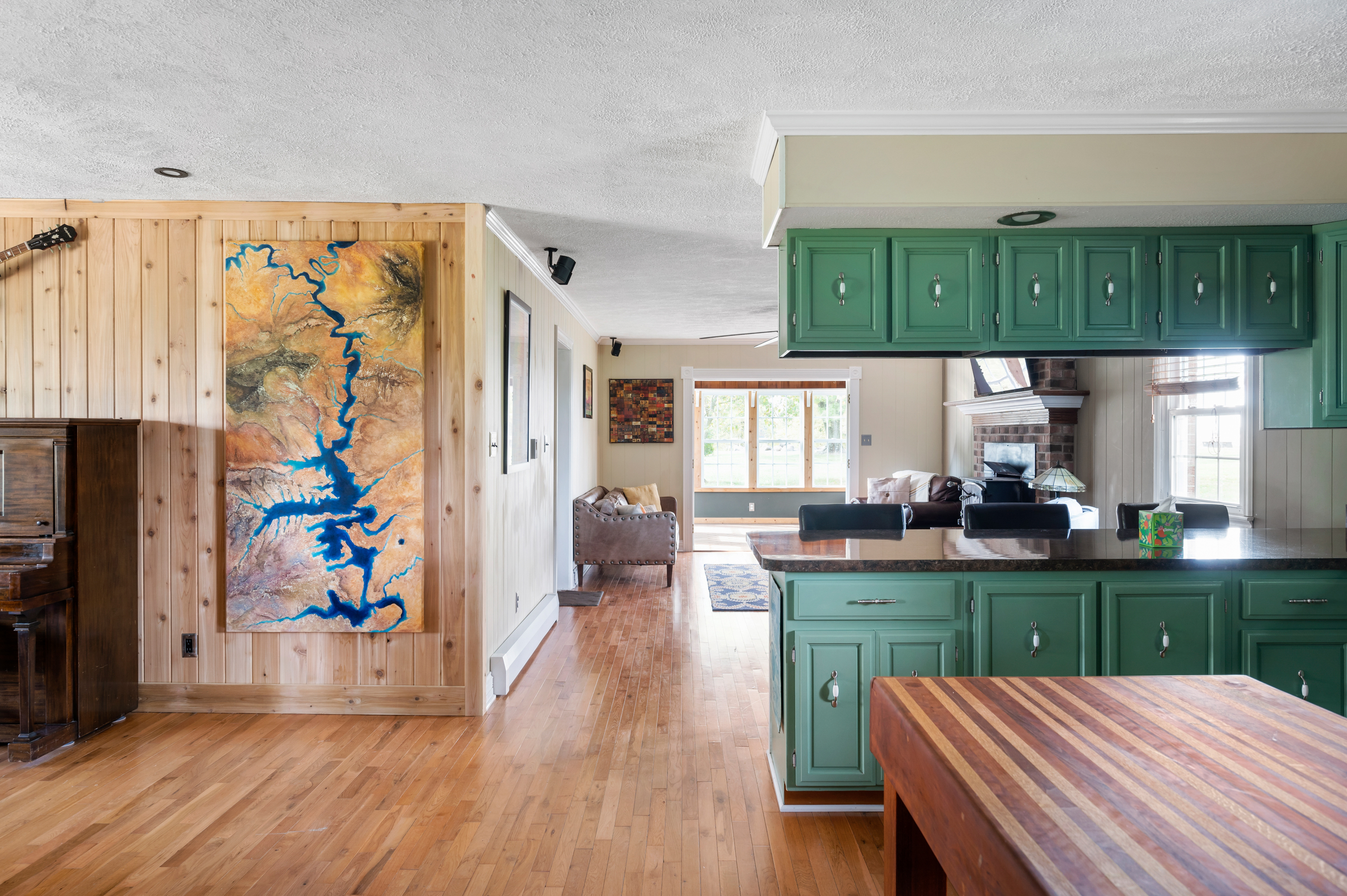 STUNNING COUNTRY SETTING… NEARLY 13 ACRES LOCATED IN NORTHWEST RUSH COUNTY!! THIS PROPERTY OFFERS FULL BRICK RANCH HOME, OFFERING UPDATED AND OPEN BRIGHT SPACES, HUGE KITCHEN, ALL APPLIANCES TO REMAIN, BEAUTIFUL VIEW FROM DBL SINK WINDOW, FRONT DINING ROOM AT MAIN ENTRY, MASONRY FIREPLACE IN COMFORTABLE LIVING ROOM THAT OPENS TO SUNROOM WITH GREAT VIEWS OUT EVERY WINDOW, SPACIOUS 3 NICE SIZE BEDROOMS WITH LARGE CLOSETS, LAUNDRY AND FULL BATH JUST INSIDE OFF 2 CAR GARAGE WITH SERVICE DOOR AND CLOSET. OUTSIDE FIND WIDE OPEN SPACES THAT OFFERS CREEK, POND, CURRENT SOUND STUDIO WITH MANY OTHER POTENTIAL USES, OUTDOOR BAR AND ENTERTAINING AREA WITH STONE SURROUNDED FIRE PIT, 30X60 POLEBARN WITH CEMENT FLOORS WITH ATTACHED 20X30 OPEN, GRAVELED POLE BARN. THIS AMAZING PROPERTY IS A ONCE IN A LIFETIME FIND!!