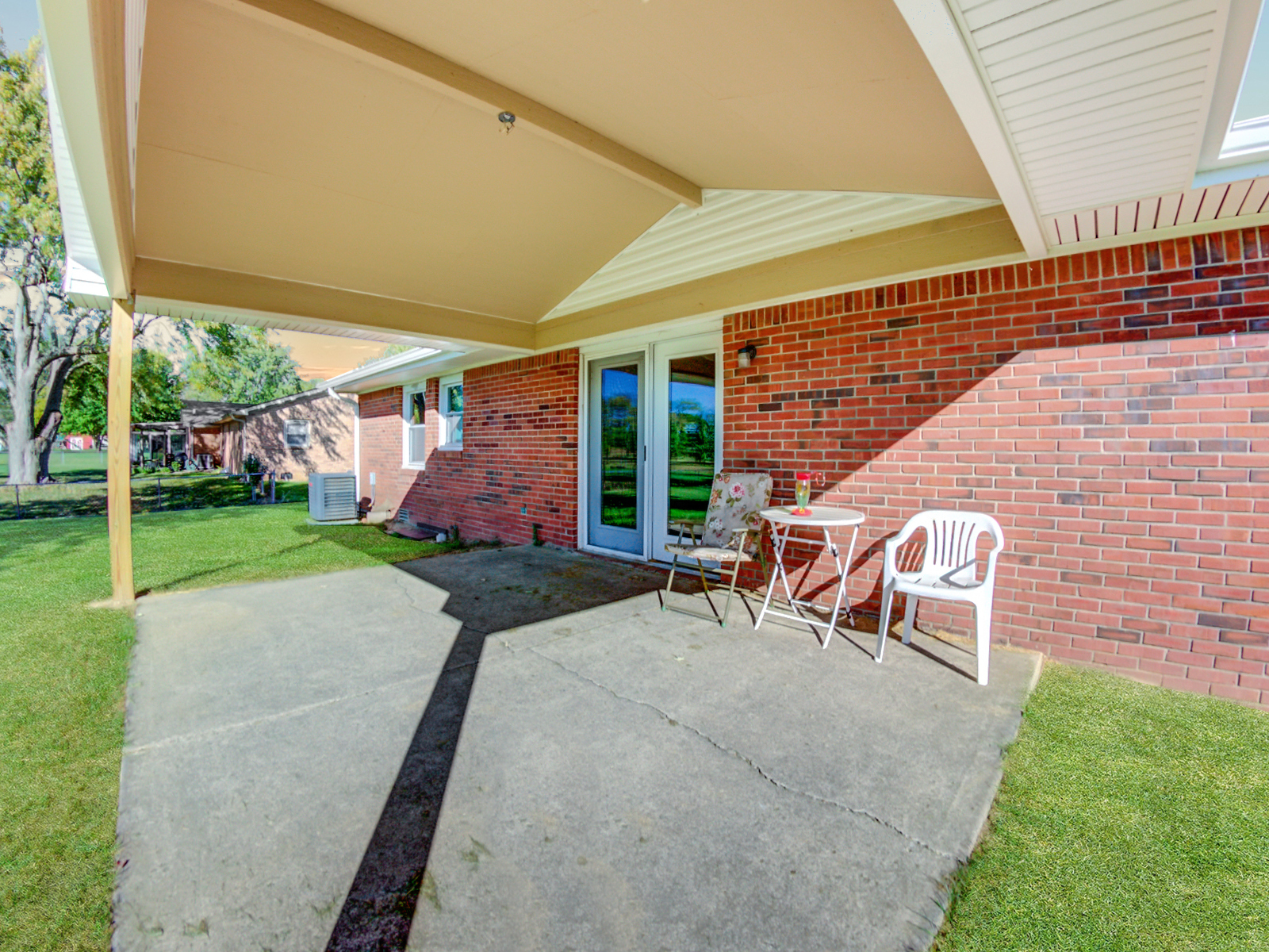 Enjoy the peace and quiet at your new home. Nestled in the country, but on the edge of town; this 3 bed 2 bath brick ranch just needs your finishing touches. New back covered patio in 2023 and updated furnace. As you walk into your new home, you will see a wood burning fireplace in the family room and off to the side is a second living space. The family room opens into the kitchen and out to the covered porch. Down the hall you will find 3 beds and a hall bath. The master bed has walk in closet and it’s own bath. There is also a laundry room just off the garage into the kitchen. Outside you have a large yard that is partially fenced and no neighbors behind you. All appliances are included. This home has good bones, but could use your special touch.
