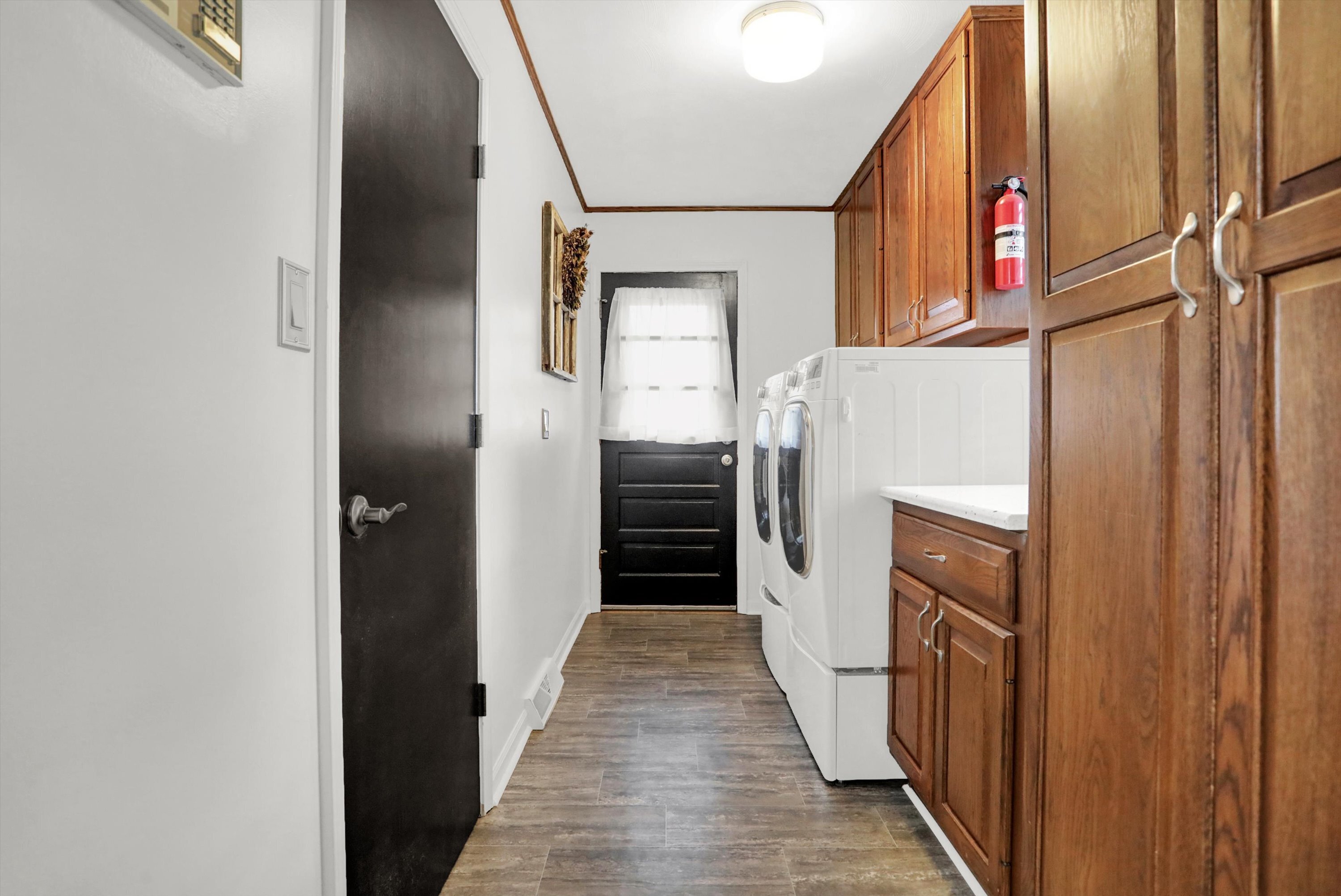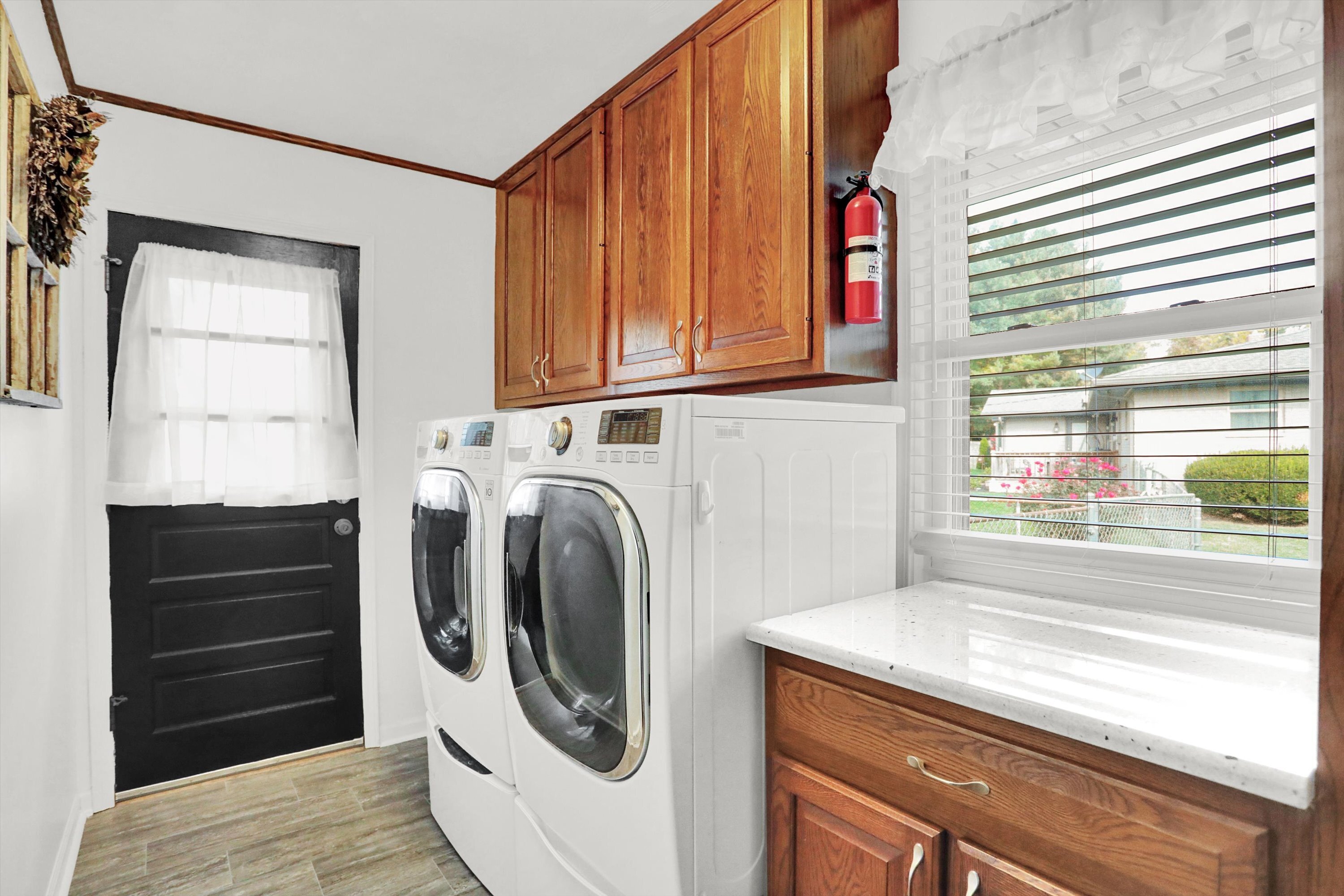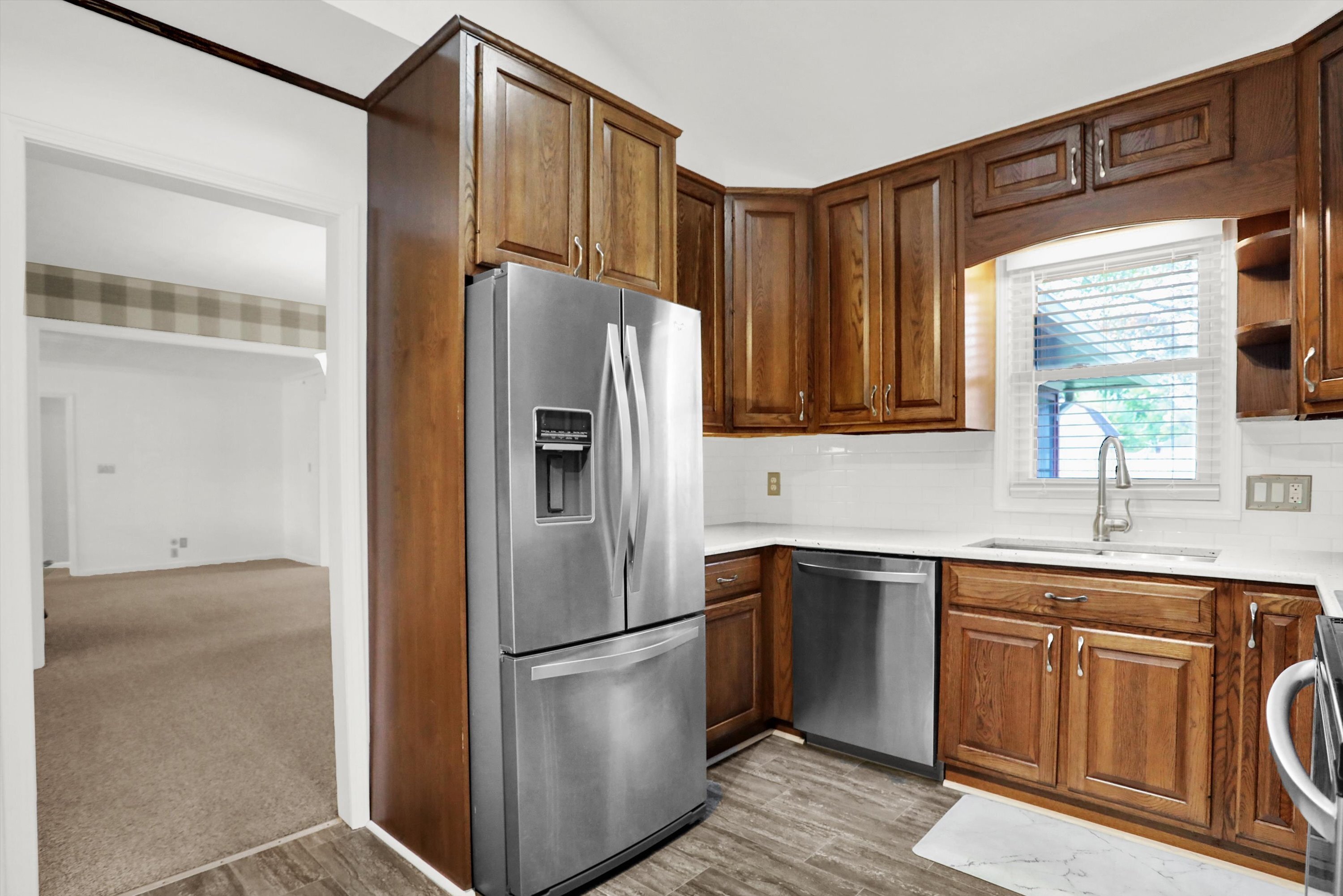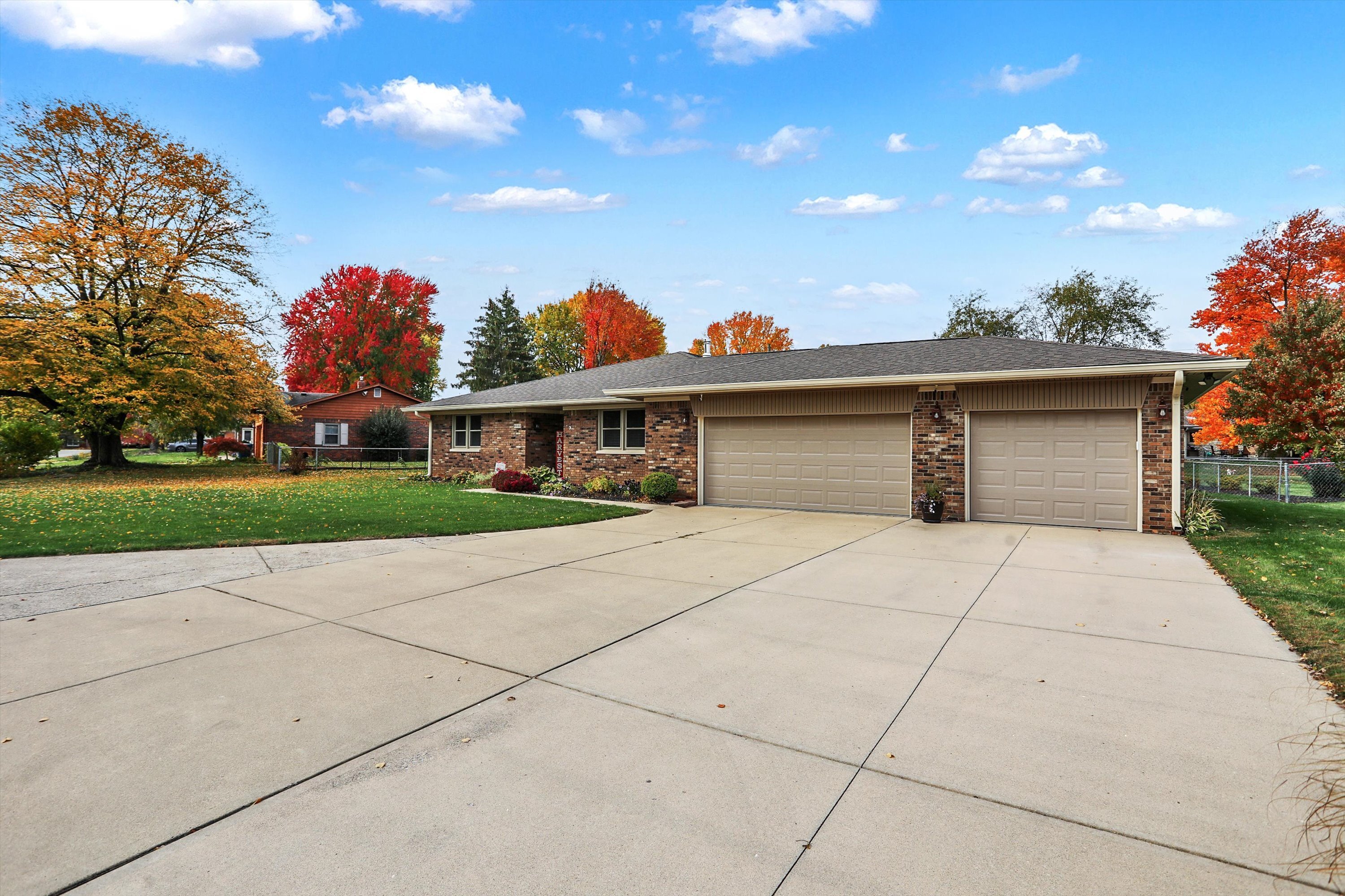 THIS IS A MUST SEE! Almost 2000 SF Brick Ranch with 3 Car Garage in Perry Township! Too many updates to list! Living Room with Built-in Shelving, Desk, and Bookcases perfect for an in-home office. Family Room with Wood-Burning Stove. Formal Dining Room. Updated Kitchen with Stainless Steel Appliances, Granite Countertops, Tile Back Splash, and Moveable Kitchen Island. Laundry Room with Granite Countertops, Utility Sink, and Washer/Dryer with Pedestals. Primary Bedroom with Accent Wall and Double Closets with Organizers. Both Bathrooms Remodeled with NEW Vanities, Fixtures, Lighting, Toilets, Tile Bath/Shower, and Tile Floors. Hard to find 3-Car Garage with Extended Driveway. Save on utility bills with the whole-house fan and the additional 6-8″ of insulation added in the attic! Screened-in Back Porch walks-out to Deck overlooking Large Backyard, Mini-Barn with Loft, Firepit, and all the accessories for Gardening. The Sellers have updated all the big ticket items including: Granite Countertops in Kitchen and Laundry Room 2023, Kitchen and Laundry Floors 2023, Garage Doors and Openers 2023, Deck Stained 2023, Water Softener 2022, Water Heater 2022, Windows 2019, Roof/Soffits/Gutters 2015, and HVAC 2014.