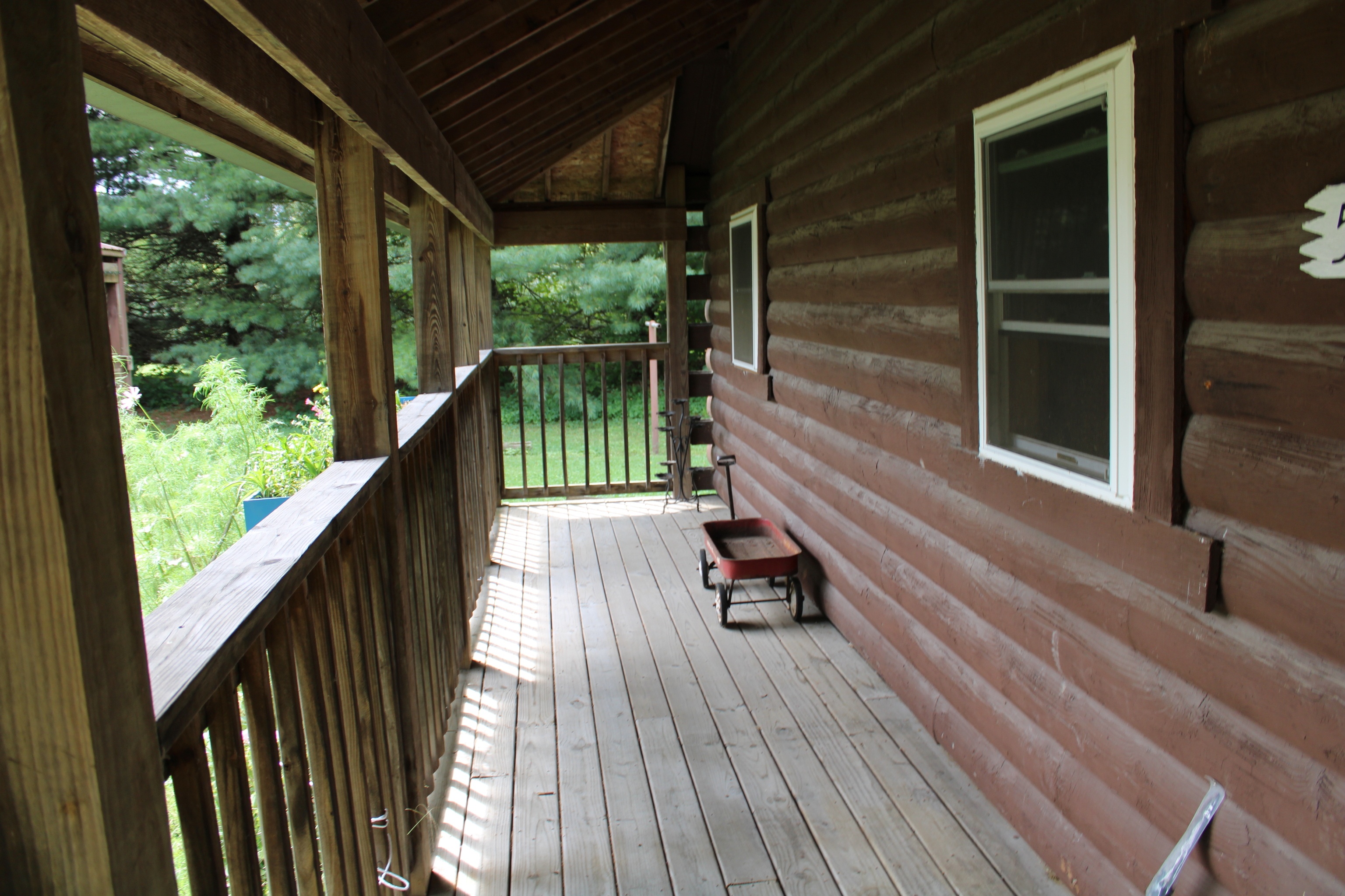 Log Cabin home with 1640 sq. ft. of living area with 4 bedrooms, 1 bath and a walk out basement all on 2.28 acres. Home has a 3-sided wood deck that wraps around the front, side and back of the home. This property also includes a 6+ car detached garage (1824 sq. ft.) with heat & electric, & shop area. Also included is a 288 sq. ft. barn with 2 lean-tos measuring 240 sq. ft. each.