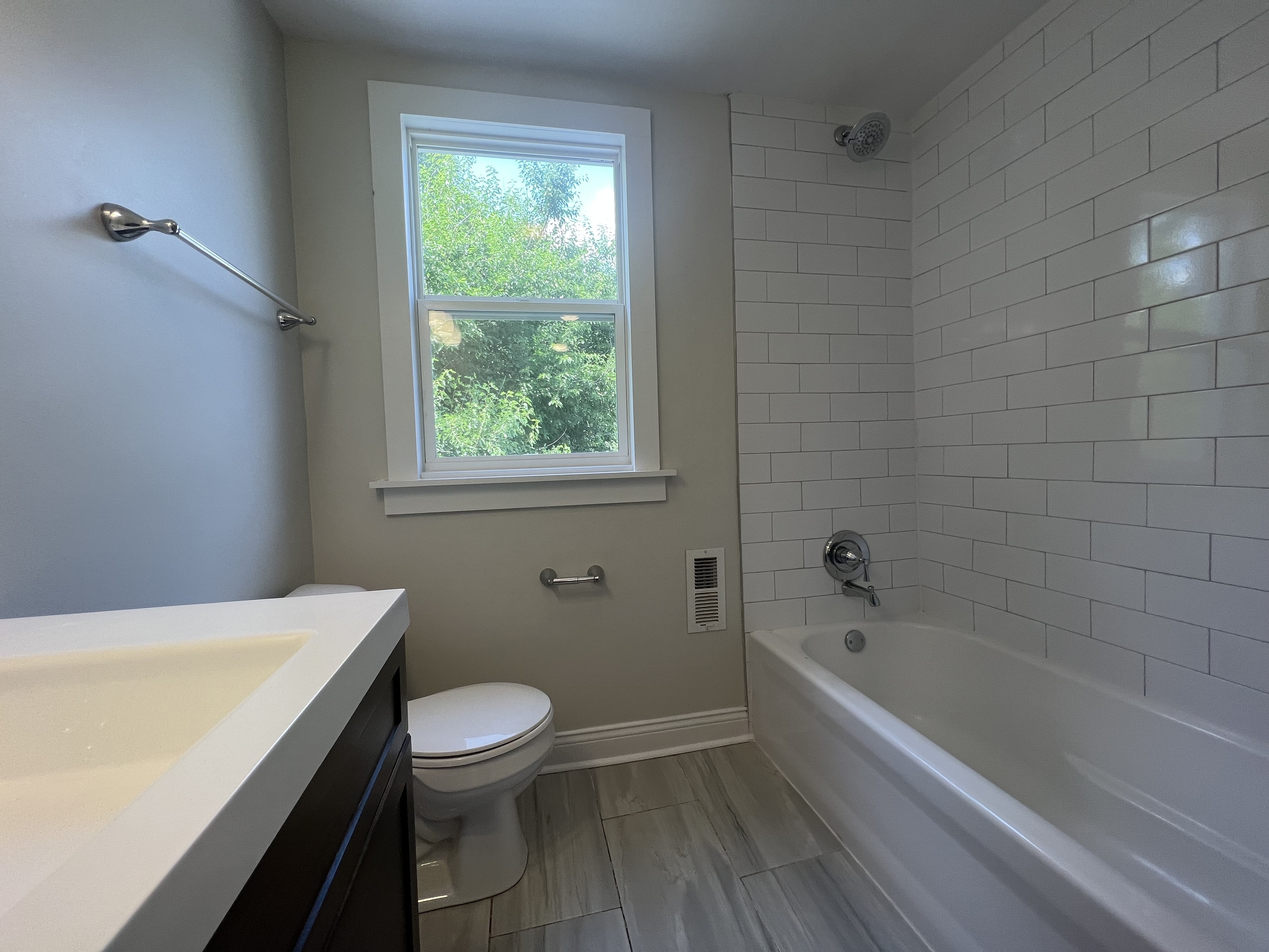 Check out the quality finishes this Butler-Tark house has to offer! LVP flooring, granite kitchen countertops, subway tile shower surround, and more! There is an all seasons room on the front of the house perfect for relaxing after a long day. The living room is bright and sunny and flows nicely back to the dining room. The kitchen has white cabinetry and the refrigerator, stove, and microwave will be provided upon move in. Off the kitchen is a utility room with full sized washer and dyer connections. And around the corner from that is a half bathroom. One bedroom is located on the ground level with a sliding barn door. Upstairs, you will find 2 large bedrooms, and an additional 2 full bathrooms. The backyard is partially fenced, and there is alley access with a parking pad. This house is large, bright and beautiful. Pets are welcome but breed and age restrictions apply.
