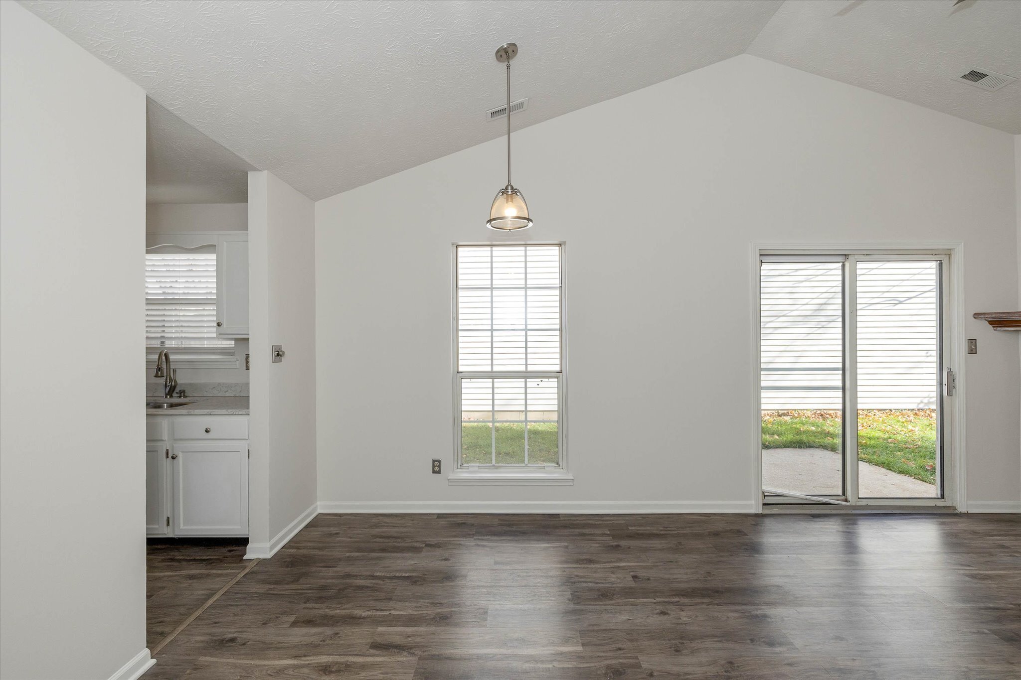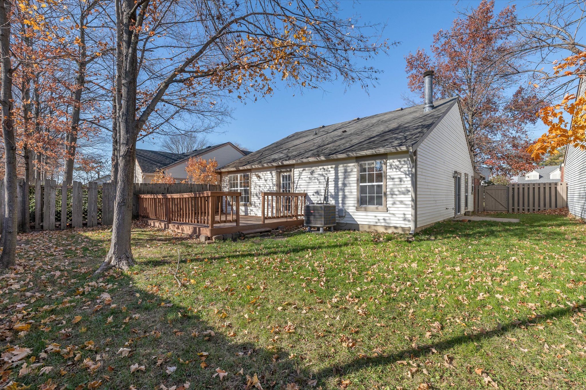 Welcome to the quiet and private Charter Pointe neighborhood. Close to everything, shopping, restaurants, interstate. Enter into the vaulted great room with fireplace. Kitchen has stainless appliances, newer countertops and tons of light coming in from the bay window. 2 full bathrooms with new vanities and countertops. Washer and dryer in laundry stay with the home. Primary suite with double vanity and large shower. Bedroom two has glass door to fully fenced backyard and deck.Furnace 2016, AC 2023, Water heater 2018. Seller has never used fireplace, Fireplace as is.