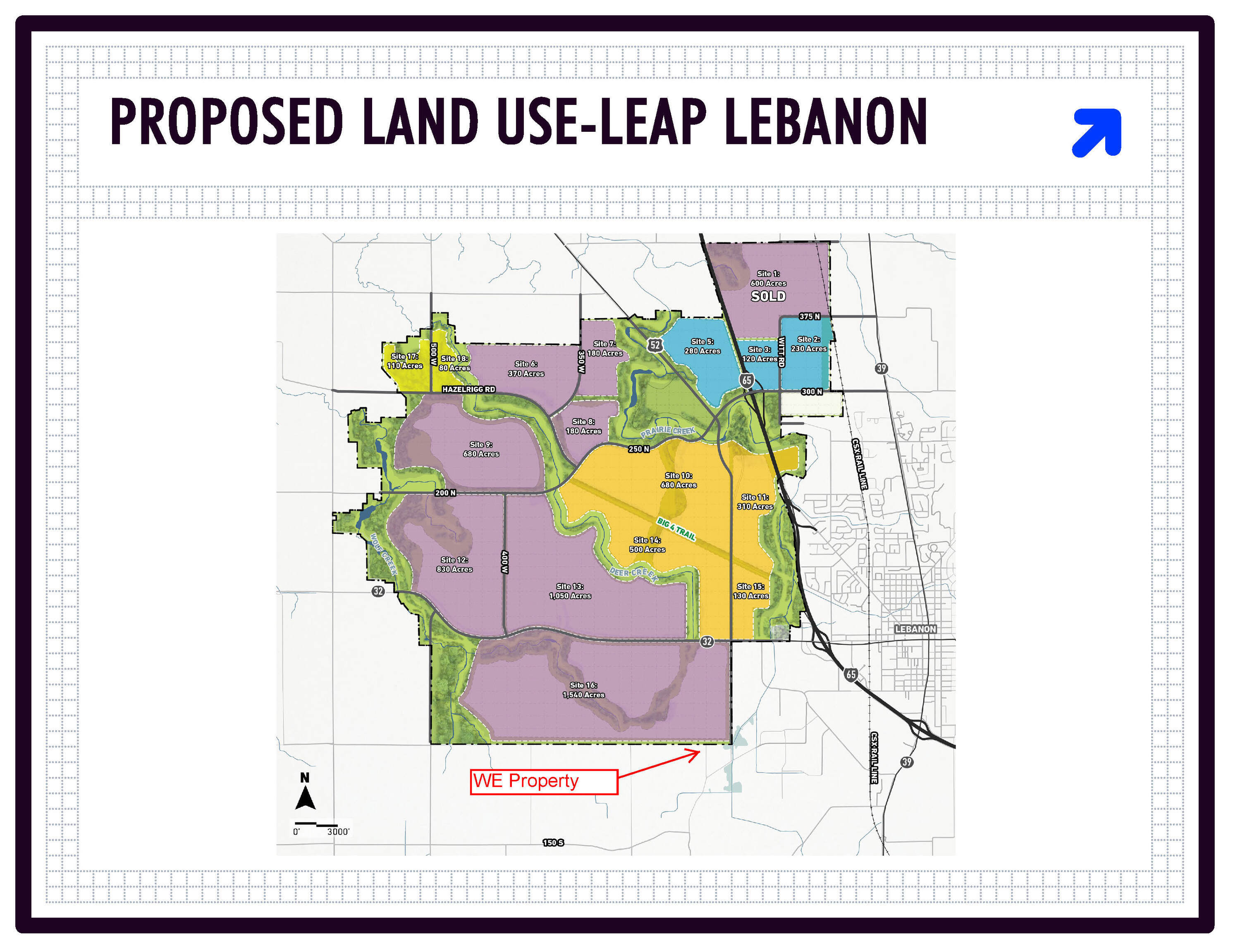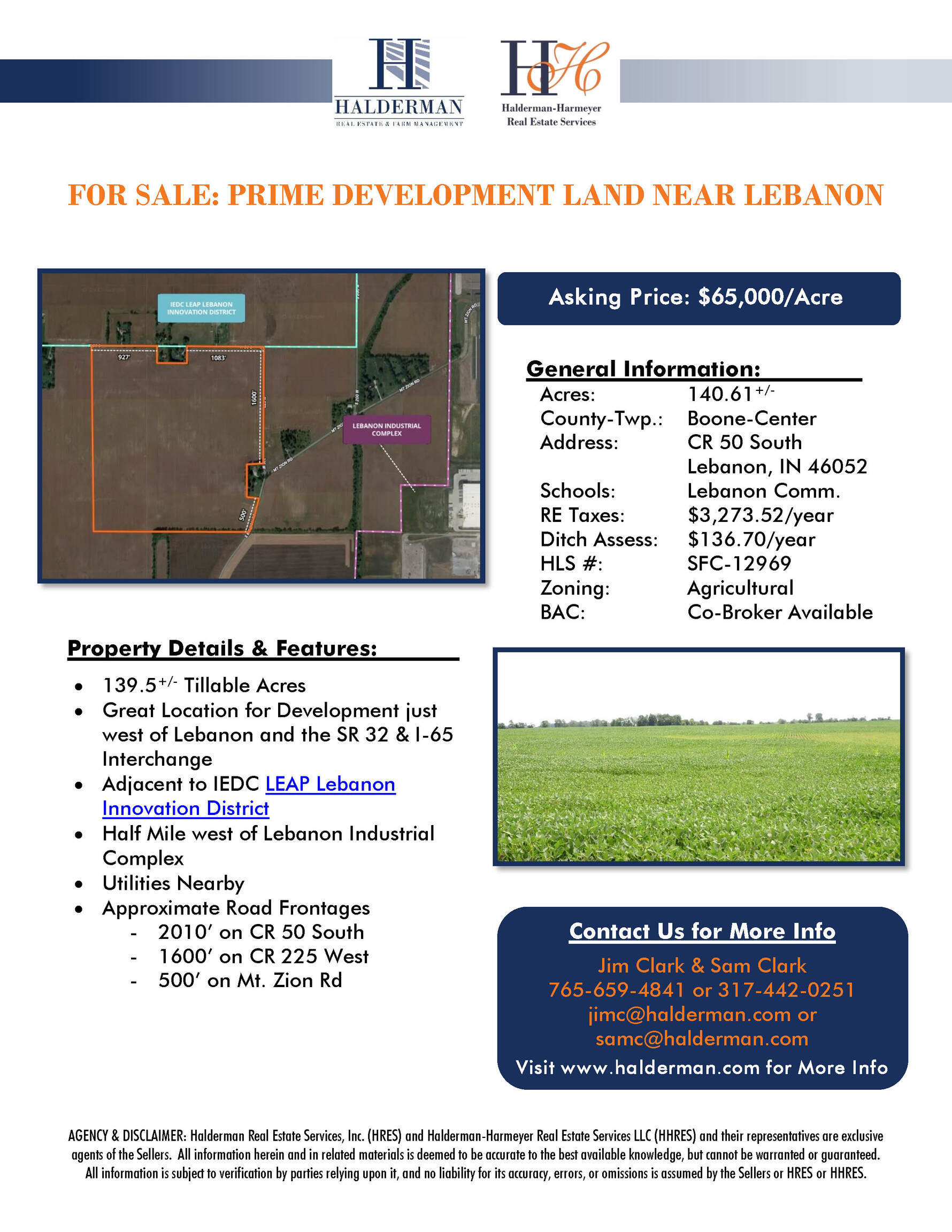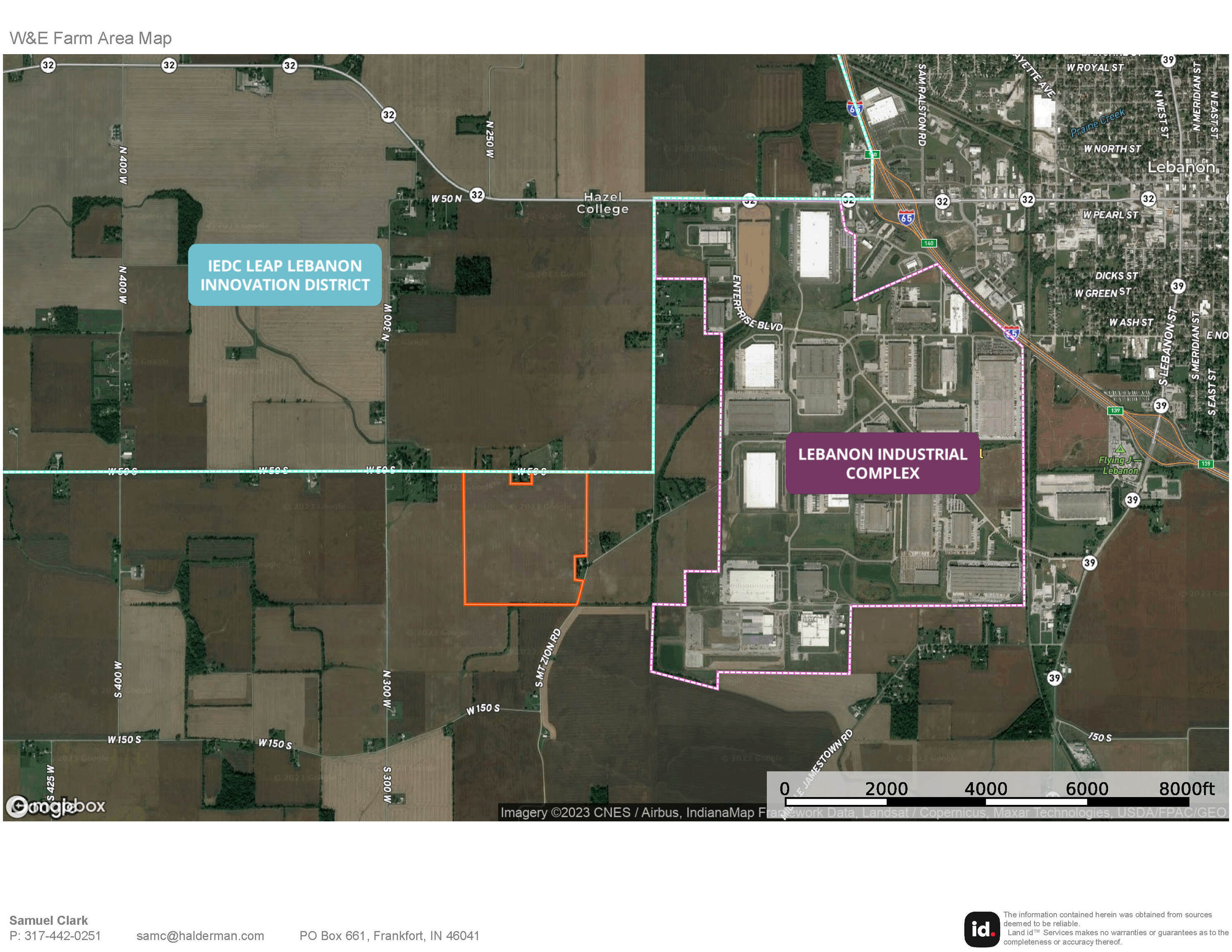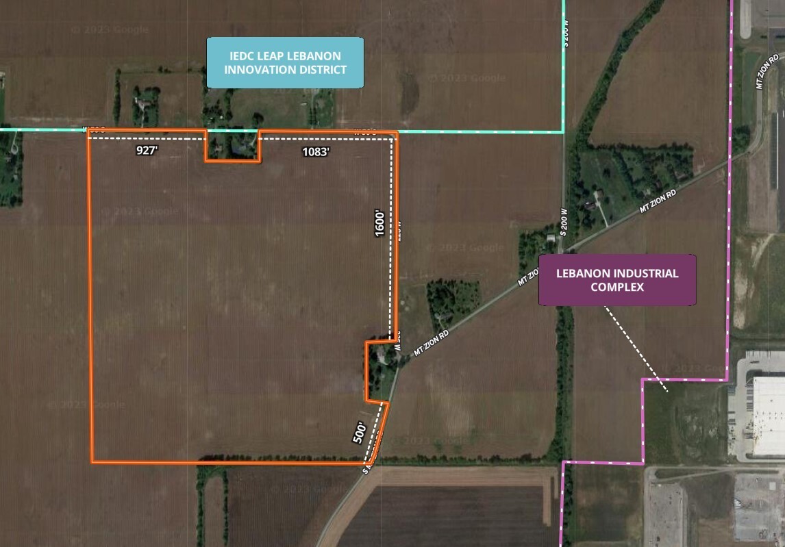 Prime Development Land Near Lebanon. Great Location for Development just west of Lebanon and the SR 32 & I-65 Interchange. Adjacent to newly established IEDC LEAP Lebanon Innovation District. Only 0.5 miles west of Lebanon Industrial Complex. Over 4100 feet of combined road frontage on CR 50 South, CR 225 West, and Mt. Zion Rd.