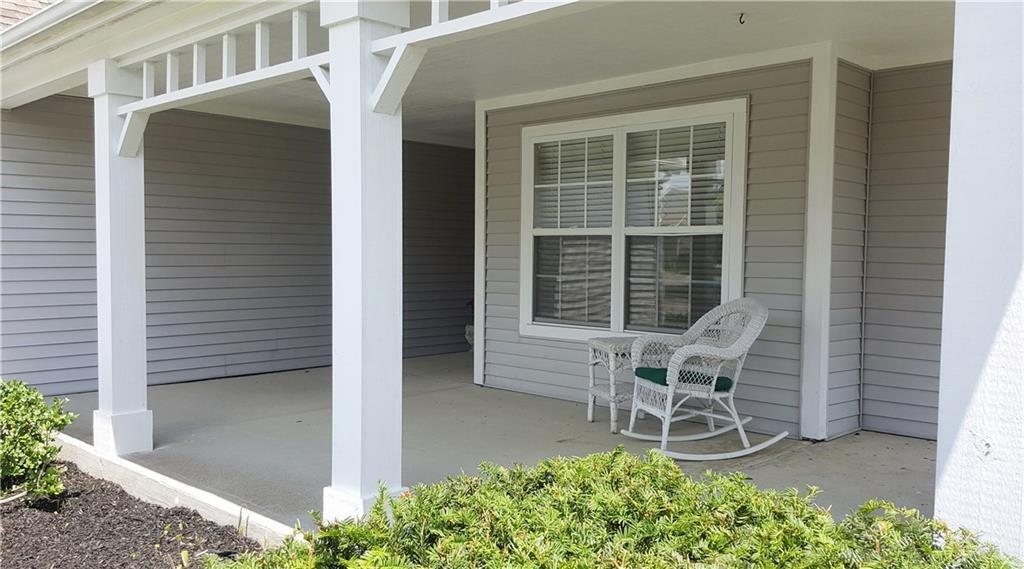 Ranch home in west Carmel min from I465, walk to shopping, restaurants & Carmel-Clay schools. Large sitting covered porch welcomes, foyer opens to soaring living rm ceiling, fireplace & screen porch extend living space. Eat-in kit offers stove/range, microwave, refrigerator, dishwasher. Spacious master suite w/walk-in closet. Attached 2 car garage w/attic storage. Community pool, BB court, tennis. Owner pays HOA fees & property taxes.