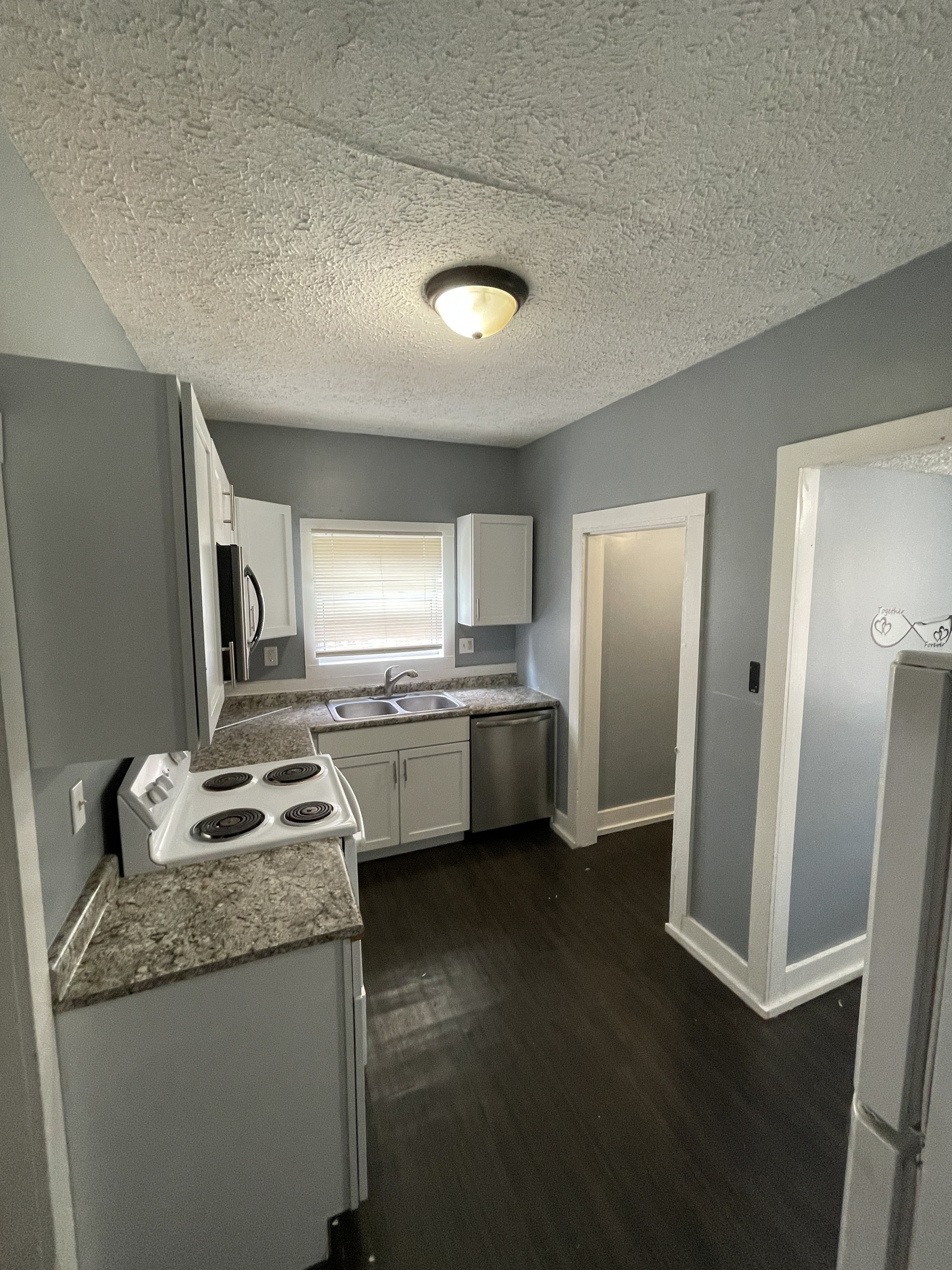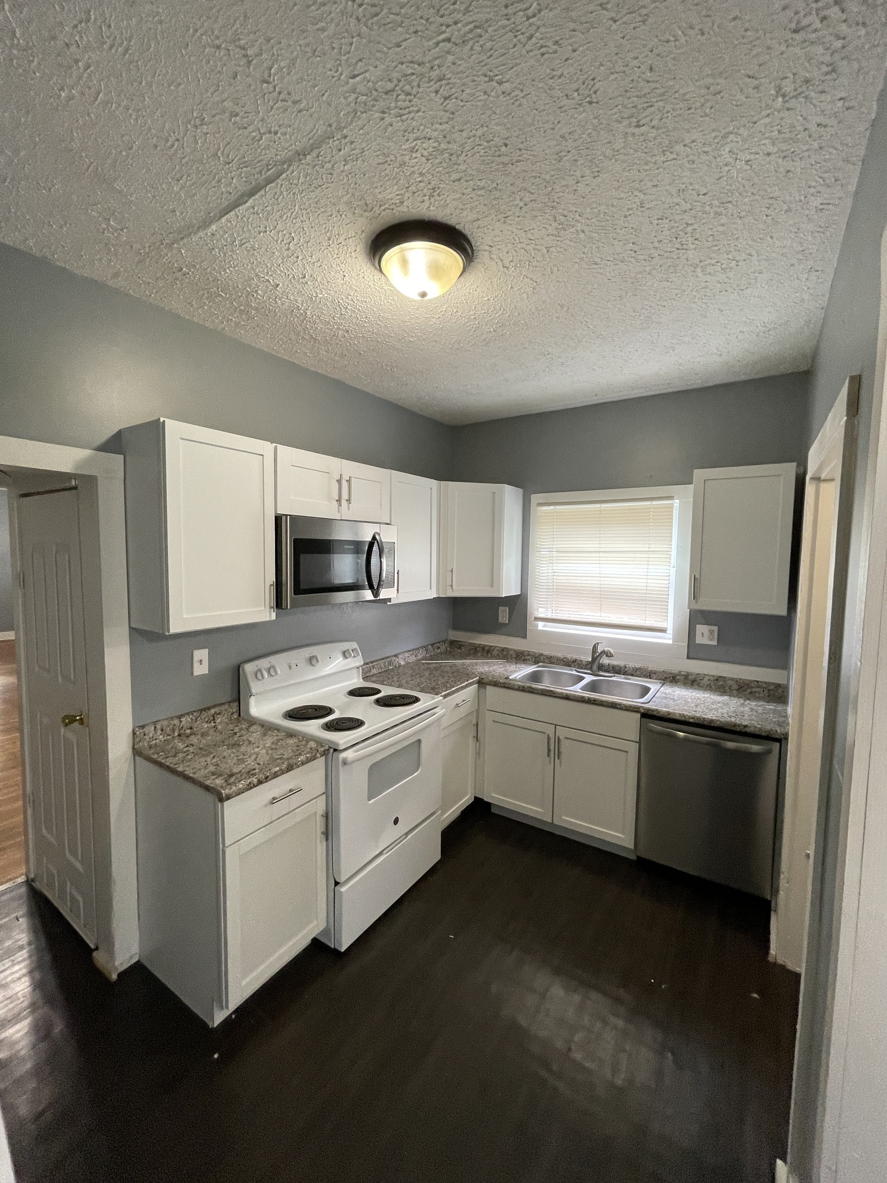 Stunning move in Ready 2 bedroom 1 bth duplex home offering a covered front porch and separate entrance. Clean inviting living area, with unique wall build ins, separated yet has an open view of the formal dining area/ ceiling fan, large bay windows w/ shelving and lower storage a perfect place for plants. Upper-level spacious bedrooms, easy maintenance hard surfaced floors, full updated bath w/tiled surround, clean modern amenities, seal this look with a nice cozy kitchen bright like-new cabinetry Appliances will be placed at Move In if not present. Come check out this fully loaded comfortable home just in time for the Holidays.