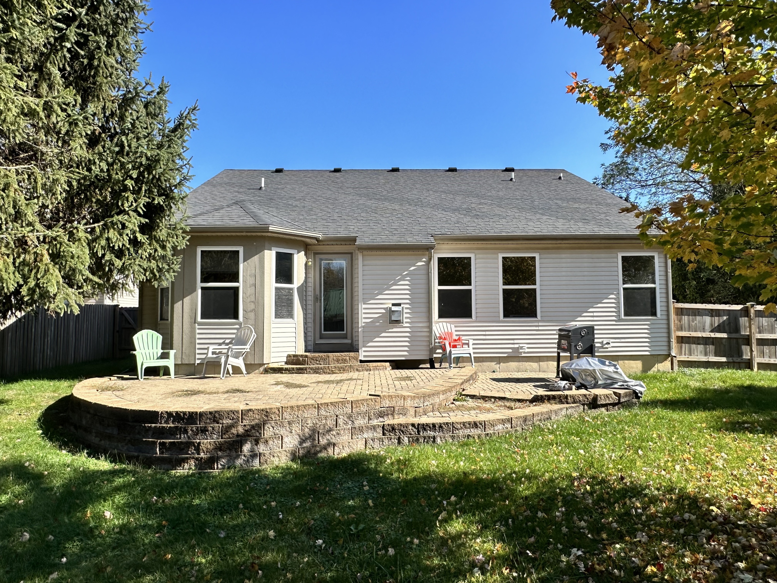 Exciting News! Just listed: Highly desired ranch-style house with a full finished basement is up for grabs! There is over 3200 sq ft of finished area that will fit all your needs. This home boasts an open-concept layout with a great room that opens to the kitchen breakfast room and dining room. The kitchen is adorned with stunning granite countertops, adding a touch of elegance to your daily cooking routine. Enjoy a cup of coffee or meal in your sunny breakfast room that overlooks the back yard. And for those special occasions, the dining room is ready to host unforgettable gatherings with your loved ones. The primary bedroom suite has an attached bath and large walk-in closet, and it’s on the other side of the house from the other 2 bedrooms for a little privacy. The basement features a huge fantastic rec room with a pool table that stays and surround sound speakers, an equally sized family room has endless possibilities, another room that the sellers used as an exercise room, and a bonus room perfect for a home office. The lovely back yard is fully fenced offering privacy as you relax on your large paver brick patio or play under the shady trees. Located on a peaceful cul-de-sac with a vacant fully treed lot next door that’s owned by the HOA. Listed at just under $117 per square finished foot is amazing!