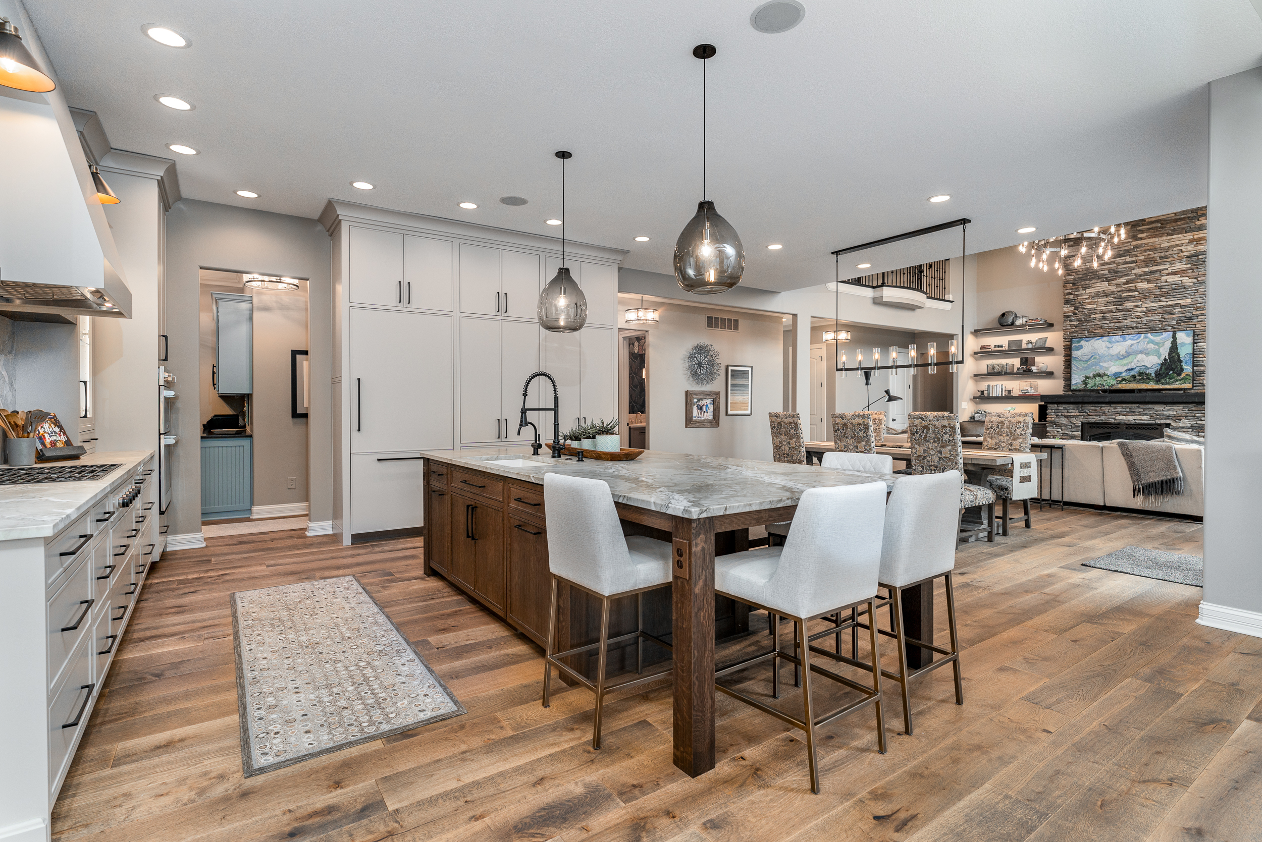 Refined and Elegant describe this property located on prestigious Club Chase in Hamilton Proper. A two-minute walk to The Hawthorns Golf and Country Club, this 4 bedroom, 4.5 bath extensively remodeled home portrays high-end quality to perfection. Around every corner are breathtaking finishes including two stack stone fireplaces surrounding an open-concept kitchen and dining area. Custom quartzite countertops, chef’s appliances, and premium cabinetry are encompassed by an abundance of natural light. Convenient main floor primary suite with heated floors and grand walk-in closet. Two separate office spaces make working from home easy. Plenty of bonus living space and storage areas. Sweat in your exercise room, relax in your hearth room, enjoy a bottle of wine from your temperature controlled cellar or indulge in a glass of bourbon in the speakeasy lounge or outdoor patio. Plenty of room for family and guest entertainment.