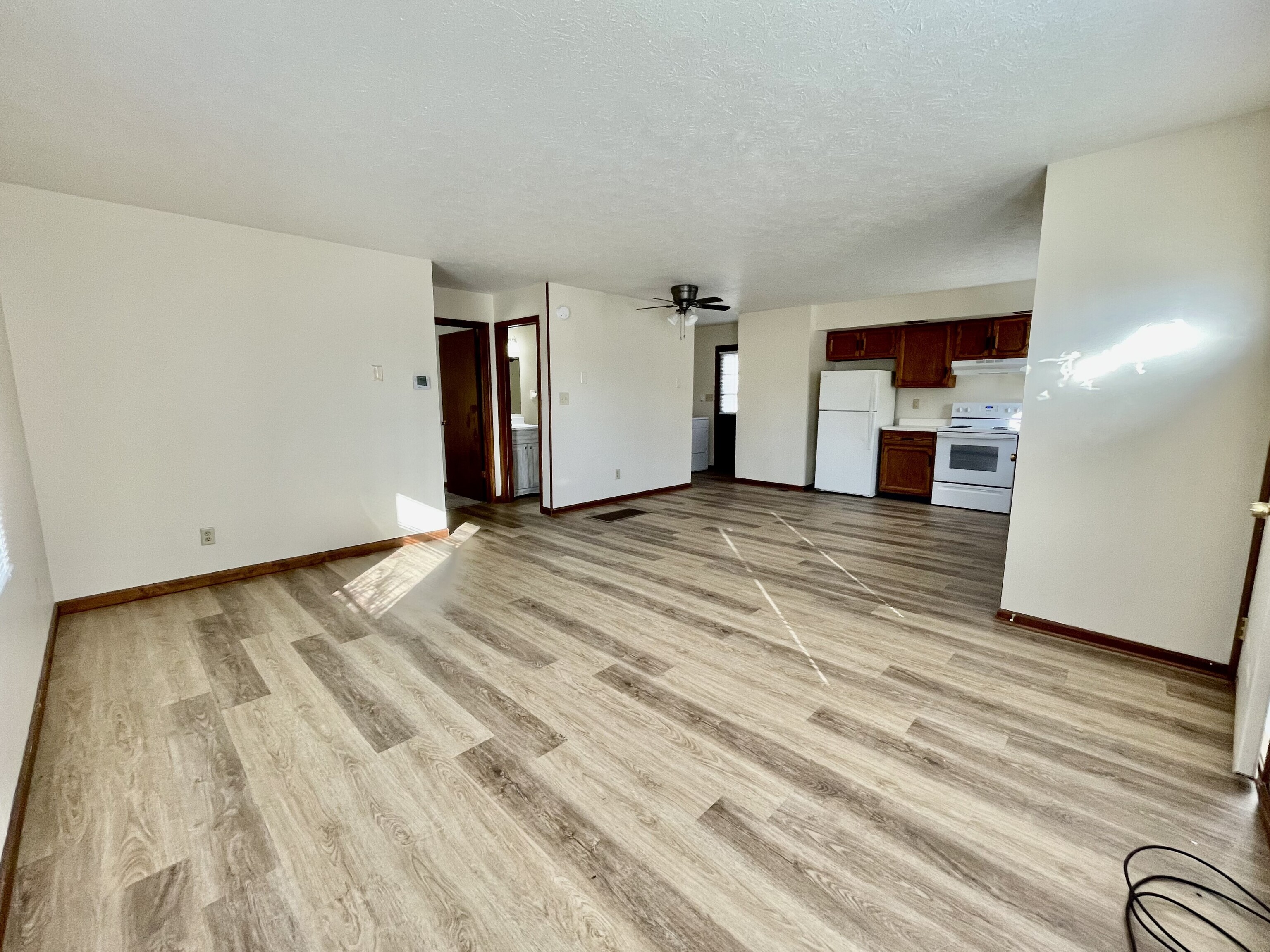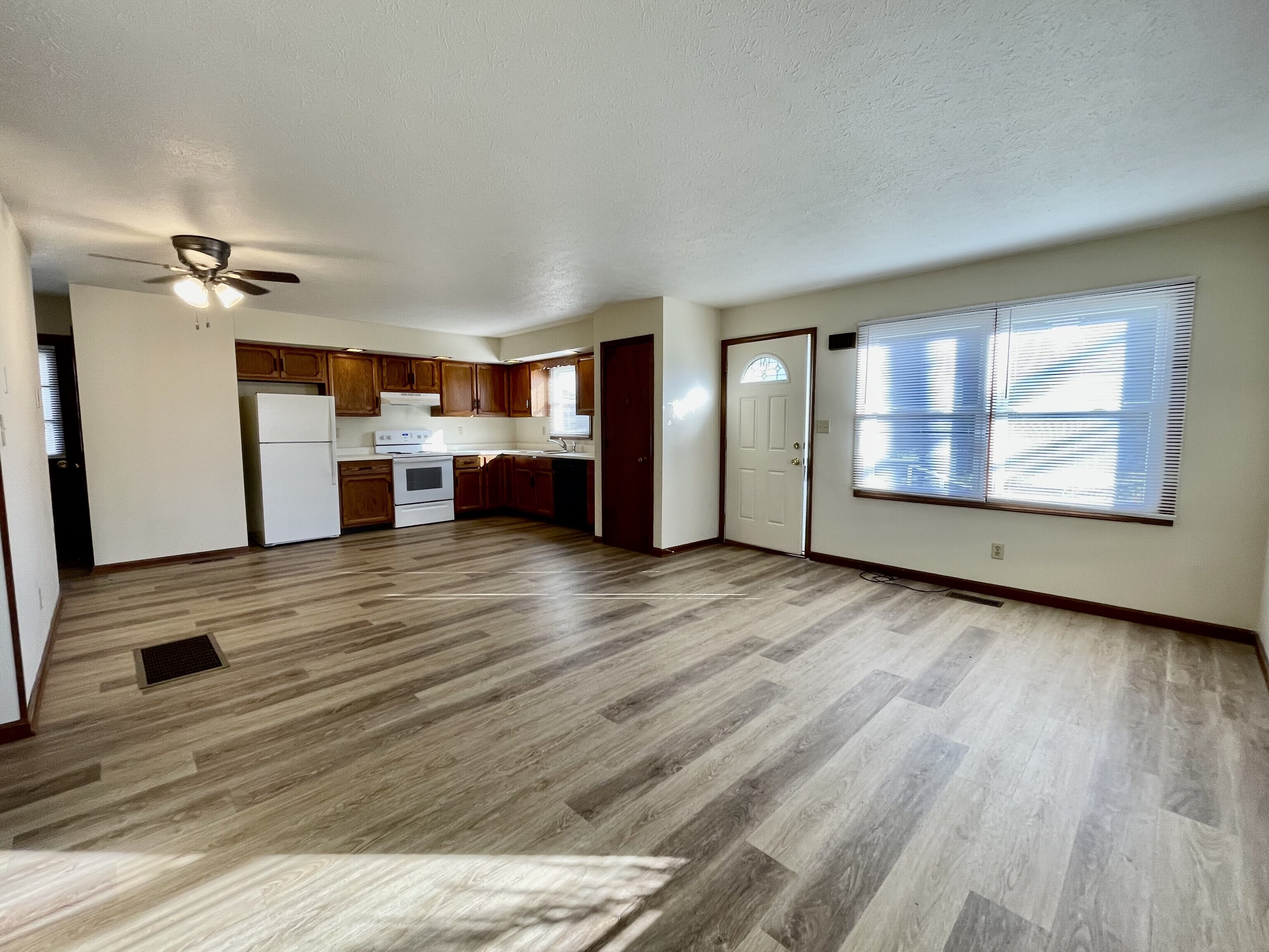 Charming, corner lot bungalow home for rent! The open concept living/dining/kitchen space is beaming with sunlight! Updated vinyl flooring in the main living space and more closet and cabinet space than you’ll need. Home is part of a duplex. Small town feel yet close to shopping, restaurants, entertainment, I-465 & I-65. Short term available at increased rate.