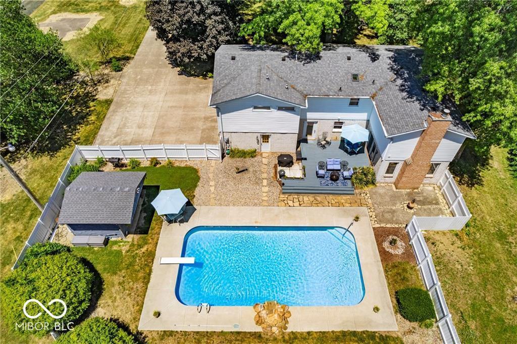 Wooded Retreat! This beautiful Colonial home on over 2 acres of wooded land in the country, but near town, is what everyone has been looking for! This quiet country neighborhood home has 4 beds, 4.5 baths, wood floors throughout, and boasts a chef’s kitchen with all the finishes! Quartz countertops, subway tile backsplash, & stainless steel appliances, including a brand new double oven. HUGE Primary bedroom retreat features double-sided gas fireplace, sitting area, coffee bar and TWO separate bathrooms and walk-in closets. The home has another large bedroom with en-suite and laundry on 2nd floor along with other 2 bedrooms. The fenced-in private pool area is perfect for entertaining and is newly updated to include a water fountain. Large deck & patio, plenty of outdoor space to run, and with a little work a court to host pickleball games! Three-car attached garage along with a detached garage with gym and plenty of storage. Brand new TANKLESS water heater, water softener & reverse osmosis system, pressure tank, and paint throughout. Close commute to schools, town, and easy access to I-74, SR-9 & SR-44. Don’t miss this one!