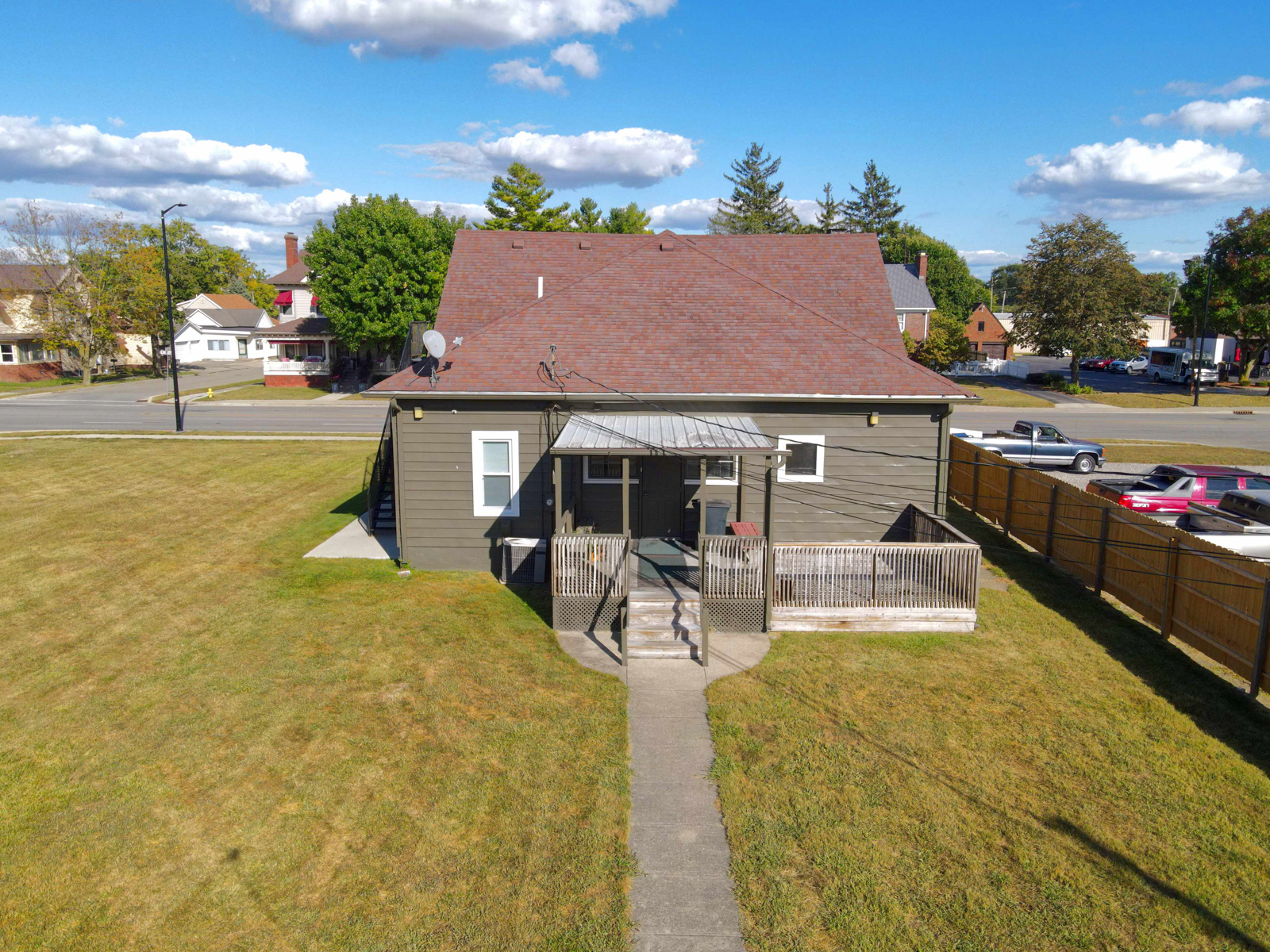 Located on the north/south main street in town, high visibility, 2 lots and building that was formerly a group home and a law office in its history. Owner has made improvements. Some newer windows, exterior and interior painting, a privacy fence to the south and tree removal/lot clean up. Several offices available, conference room area and kitchen. 1.5 baths on both levels.