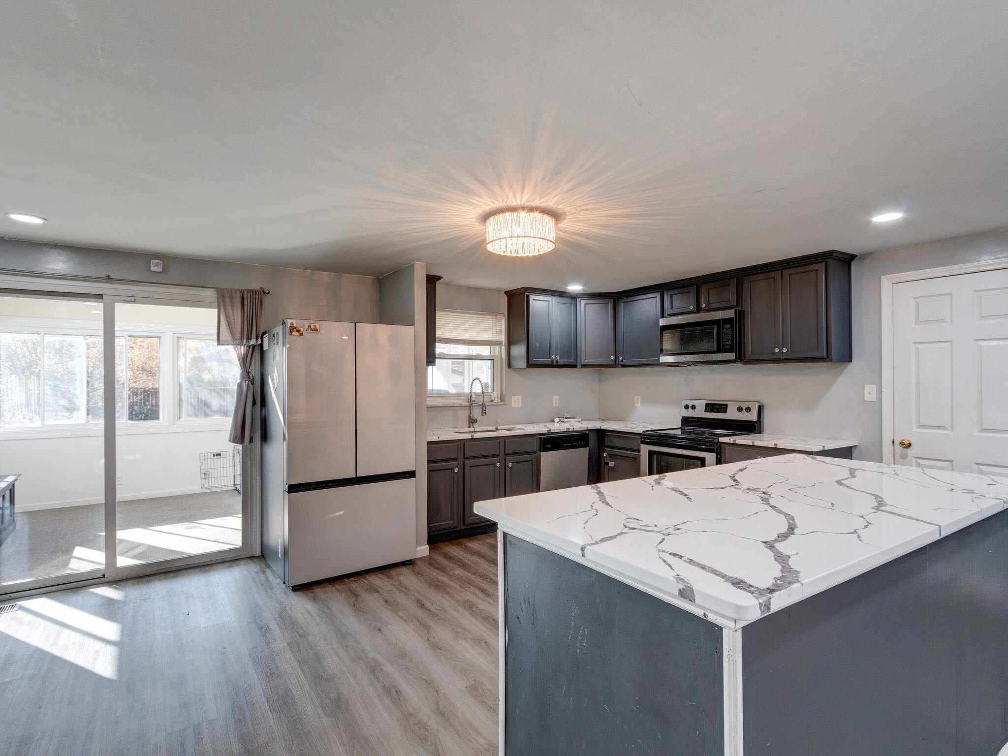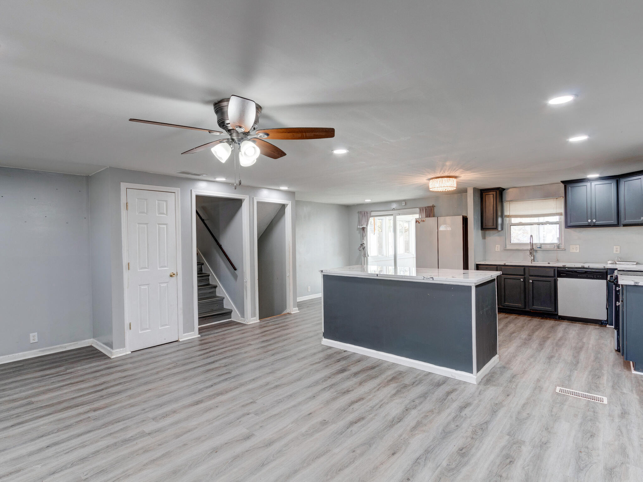 This home has room to grow! Three levels with bedrooms upstairs and down! Two bedrooms are able to be used as primary. You will love the open concept as you walk in with beautiful new granite countertops in the kitchen and plenty of natural sunlight throughout. The sunroom on the back of the home overlooks a large backyard with apple trees and blackberry bush and a large storage shed. This home has it all and will surely not last long at this price! Lovely quiet neighborhood in a convenient area! Come see it today and make it your own!