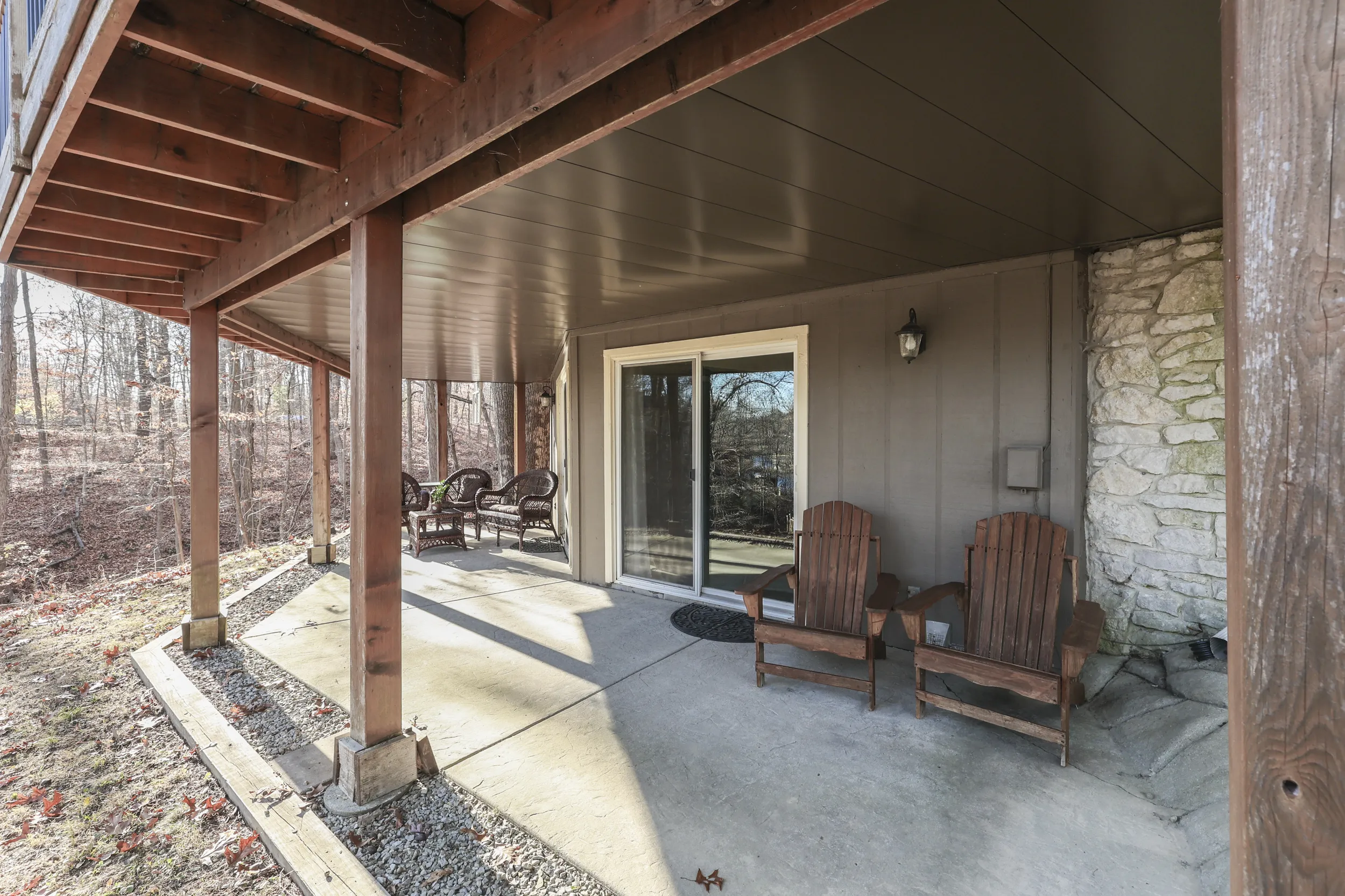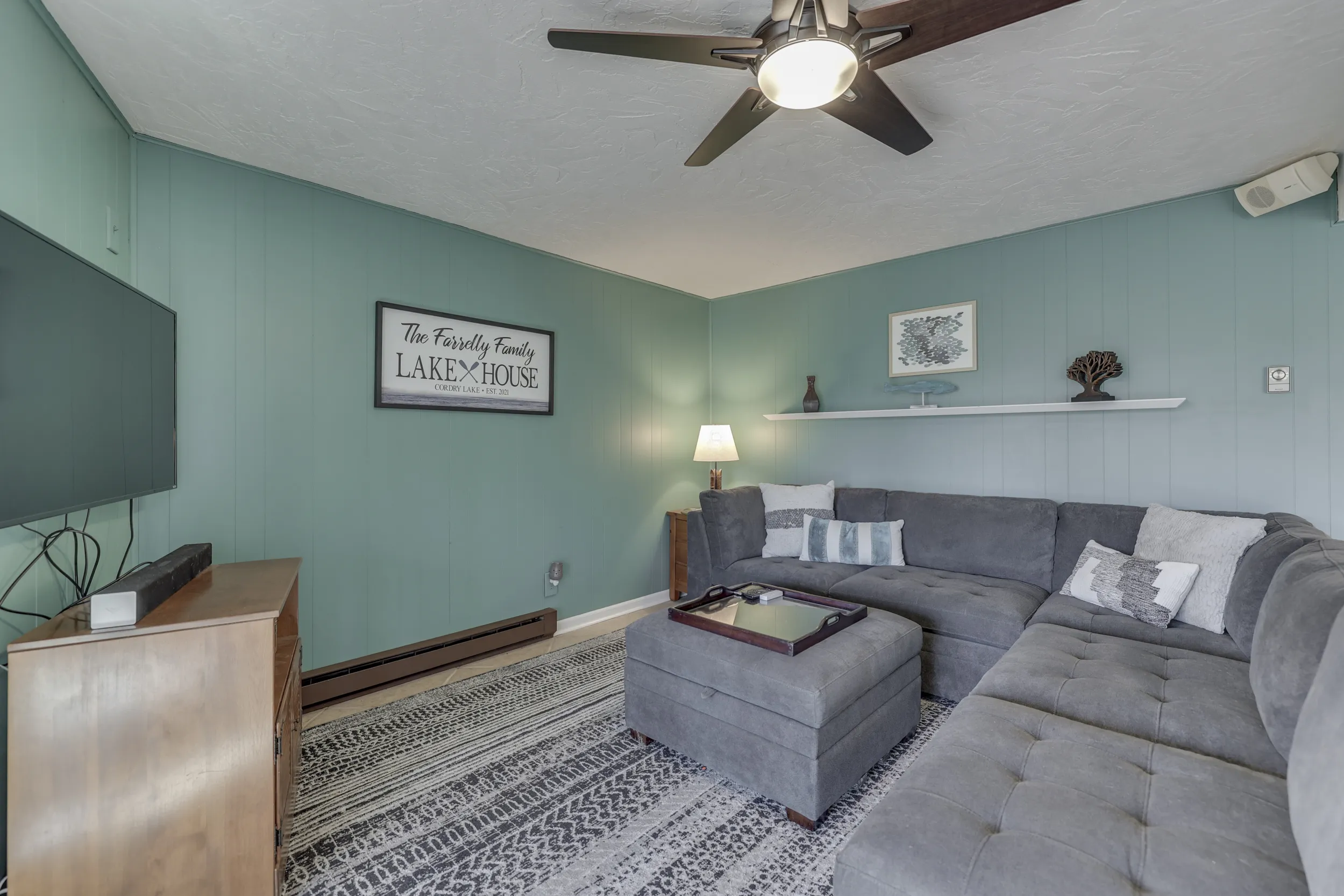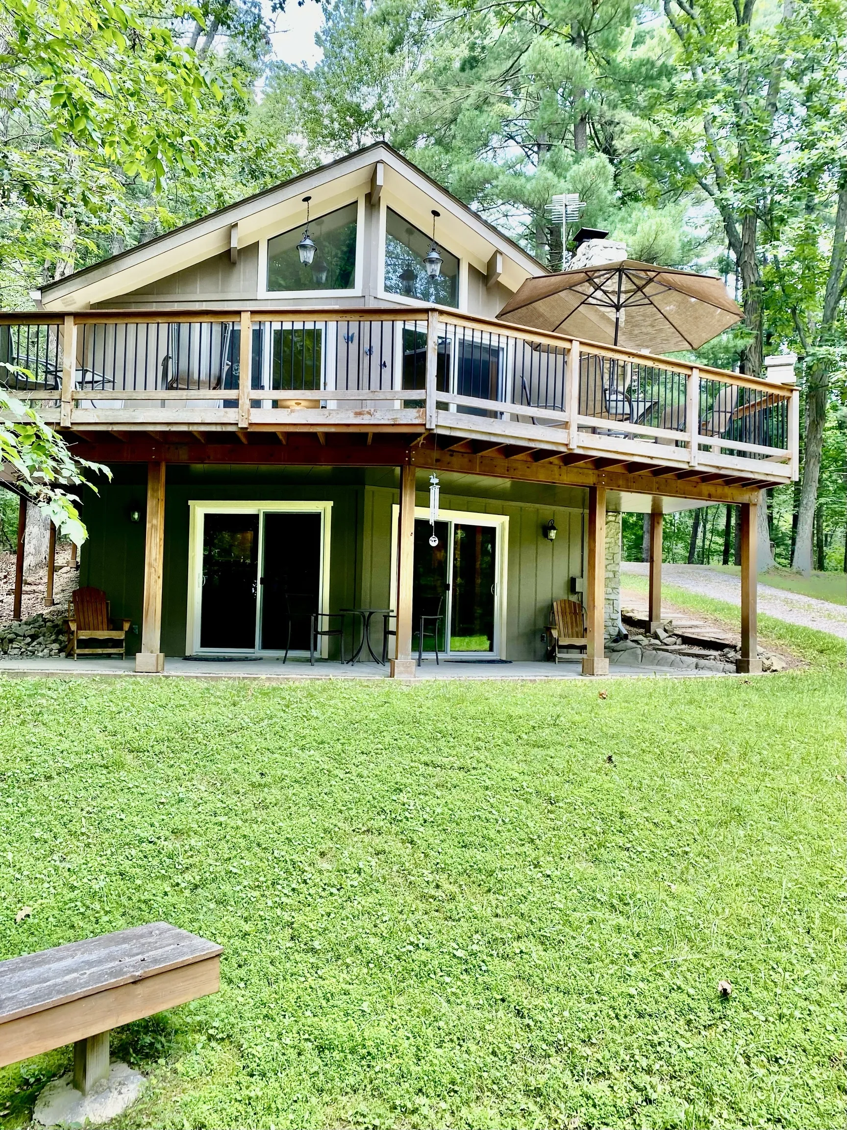 A Charming, classic Lakehouse with southern sunlight streaming through large windows and doors that offer beautiful lake views from windows, wrap around deck, lower level and patio. The main level has open kitchen, dining room and cozy living room with vaulted ceilings, natural hardwood floors and stone fireplace, along with a bedroom, bathroom, and bonus room. Your driveway offers plenty of parking and large shed for tools and boating accessories. The newly redecorated lower level has a bedroom, bathroom ceramic tile floors, new lights/fan, and laundry. Plus a welcoming family den area with a small teak bar and refrigerator for serving refreshments while you cheer on your favorite team. From the lower level the lawn slopes down past your fire pit to a new lakeside deck and stairs, and leads to your dock on a quiet cove that can accommodate 25ft+ boat or pontoon. Must see to appreciate. Perfect for enjoying lake life on the beautiful spring fed, private Cordry Lake.