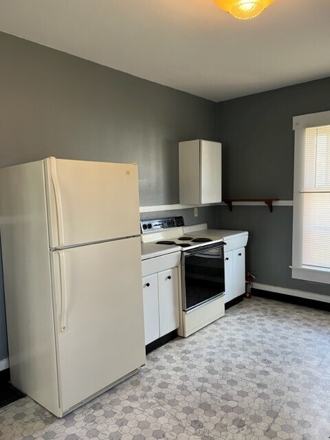 Nice home with lots of character. 2 Bedroom/1 Jack & Jill bath, large vintage kitchen, laundry room, full basement for storage. Fenced in back yard, shed & off street parking. Range, refrigerator, washer, dryer and water softener included. Nice covered front porch. Tenant pays gas, electric & water, owner pays sewage.