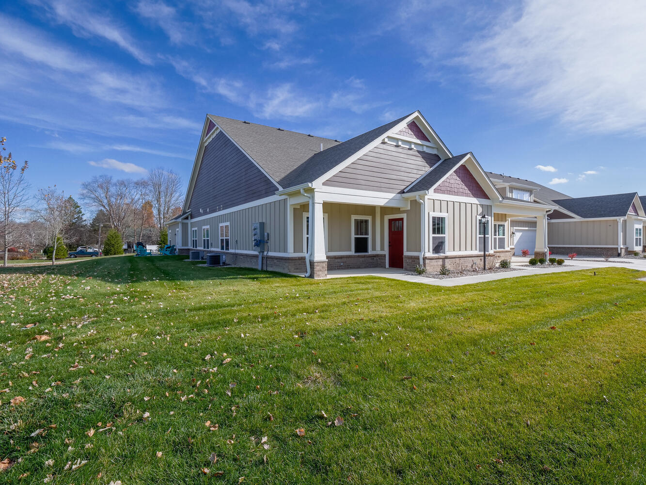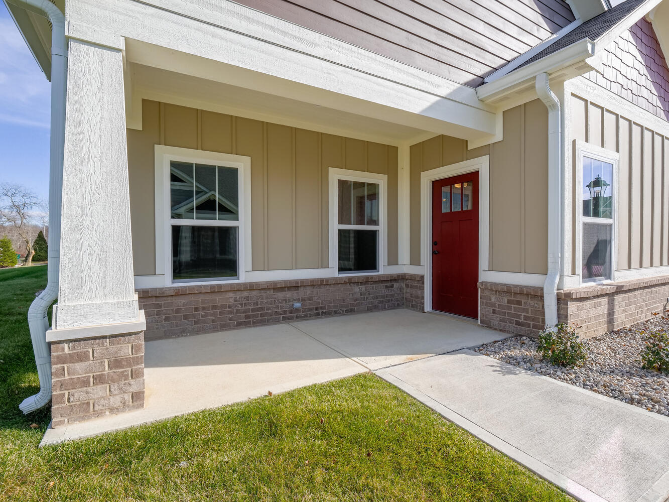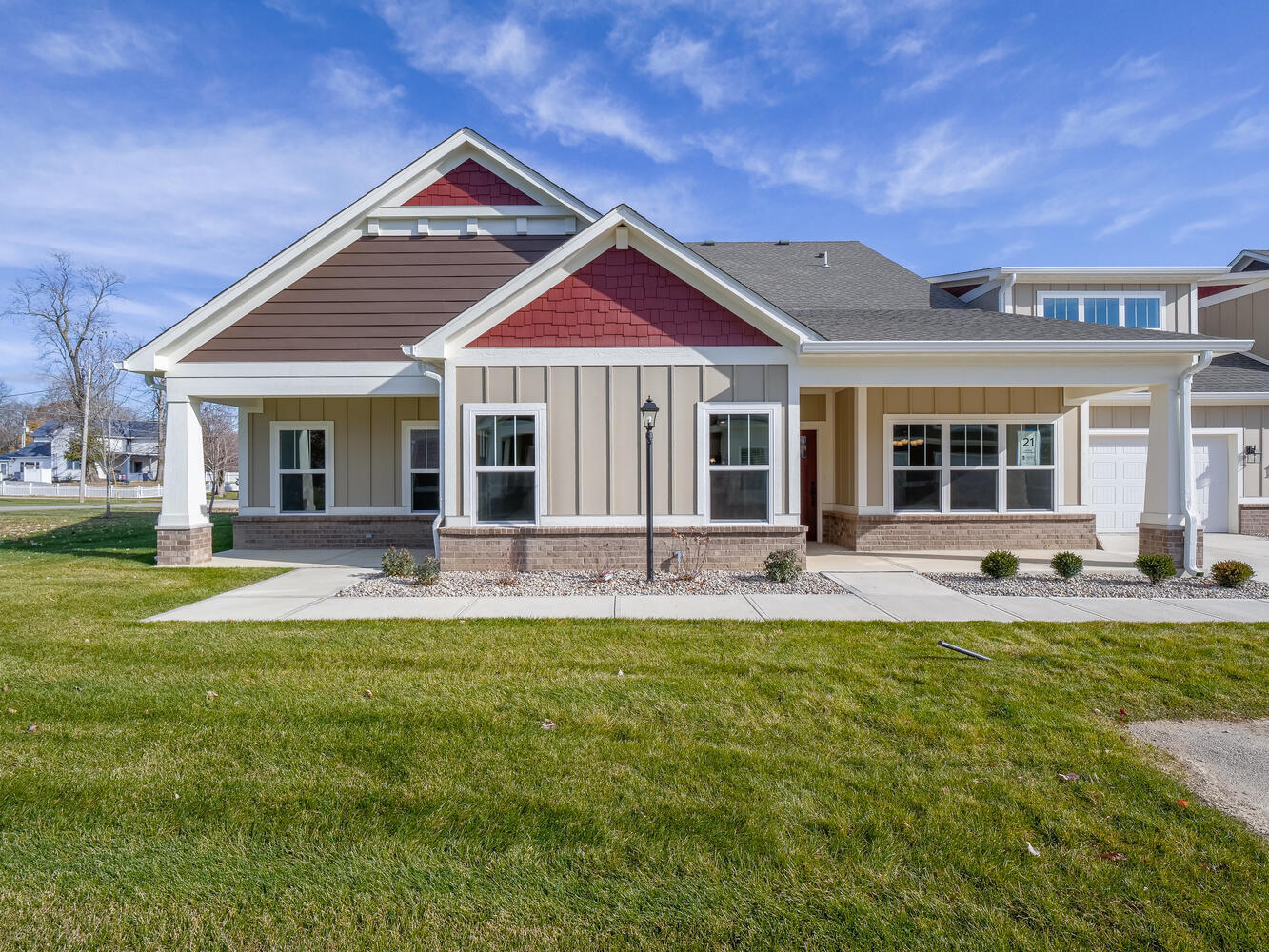 Welcome to maintenance free living in the perfectly located and highly desired Preserve at Sugar Creek community in New Palestine! This brand new condo is now ready to move into! You will love the open concept living space and kitchen with beautiful finishes throughout. The primary bedroom has a large walk-in closet and en suite bathroom with walk-in shower. The upstairs bonus room includes a full bathroom and could be utilized as a third bedroom or office/den. This unit has a nice side yard and patio with quaint surroundings. Community amenities include a clubhouse, pool, outdoor gathering area, fitness center and full on-site kitchen. This is a great property in a great community! Come and enjoy all that maintenance free living has to offer! **Seller/Builder will consider 120 sq ft. patio addition to secondary front porch with suitable offer.