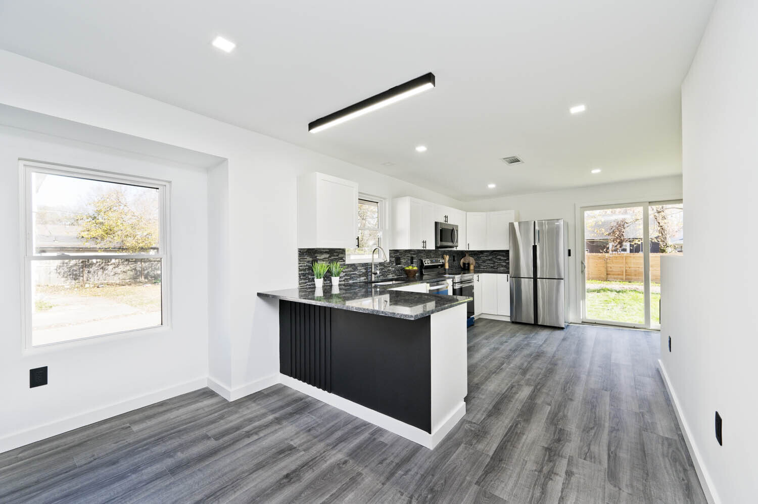 Explore this stylish and updated 3-bedroom, 2-bath residence showcasing a complete transformation from the ground up. This home has undergone a thorough renovation, encompassing everything from electrical and plumbing to drywall, flooring, furnace, AC, windows, doors, and beyond. Step inside to discover a well-lit living area accentuated by modern lighting, highlighting the spacious open floor plan. The kitchen has been revamped with new appliances, cabinets, backsplash, and sleek granite countertops. The primary bedroom boasts a walk-in closet featuring a contemporary barn door, while the bathrooms have been modernized with new vanities, toilets, and tiled showers. The finished basement adds versatility with a full bathroom and bedroom, creating separate living spaces. Outside, revel in the fully fenced backyard, complemented by double doors on the fence for potential indoor parking. Situated on a corner lot, this property offers ample parking and is conveniently located just minutes away from downtown Speedway, restaurants, and shopping.