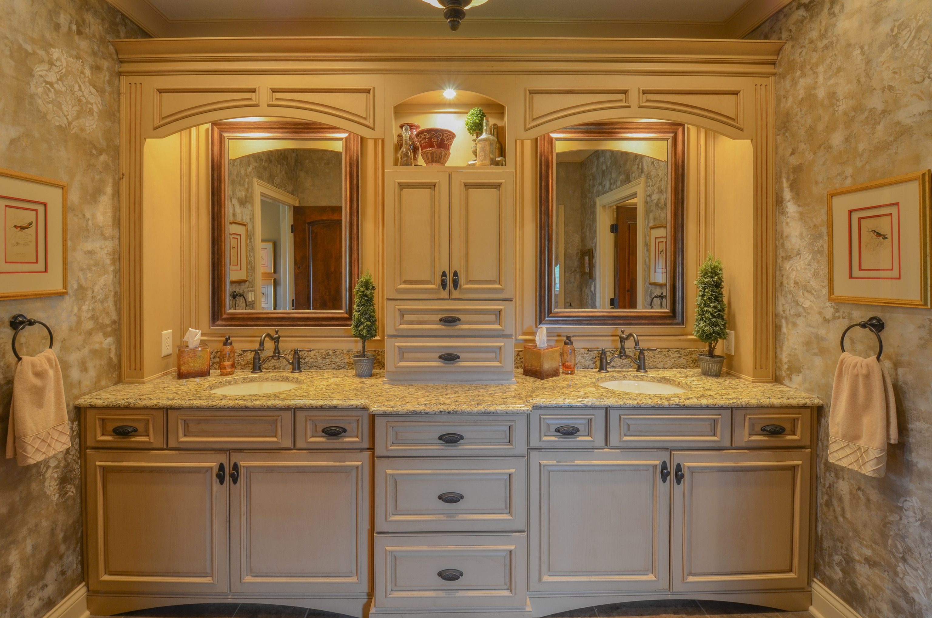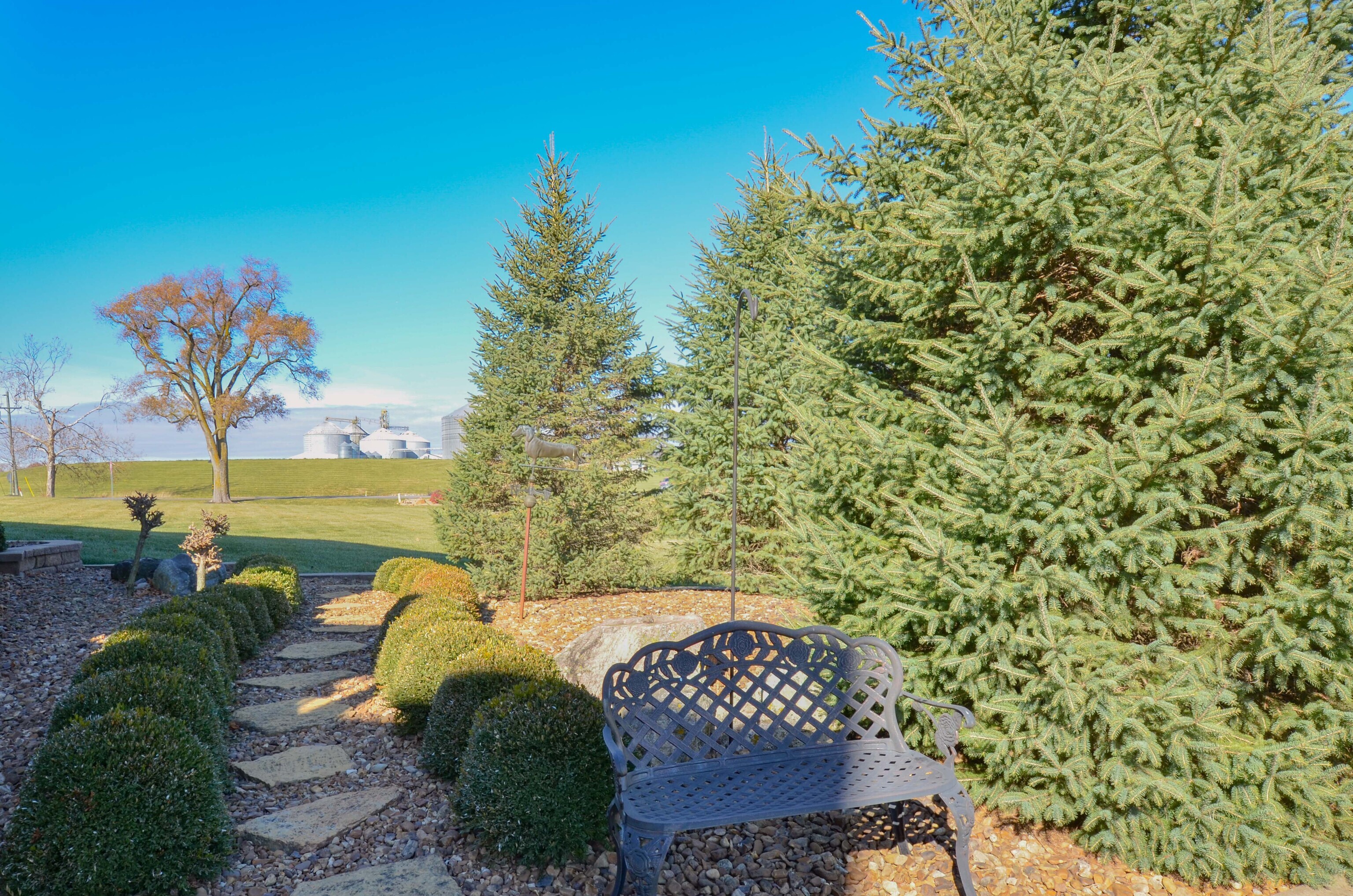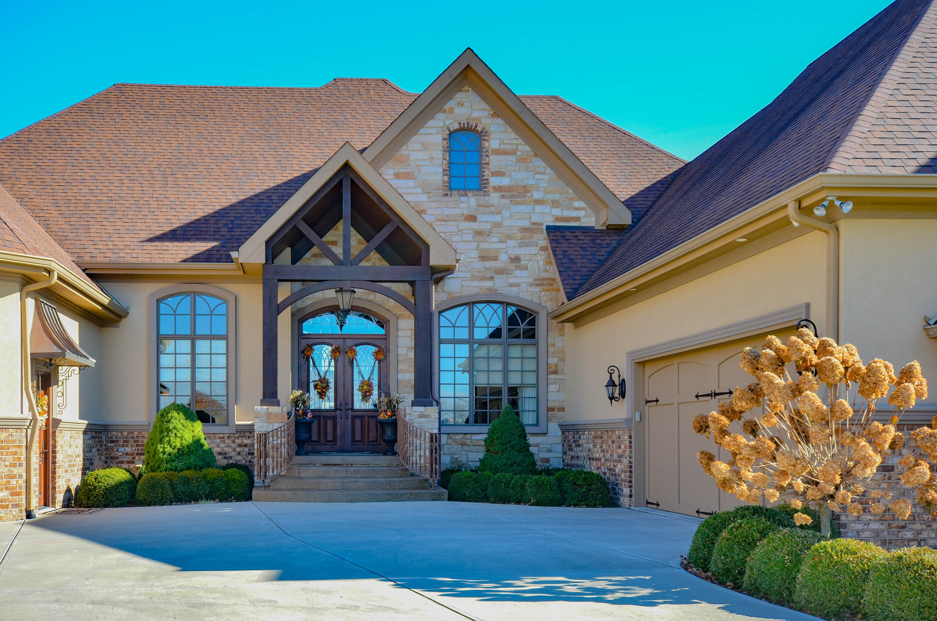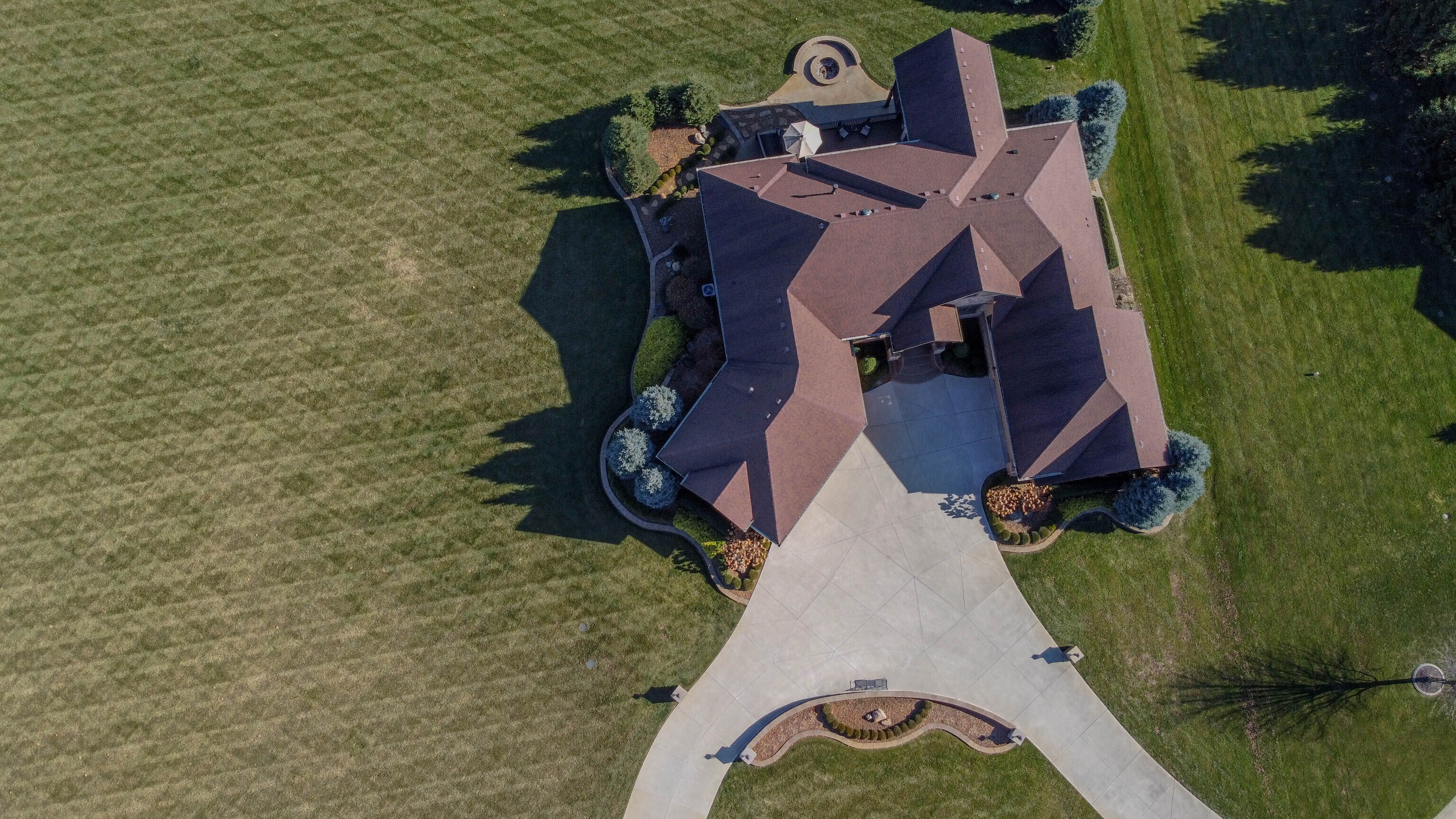 The moment you step foot into this home, you feel the warm & inviting atmosphere. It has an elegance about it, but not in a formal setting. Open floorplan, but also cozy & intimate areas. Knotty alder cabinets & doors make it unique. Molding finishes are extra special. Great for entertaining w/a large kitchen & great room that open up to screened porch & deck. Spectacular views looking onto a golf course setting w/farm land surrounding it. Main level includes large master bedroom, large walk-in shower & oversized walk-in closet w/lots of cabinets. The additional 2 bedrooms share a jack and jill bath. Formal DR, den & large laundry rm. The daylight basement is entirely finished w/a suite for family or guests. Large bar area w/built in ice maker, dishwasher and beverage refrigerator are the focal points. Lots of activity room, including pool table, tv viewing & card playing. There is a 40×16 bonus/safe room and lots of storage throughout the home. Two 2 car garages. Landscape is mature and has seasonal colors surrounding the home with firepit and lower patio area.