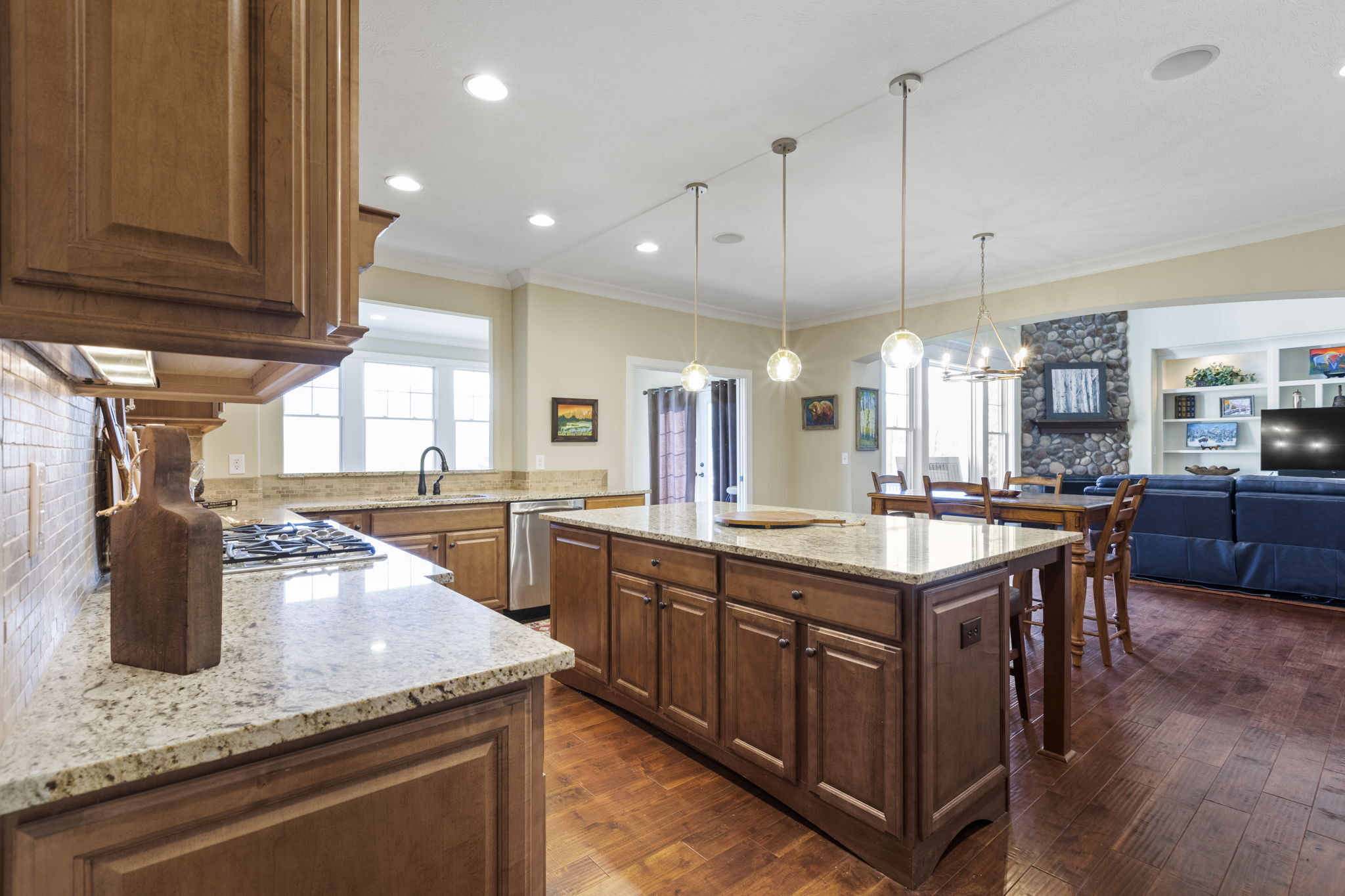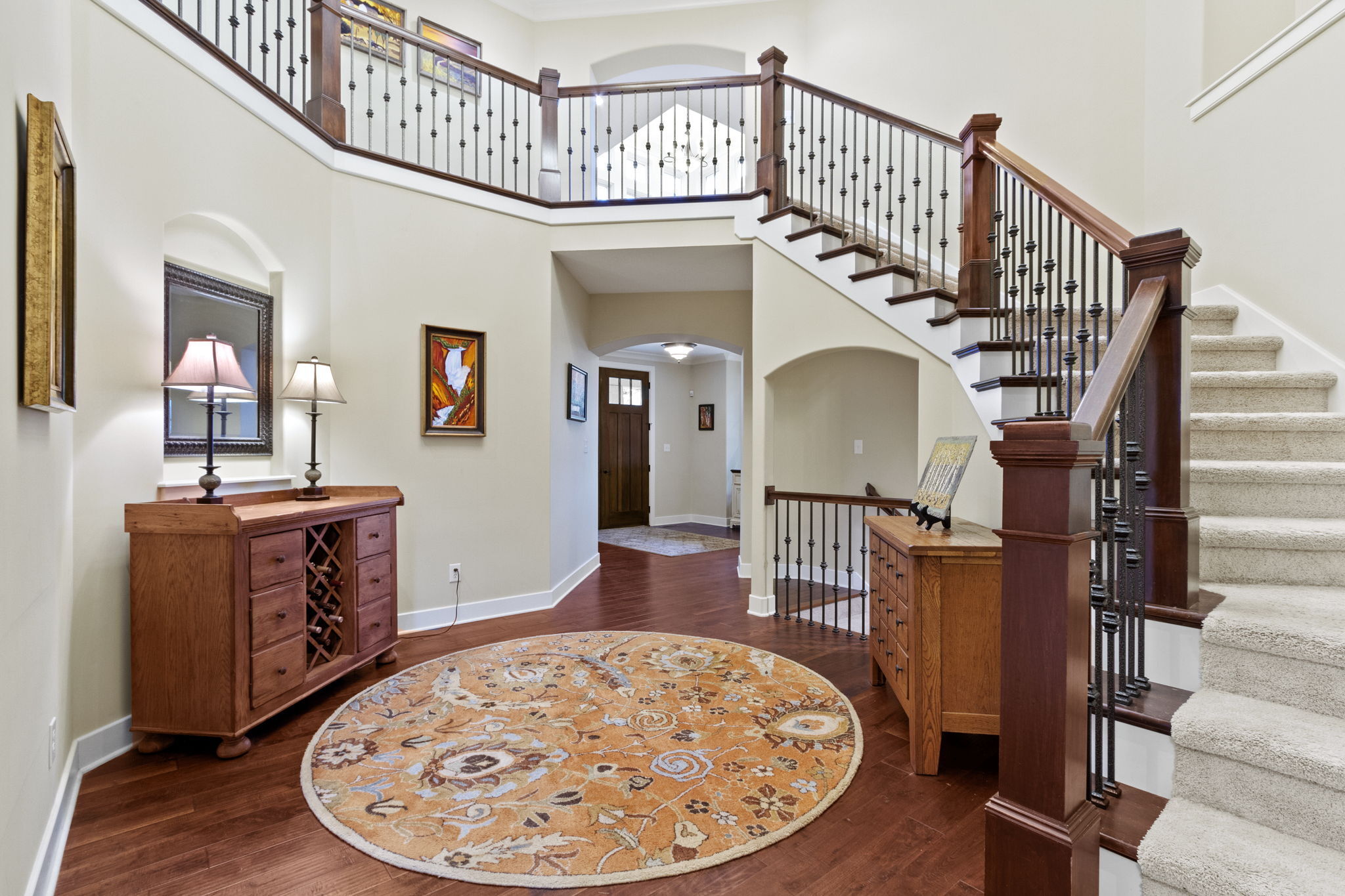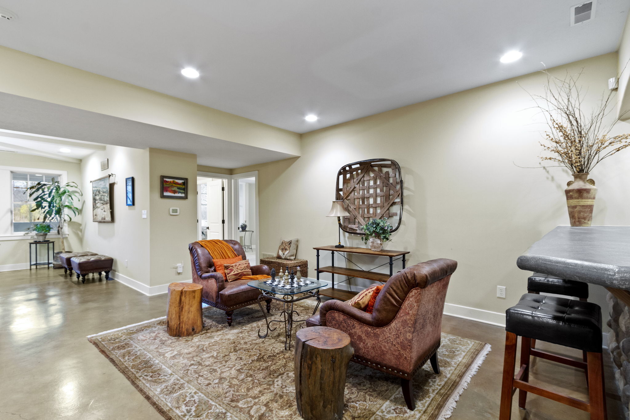 Custom home by G&G Custom Homes. Discover luxury in west Carmel on a private lot. This stunning residence offers the perfect blend of elegance, comfort, and unparalleled craftsmanship. The focal point of the living area is the floor-to-ceiling stone fireplace, complemented by a spacious kitchen with a gas range and walk-in pantry. Relax by another fireplace in the sunroom. The upper level boasts a library that provides a cozy and peaceful space for relaxation and four large bedrooms with a “secret room” for play or storage. The lower level is an entertainer’s dream, featuring a theater room, wet bar, wine cellar, and a bedroom suite. Outside, multiple entertainment areas and a firepit await. Custom touches abound, from elegant stonework to Pella windows and coffered ceilings. Wake up to breathtaking sunrises in this exceptional home.