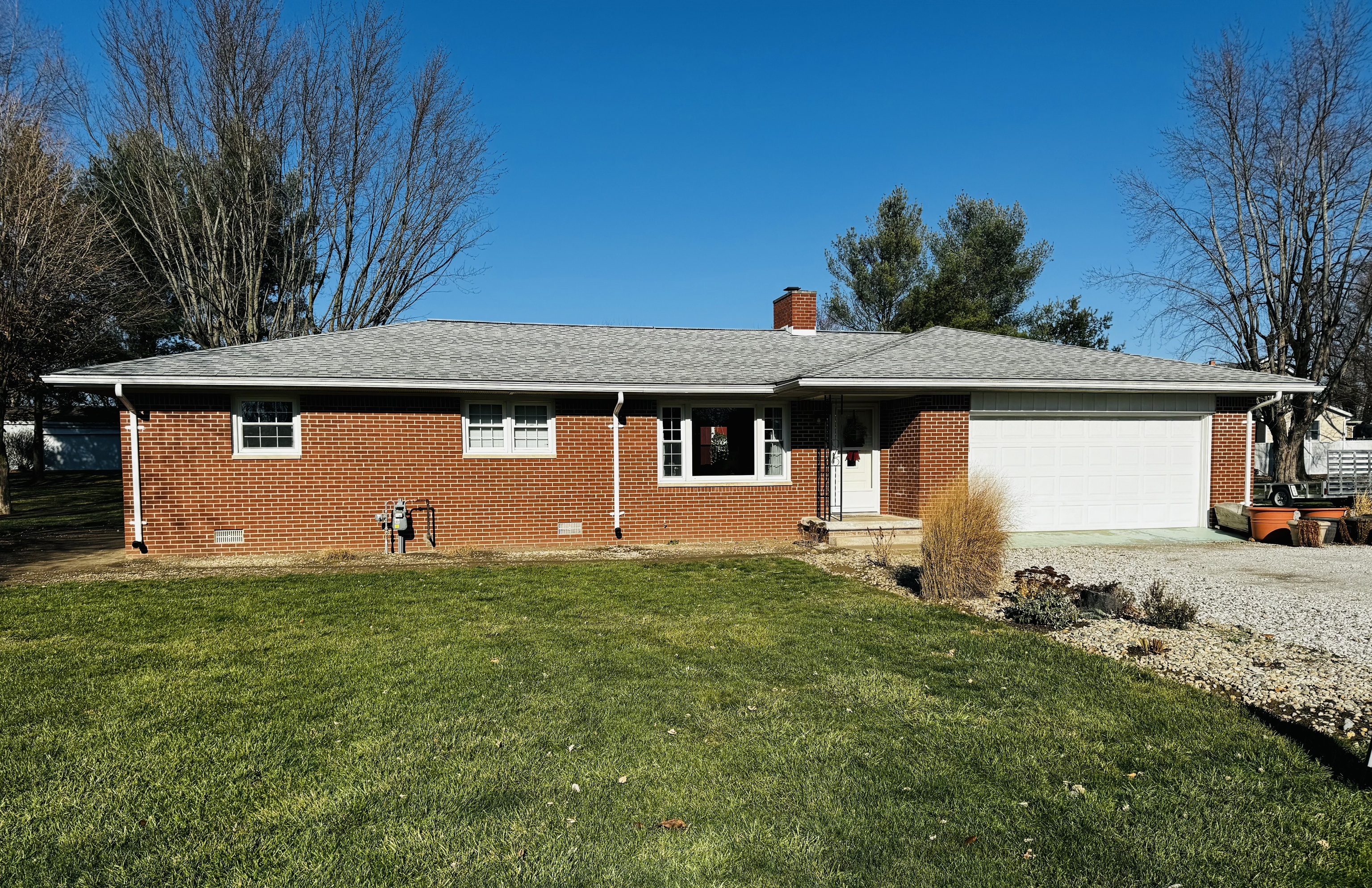 3-bedroom, 2 full bathroom brick ranch home nestled on a .78 acre lot in the charming town of Jamestown. Step inside and be greeted by an inviting interior filled with natural light. Upgraded replacement windows throughout the home. The open floor plan seamlessly connects the living, dining, and kitchen areas, creating a warm and welcoming atmosphere. The 2 bathrooms provide convenience and privacy. Owners’ upgrades since 2017 have included vinyl laminate wood flooring, carpet, new front door, new back door, upgraded light fixtures, tiled main bathroom, new main power leg from pole to breaker box, and paint. Newer refrigerator, oven, and micro hood. All appliances staying with the home. This property boasts 4 garage spaces, 2 car attached and an additional 2 + car insulated detached garage. If you’re a car enthusiast or simply in need of more storage this detached garage is a dream come true. The additional space offers versatility for a workshop, exercise area or place to house your favorite toys. Oversized lot provides plenty of room for outdoor activities and gardening. Schedule a viewing today and start envisioning the life you could create in this wonderful property.