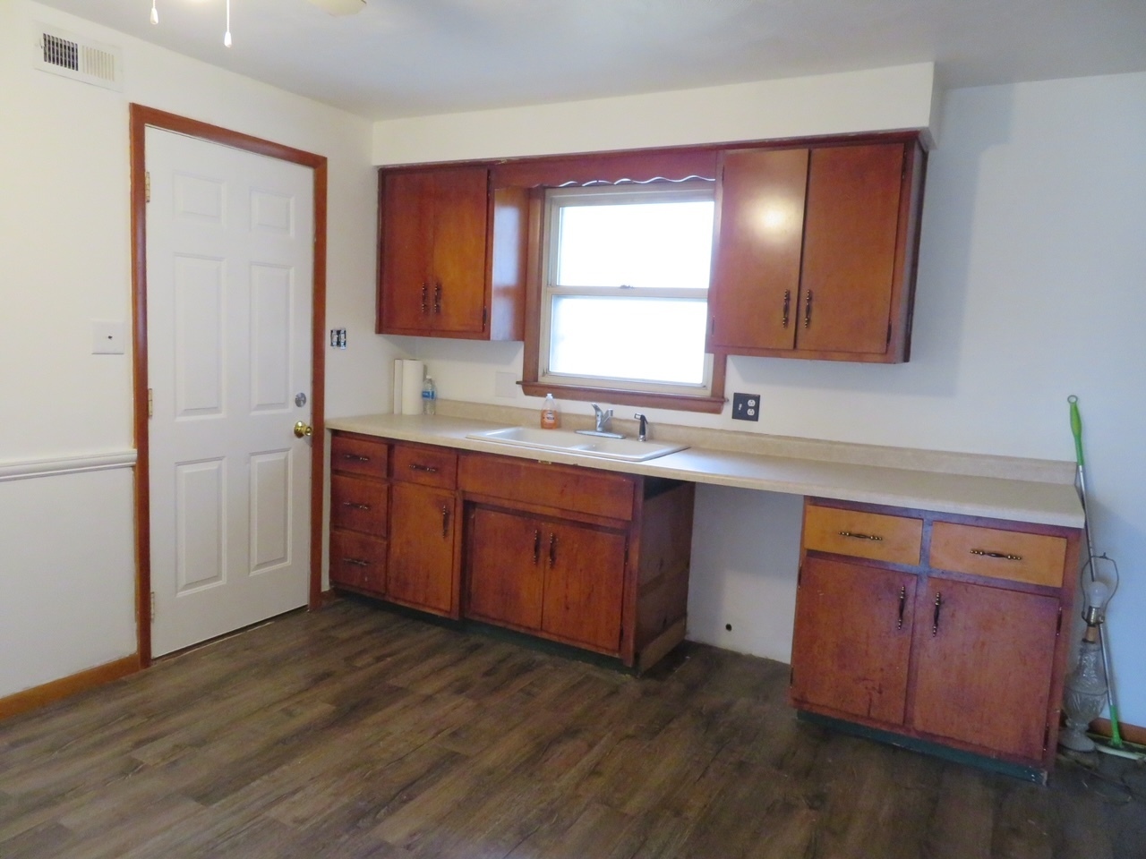 Brick Ranch has Large Living Room with new flooring, new paint ,new ceiling fan– 2 Bedrooms with new flooring, new paint–Eat-In Kitchen–1 Bathroom with new sink–ECC Heat with central air–nice large enclosed back porch–Large covered patio–Full Fenced in Back Yard–Large attached one and half car garage–House is being Sold in As Is Condition
