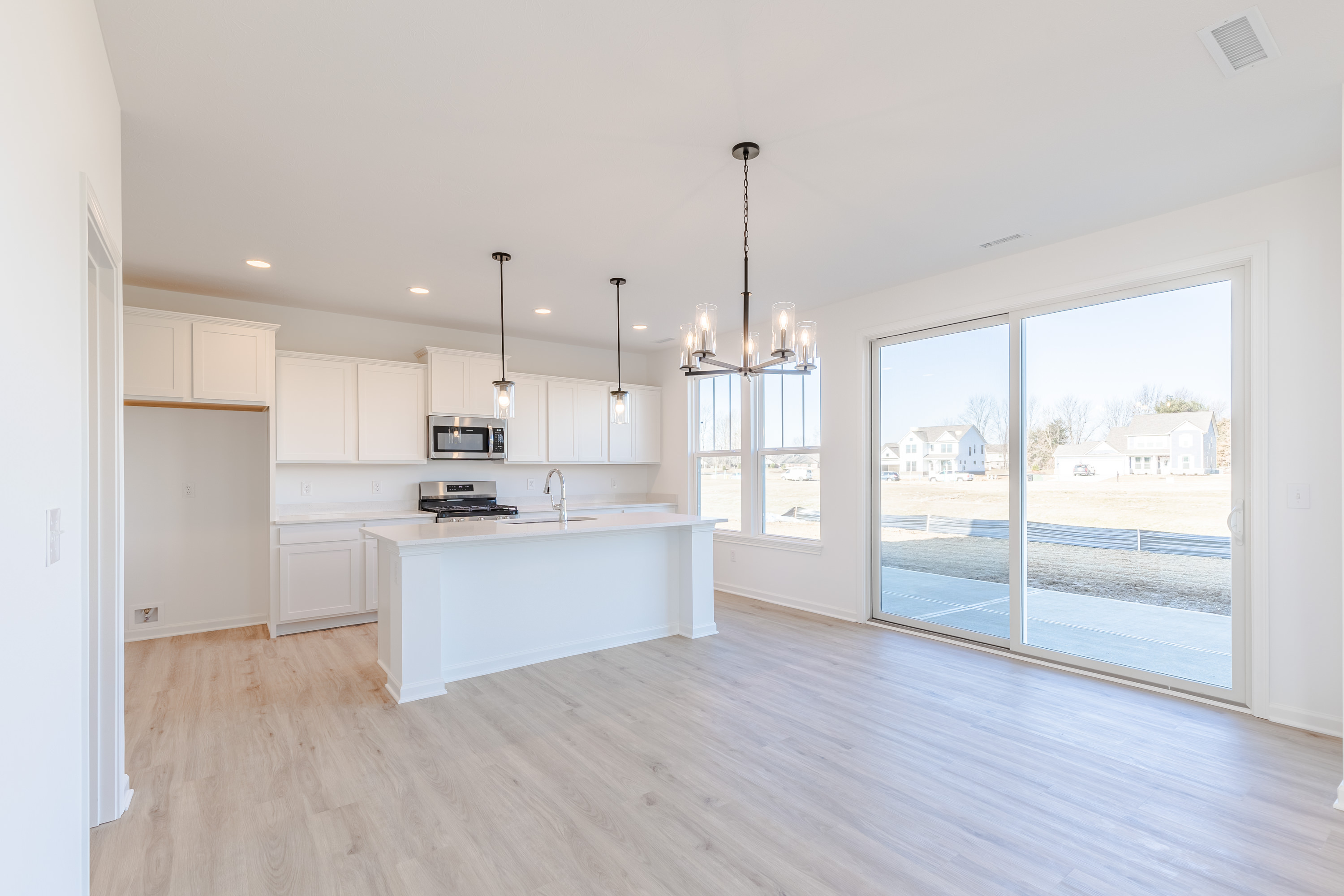 MLS#21954251 Built by Taylor Morrison – Brand new home in Pittsboro! This Farmhouse-style home features a welcoming front porch and an open-concept living space. Off the foyer, you’ll find a formal living room. The great room, with vaulted 2-story ceilings, opens to the breakfast area and chef-inspired kitchen. The kitchen boasts a large center island, stainless steel appliances, quartz countertops, ample cabinets, and a walk-in pantry. A main floor flex room can be customized as a playroom, office, or craft room. Upstairs, enjoy four bedrooms, a loft, and a laundry room. The primary bedroom features a luxurious bath with a dual sink vanity, two linen closets, a tiled shower, and a large walk-in closet. Each additional bedroom also has a walk-in closet, providing ample storage throughout the home.