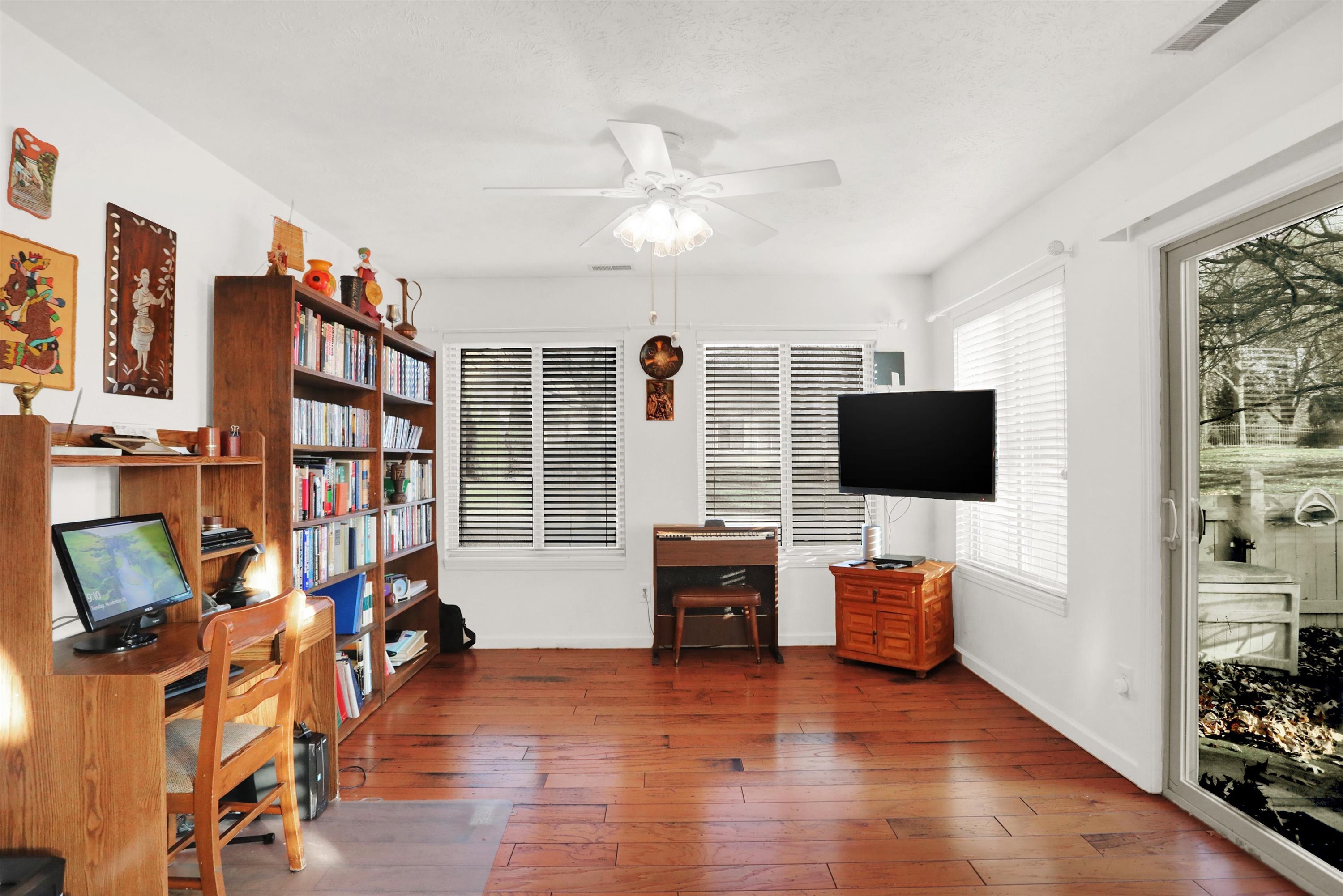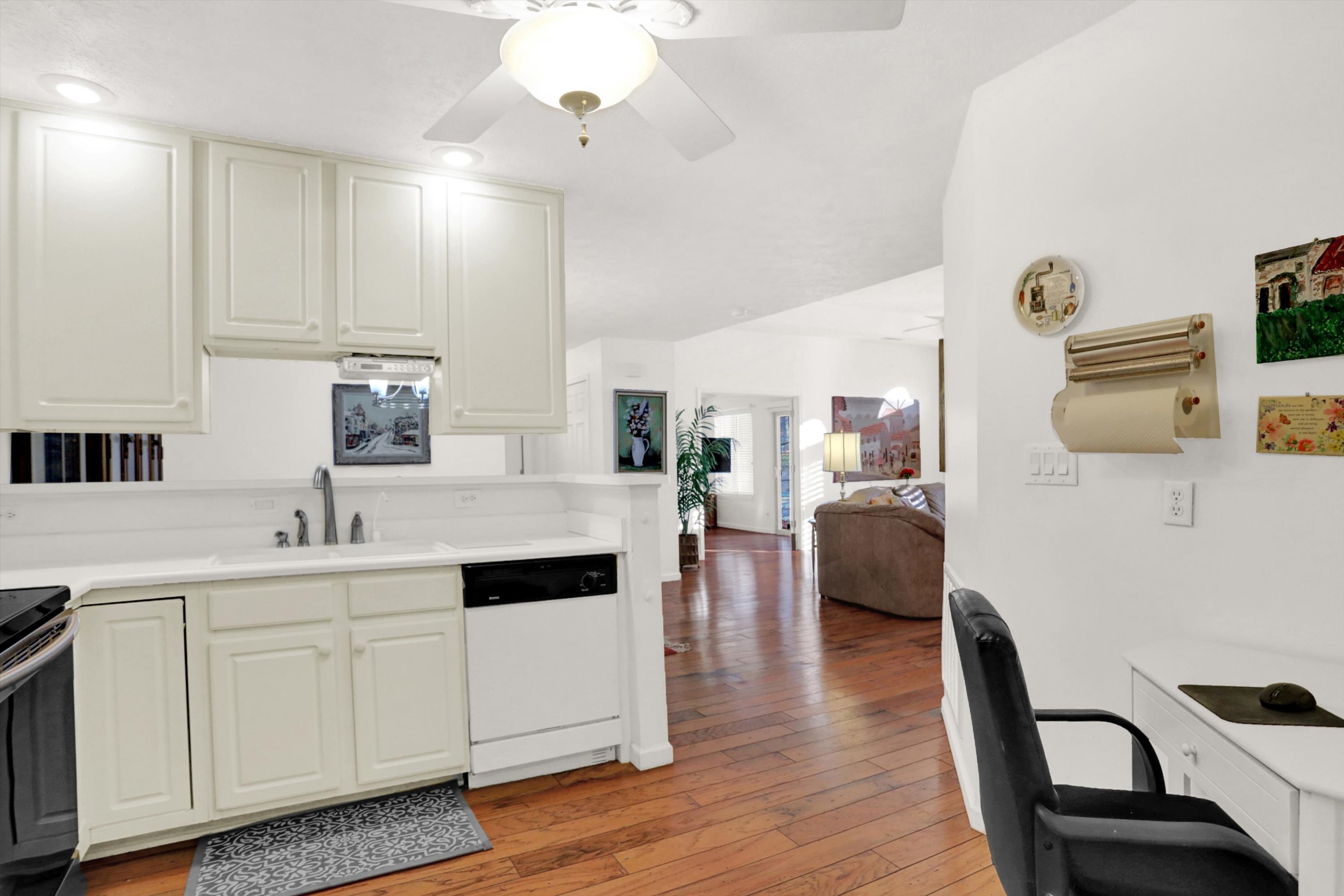 Sun filled and ready to move into, this spacious 2 BR, 2 BA condo features beautiful hardwoods throughout; great room with raised ceiling and fireplace; plantation shutters, dining area and a patio. Master bedroom with walk in closet, walk in shower and cathedral ceiling. Sunroom has French doors & would make a great office or additional bedroom. Additional upgrades include new furnace in 2017, reverse osmosis water system, and tankless water heater. This is a great home for entertaining as well. All appliances stay. Clubhouse with full kitchen facility includes game rooms and fitness center; heated swimming pool and putting green. Neighborhood include outdoor streetlights, mini park green spaces throughout, landscaped grounds and waterways.
