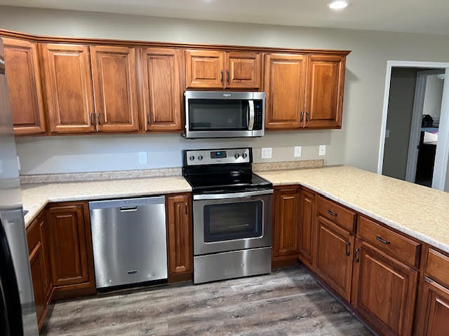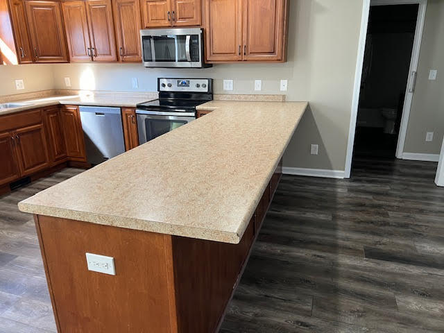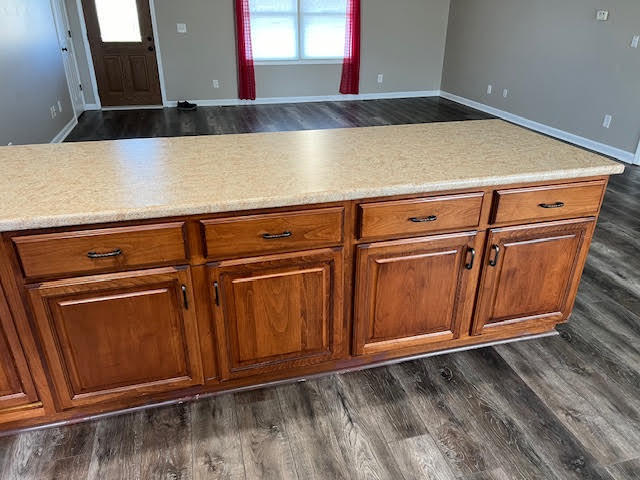 Three Bedroom/Two Full Bath Newer home with open Floor plan. Split bedroom plan with Primary bedroom having double sink in bathroom along with walk-in closet. Open concept has large u shaped kitchen with 6 seat bar area over looking oversized living room and dining area. Newer luxury matching vinyl planking throughout the home. Laundry room has storage and laundry sink. Exterior has covered front porch, rear patio, landscaped dry creek run, extended patio area with automatic awning.