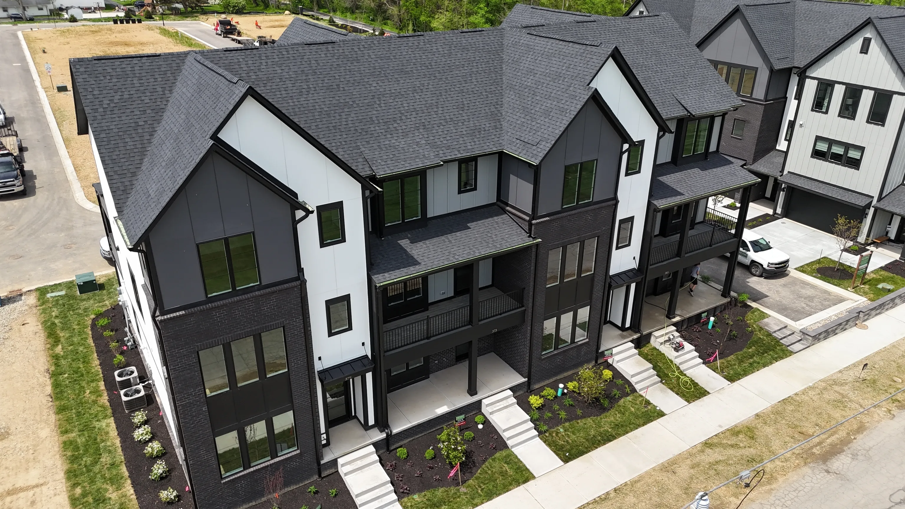 Located in the new Midland South community, this 3-story luxury townhome built by Old Town Design Group is perfect for those looking to live near the best of what Westfield has to offer! This townhome features a sprawling 22×10 covered outdoor living area adjacent to the kitchen. Prepare culinary delights in a well-equipped kitchen featuring quartz countertops, painted cabinetry, and stainless steel appliances, including a microwave drawer and a gas convection oven with built-in air fryer. Three spacious bedrooms are available, each with ample walk-in closet space and an en-suite bathroom. Utilize the versatile entry level bedroom as a private retreat or a functional home office. Other amenities include: raised ceilings on all levels, floor-to-ceiling tiled showers, security system, pre-wiring for speakers in great room and outdoor living, additional media outlets, custom shelving in all closets and pantries, wooden stair treads on stairs to second floor, mudroom lockers, and an electric fireplace with painted accent wall. Explore the scenic Midland Trail, accessible via nearby walking paths and enjoy effortless access to the attractions and conveniences of Downtown Westfield.