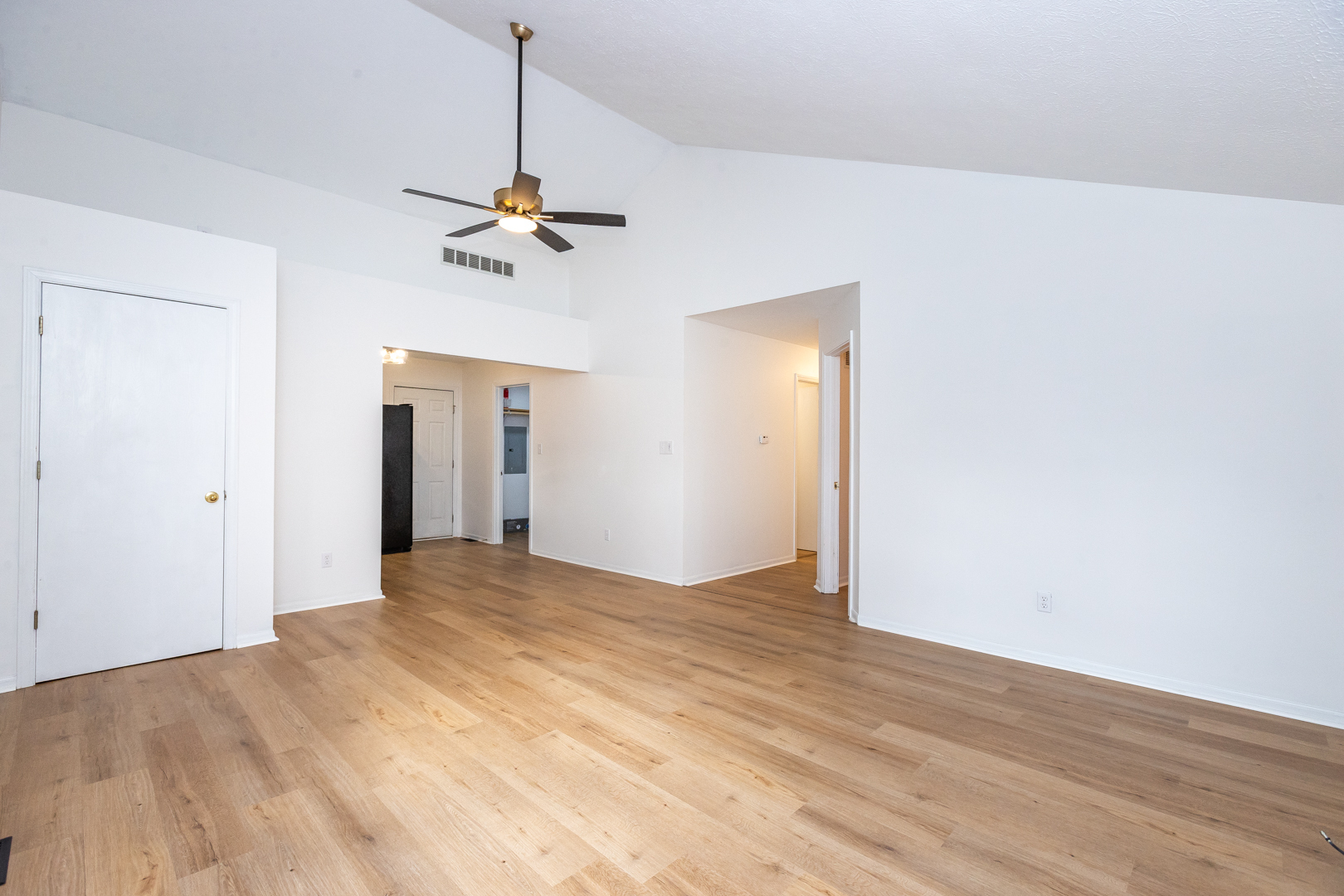 AWESOME 3BR/ 2BA with an open floor plan and cathedral ceilings! BRAND NEW luxury vinyl plank flooring throughout. Fresh paint throughout, NEW Furnace, AC and Water Heater, NEW countertops, newer kitchen appliances, washer and dryer included. Nice-sized primary bedroom with double closets and master bath. 2 CAR GARAGE and a fully fenced backyard are just a few of the other features this cute bungalow offers! Located in a great neighborhood that’s active with kids and older adults. Walking distance to shopping, restaurants, bars, grocery, and more!