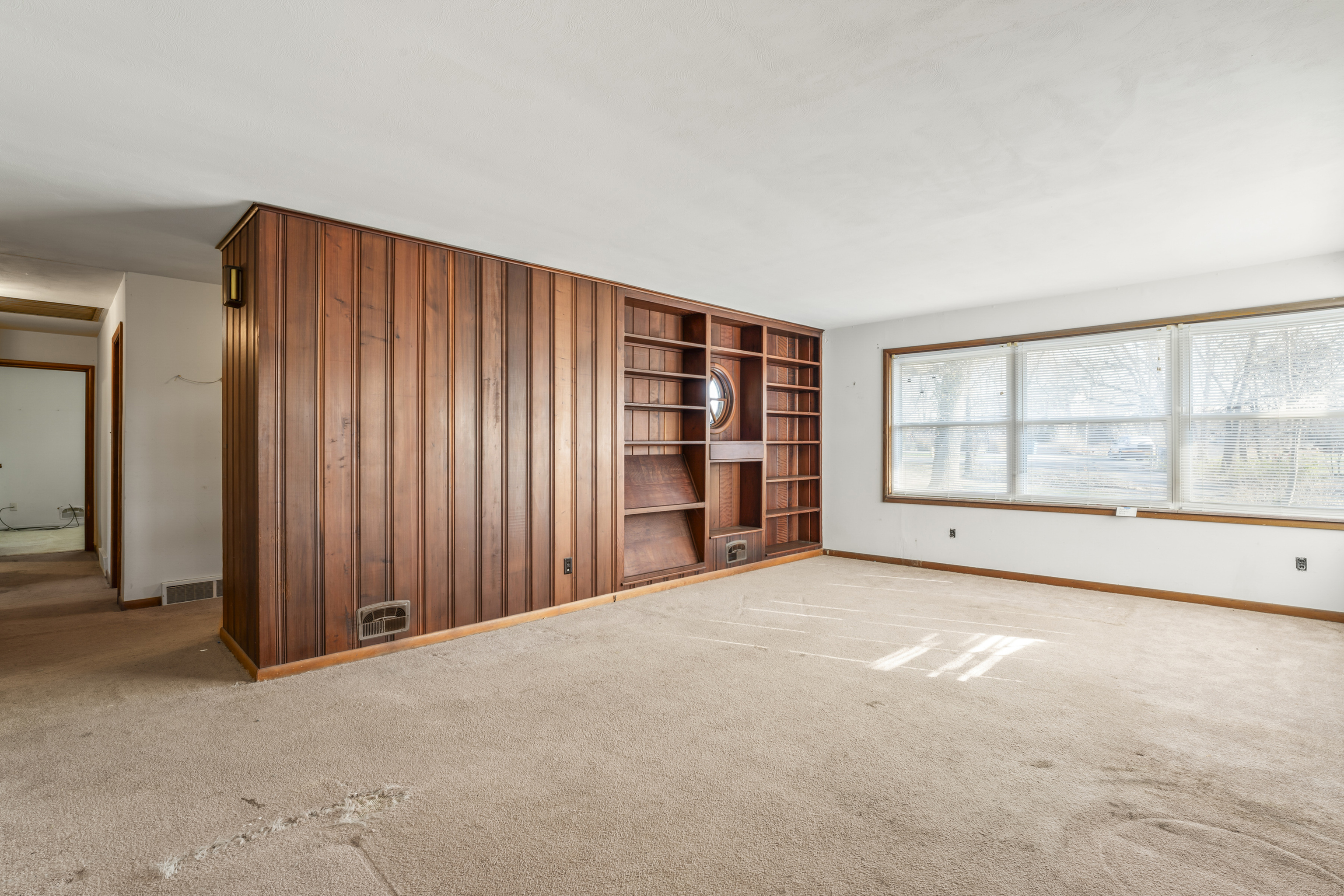 WOW!!! This is a gem of a mid-mod, in need of a little polish! Original hardwood floors throughout main floor! Gorgeous built-in cabinets floor to ceiling in the kitchen. Built-in book case, stunning! Huge sunroom with light streaming in from all sides! Roof approximately 10 years old, vinyl windows newer, hvac around 10 years old, newer electric 200 amp box. Three bedroom one full bath and 1/4 bath in basement. Garage is temperature controlled. Gorgeous Patio under awning that you have to see. Oh and did I mention it’s on One and a half acre property! So close to shopping, dining and entertainment. Walk out basement. This won’t last long.