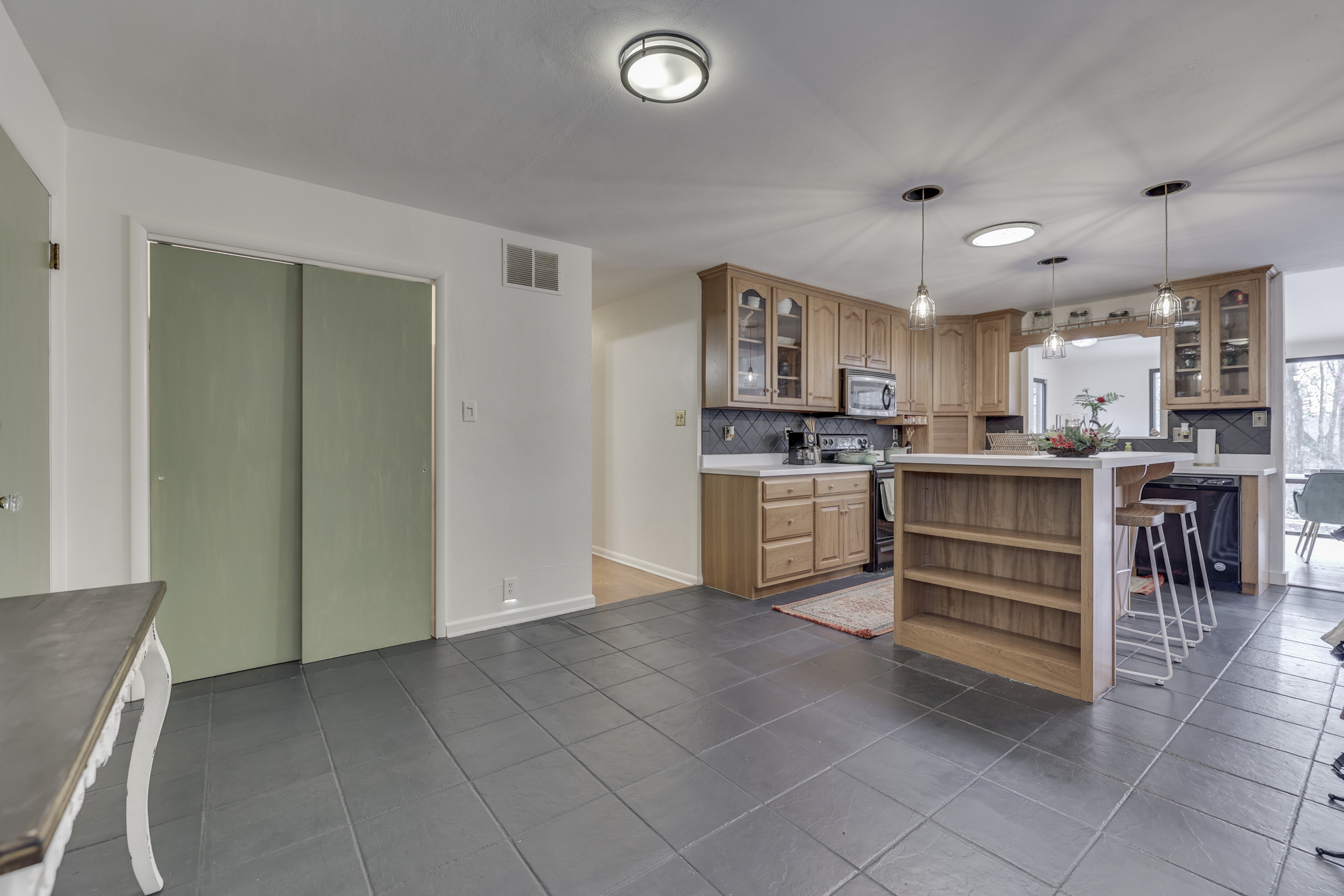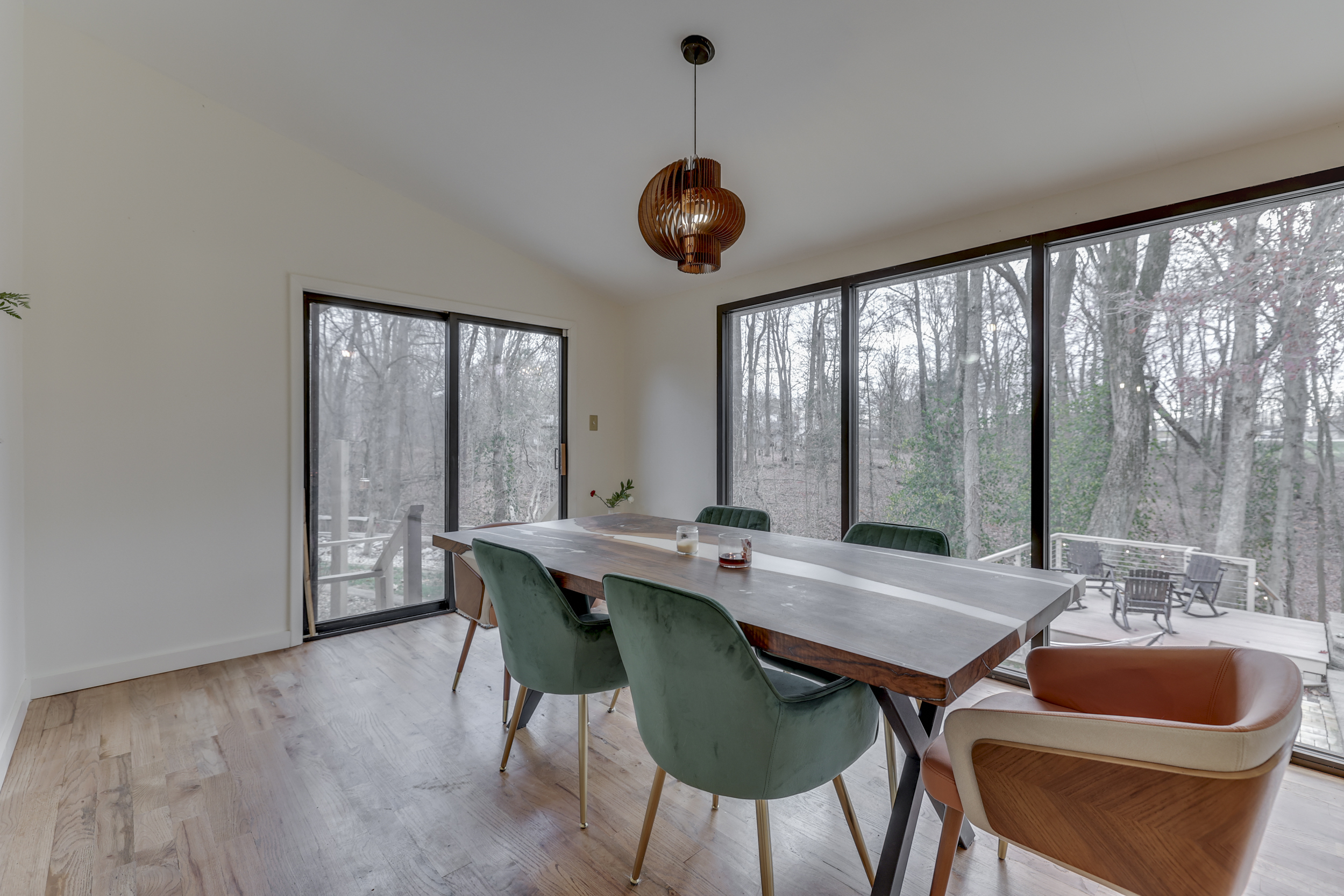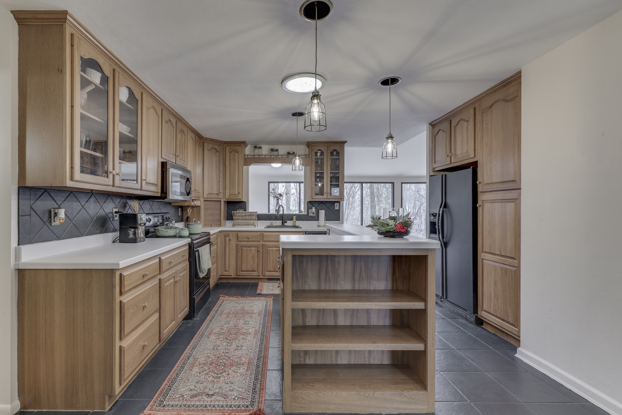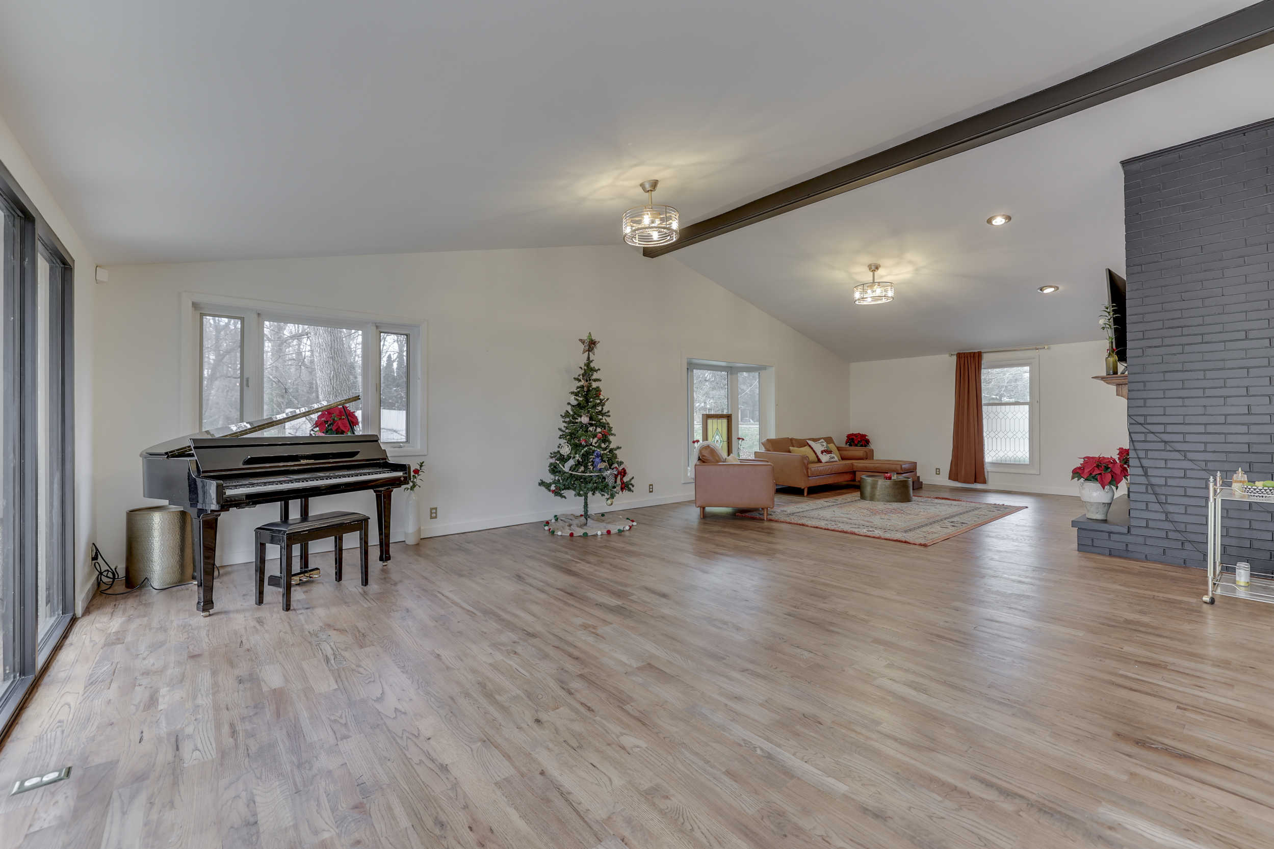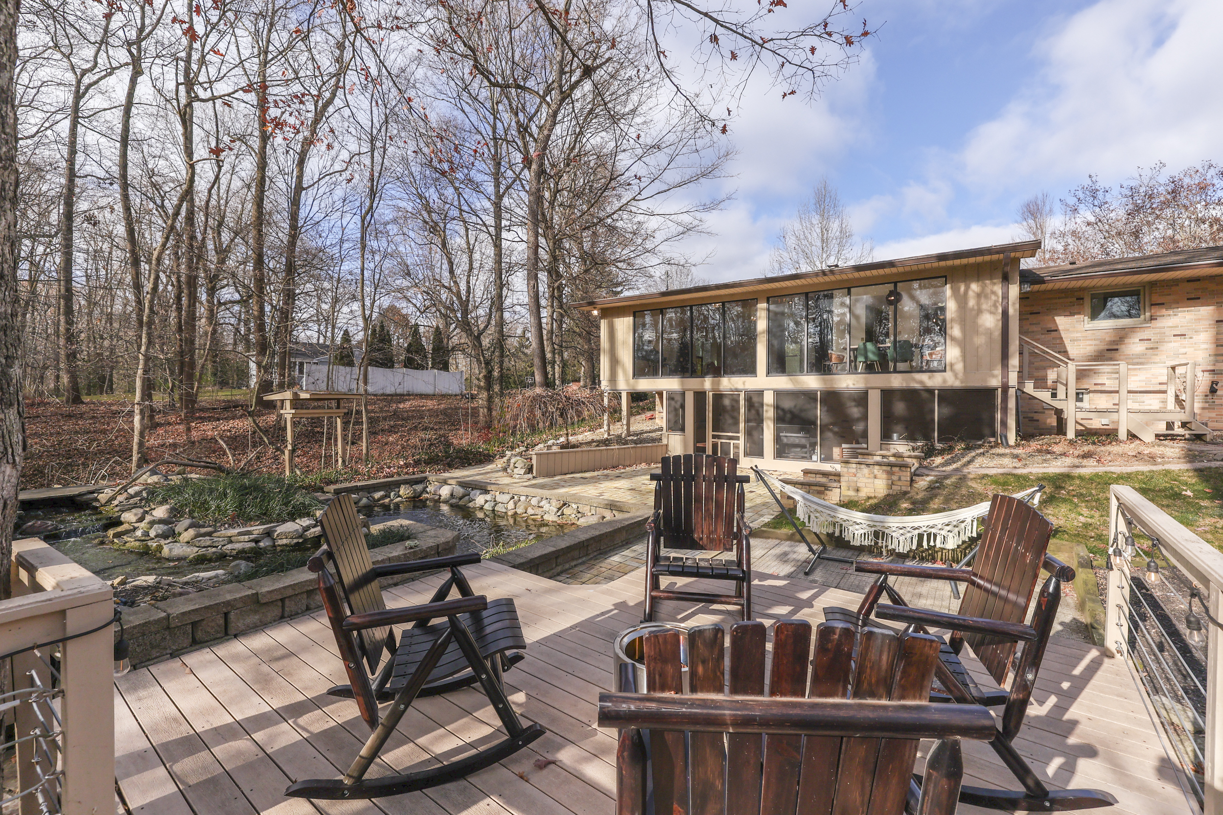 Beautiful Mid-Century Modern Ranch Home *3 BEDROOM + 3.5 BATH* w/ Finished Walk-Out BASEMENT on 1.54 ACRES! 3,328 Sq. Ft.! Features: MAIN: Open Concept Floorplan; Large GREAT ROOM w/New Hardwood Laminate Floors + Cathedral Ceilings + Newly Painted Masonry Fireplace + Wall of Windows w/Awesome Views; DINING ROOM w/New Hardwood Laminate Floors; Lovely Updated Eat-In KITCHEN: Center Island w/Breakfast Bar + Solid Surface Counters + Tons of Cabinet Space + Pendant Lighting; PRIMARY BEDROOM; 2ND BEDROOM; Basement: New Hardwood Laminate Floors; Huge FAMILY ROOM w/Fireplace & Built-In Bookshelves; Great-Size 3RD BEDROOM; FULL BATH w/Walk-In Shower; EXERCISE ROOM; LAUNDRY ROOM; HOME OFFICE; Big Screened-In Porch to Enjoy Amazing Backyard; Exterior: Private One-of-a-Kind Backyard w/Tiered Living Areas + Koi Pond + Fire Pit + A Detached Workshop & Lean-To for Hobbies & Toys; 1.54 ACRE LOT; 2-Car Garage; New Front Door ’23 + New Flooring ’23 + Fresh Interior Paint ’23 + Updated Bathrooms ’23 + New Exterior Paint ’21; New Roof & Decking ’19 + Koi Pond Refurbished ’17; This is a Must See!