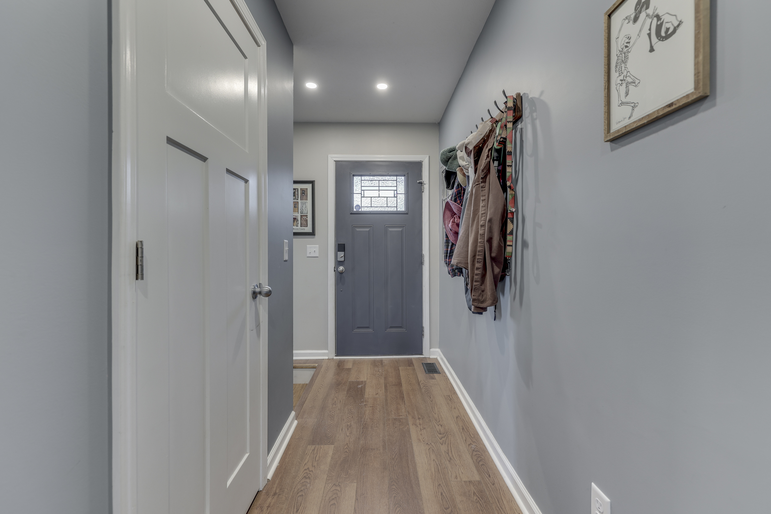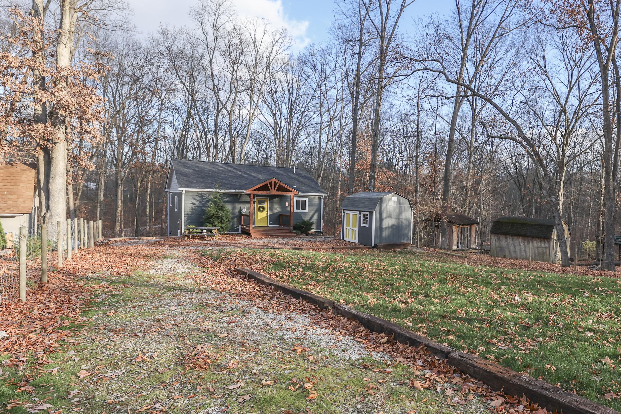 LIKE NEW! Purchase in confidence with this beautiful new construction in 2020. Peaceful Brown County setting overlooking wooded ravine and the unlimited recreation of the two clearest lakes in all of the state, Cordry and Sweetwater Lakes. 2 bedrooms and 2.5 baths. Step into the open concept great room with high vaulted ceilings and the wall of rear elevation windows. A perfect combination for comfort and relaxation. The updated light and bright chef’s kitchen is dream with abundant amount of cabinets and gleaming counters. You’ll love the triple ceiling fans that span the kitchen to the great room. This 1920 square foot home has the added benefit of being on a full walk out basement and is a solid poured concrete foundation. The lower level will be great for entertaining or the kids play area.The master bedroom bath is roomy and offers double vanities. The huge walk in shower is fully custom with eight directional shower sprays and tasteful tile surround. This home is well positioned with a nice sized front yard, while the rear with the full upper deck with unlimited uses. Plan your visit and move in for the new year!