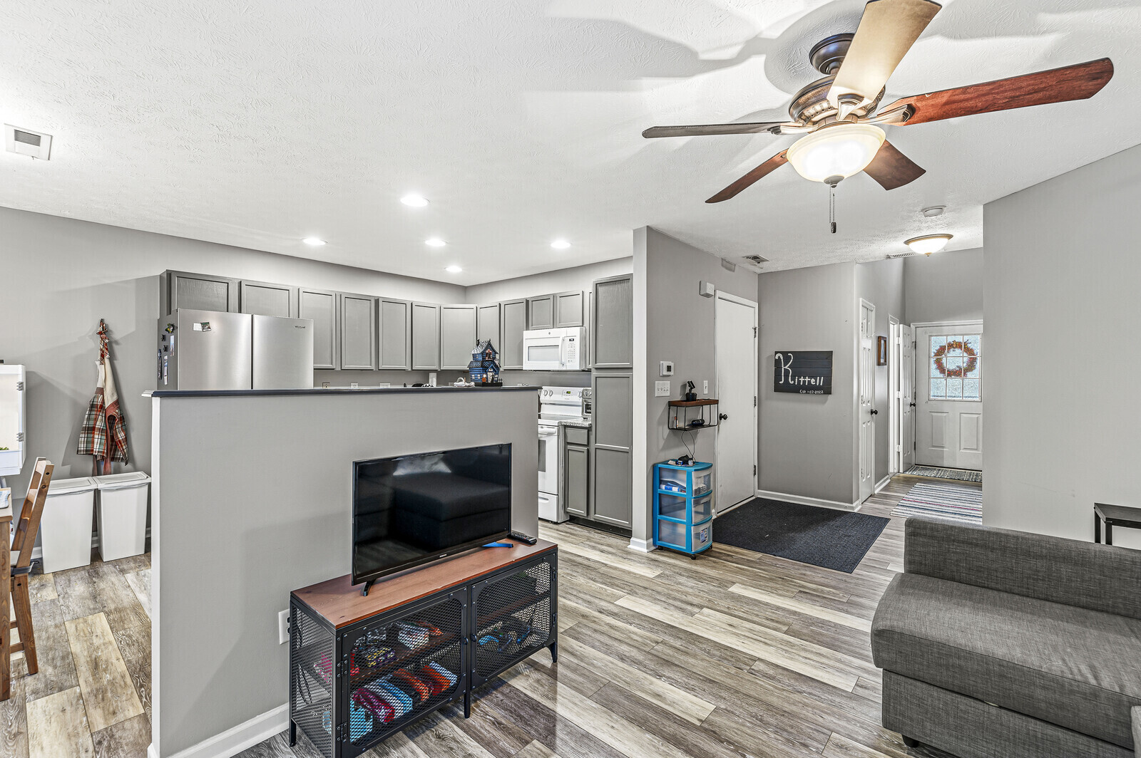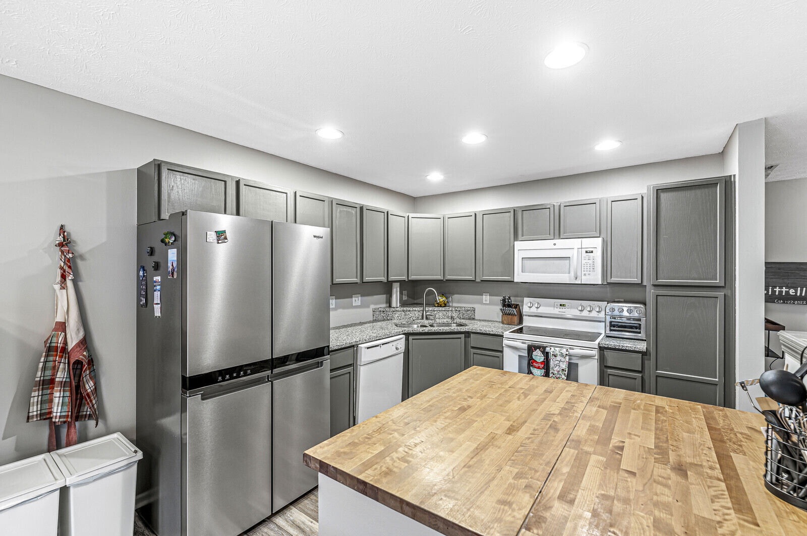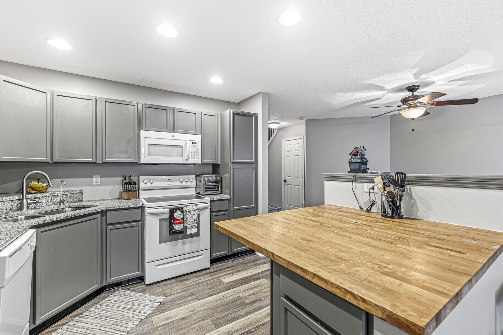 Updated condo in one of Indy’s most desired communities. Kitchen with granite counters, large butcher block island, and newer appliances. Open-concept kitchen, living, and dining spaces. New low-maintenance LVP flooring on the main level. Backyard vinyl fence for easy maintenance. Head upstairs to find 2 spacious BR, laundry (W/D stay), and an updated full bath. Large closets for ample storage and attached garage. All new windows and siding within the last year. Convenient location close to Grand Park, Monon Trail, US 31 and just minutes from 465.