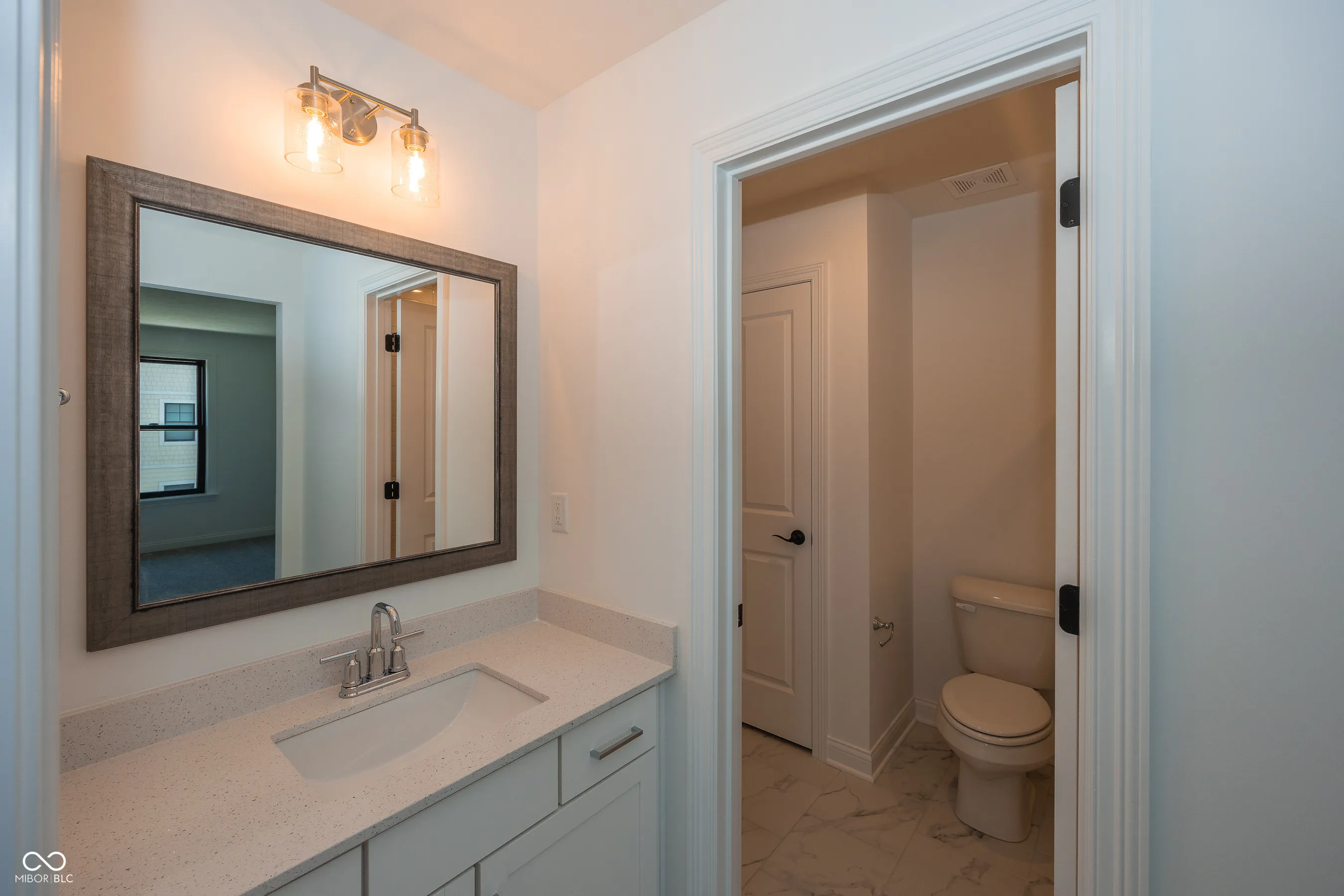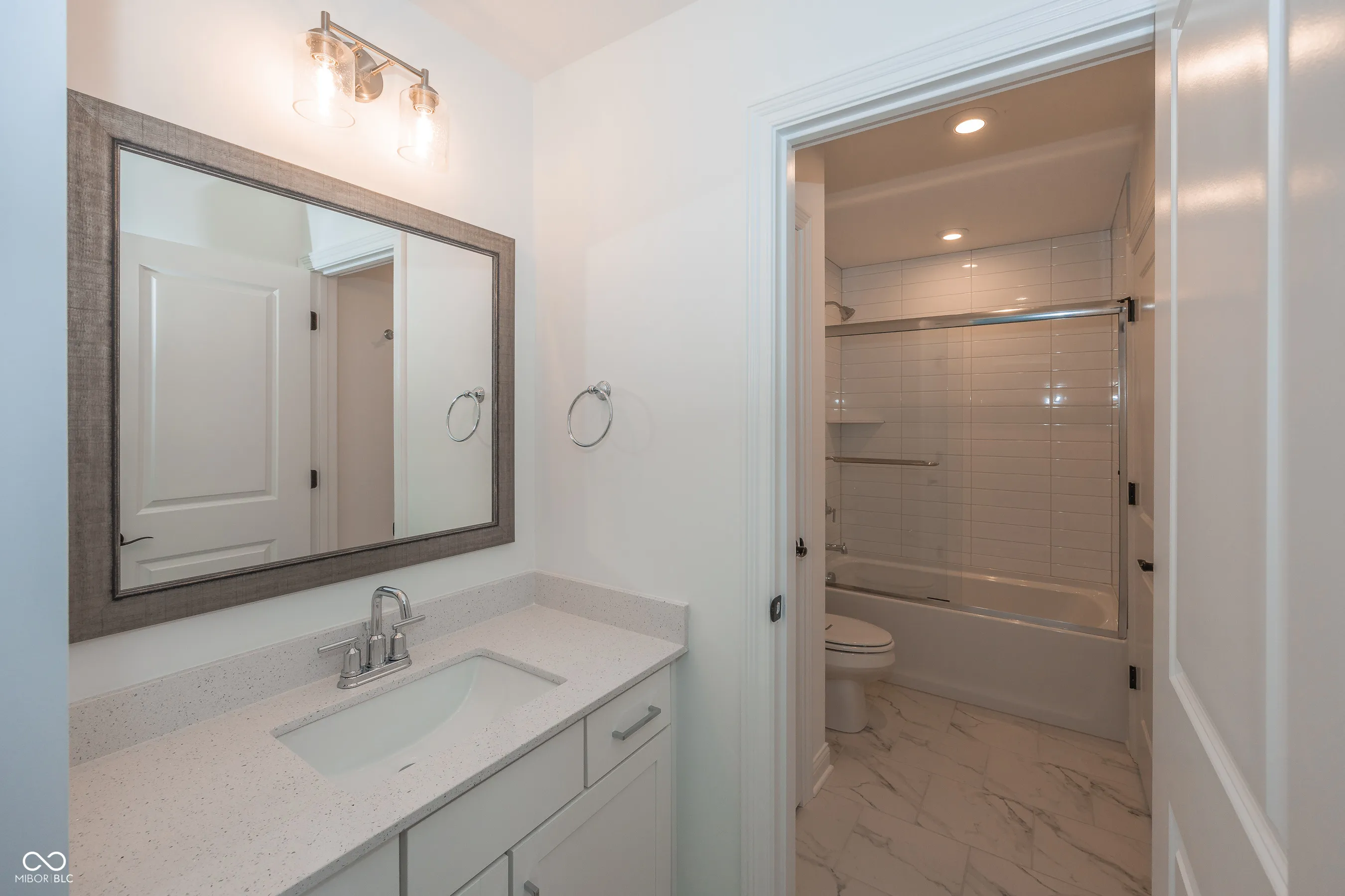 Welcome to this 5-bedroom, 5-bath perfectly appointed newly constructed home nestled in the premiere custom community of Timberstone located in Fishers. Timberstone is in walking distance of Geist view elementary school, minutes to Geist Lake & Hamilton Town center shopping, The community recreation center includes a pool, bathhouse, playground, & basketball court. Discover the epitome of modern living in this brand-new 5-bedroom 5-bathroom home w/captivating features & thoughtful design. The East sun fills the two-story family room with warmth, creating a bright & inviting space, perfect for gatherings & relaxation. Enjoy the convenience of a first-floor in-law suite, providing comfort & privacy for guests or multi-generational living. Retreat to the luxurious primary suite featuring a spa-like bathroom & expansive walk-in closet for the ultimate in relaxation. A secondary bedroom offers a private ensuite, ideal for guest or a teenage retreat. Bedrooms 2 & 3 are connected by a stylish Jack & Jill bathroom, blending convenience with contemporary design. The well-appointed gourmet kitchen is a culinary delight, featuring Jenn-Aire appliances, Cabmria quartz countertops & ample storage space. Step outside to a covered outdoor living area w/ a brick gas fireplace perfect to enjoy year-round from sunny mornings to breezy evenings. The finished basement adds extra living space, providing room for entertainment, a home gym or a cozy retreat. Convenient oversize 3 car garage with plenty of space for parking and storage.