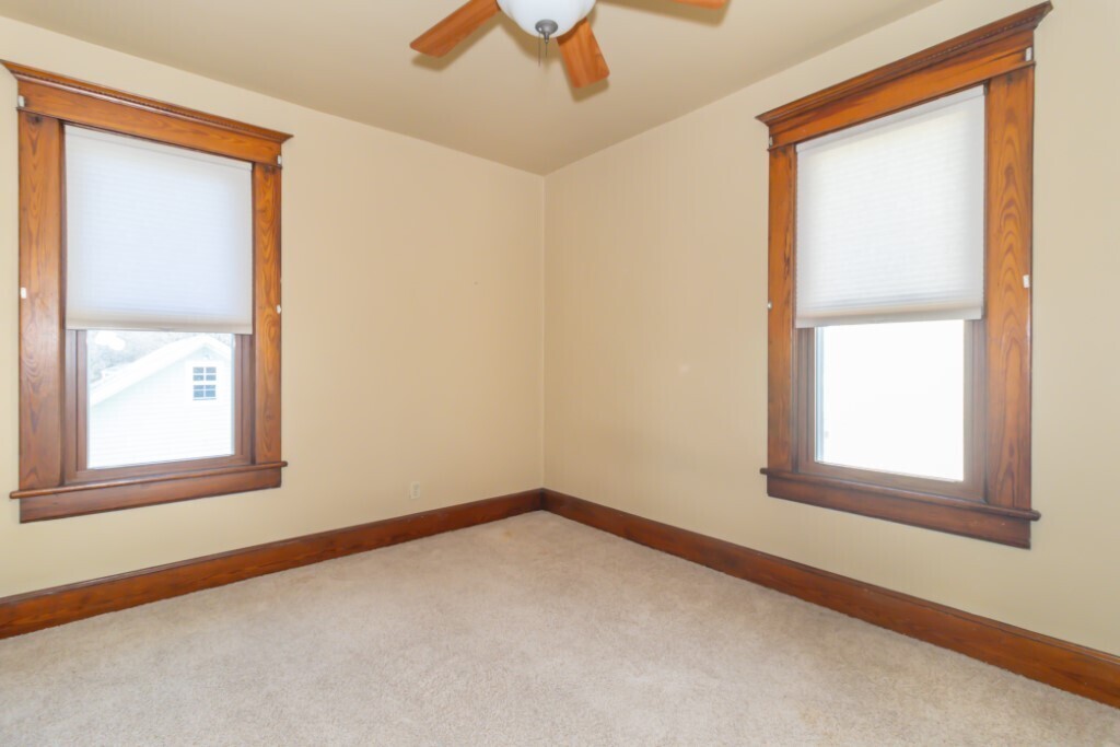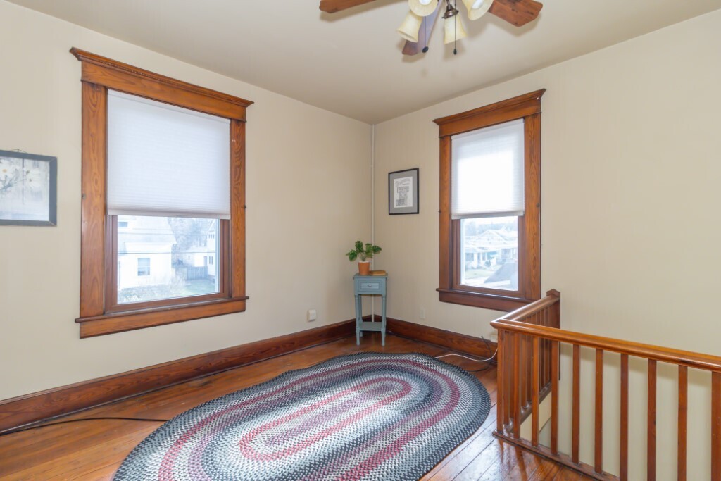 Truly a charming 3 bedroom, 1.5 bath home. Original woodwork, large windows and lots of natural light. The front porch is extended living space! Plenty of room to have outdoor furniture and enjoy the neighborhood and the outside. Welcoming entry with high ceilings throughout the first floor. An abundance of living space, full living room, dining room, family room, breakfast nook and kitchen all on the main level. The family room was a very nice addition that adds extra living space and storage. The kitchen was updated and has counter space and lots of cabinets. Three large bedrooms, bonus office/den area, covered balcony, and full bath upstairs. If you want storage, this home has an attic with stairs and a full clean basement. The backyard is fenced with a nice patio space and a very large detached garage with storage space above. Off street parking in driveway or garage. Very well maintained home.