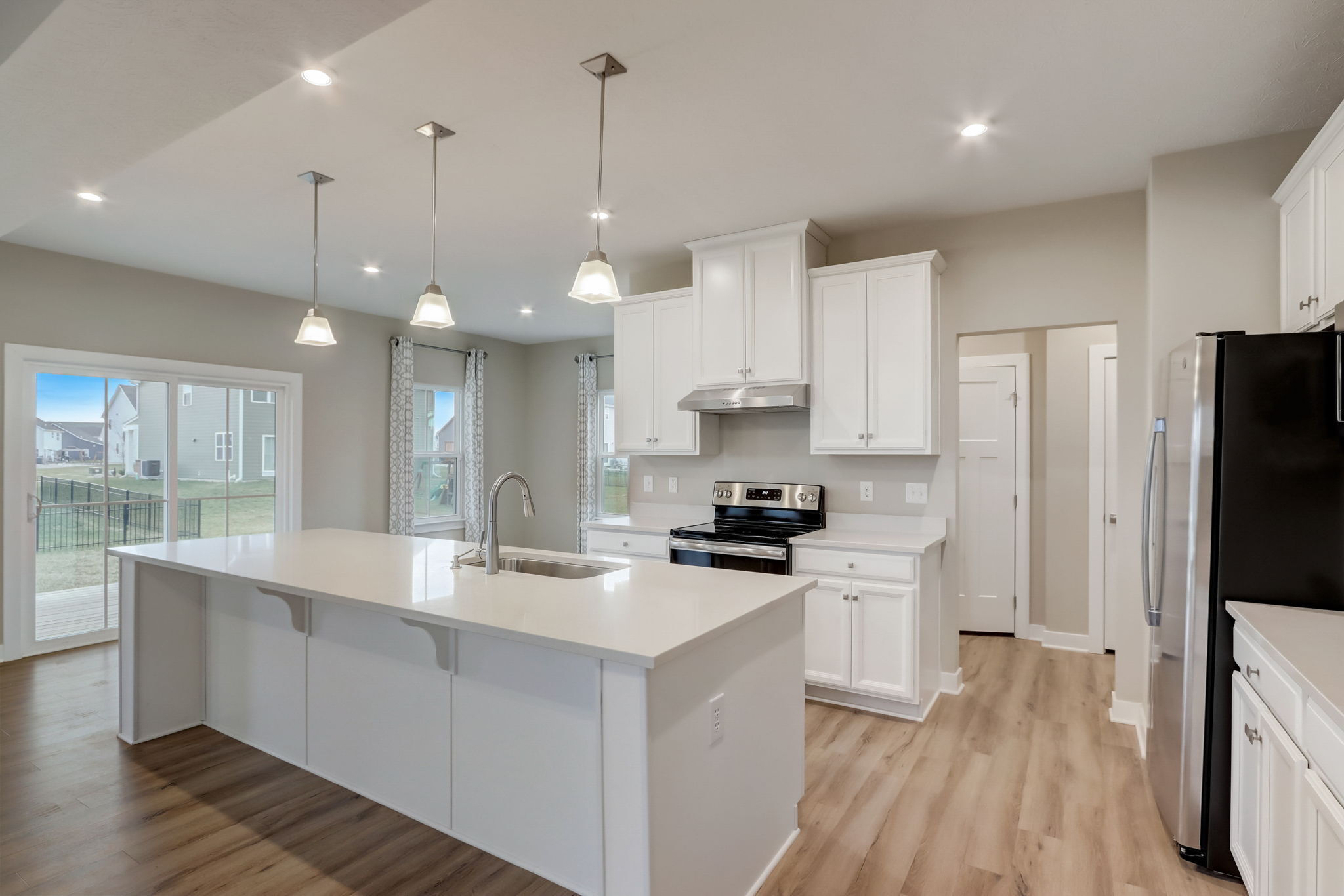 This stunning model home, showcasing the Columbia floorplan, is brand new and has never been occupied. Situated in the Briar Creek neighborhood, this turnkey property offers 3 bedrooms and 2.5 baths, providing ample space for comfortable living. As you step inside you are greeted by the inviting open floor plan with an abundance of natural light. The main floor includes a versatile flex space ideal for an office, a spacious center island with seating room, and a generously sized great room equipped with wiring for a wall-mounted TV. The expansive primary suite features a massive walk-in closet and a private bath with dual sinks and a shower stall. The unfinished basement presents an opportunity for you to unleash your creativity and design a space tailored to your preferences. Plumbing and electrical are connected for a water softener in basement. Positioned on an expansive corner lot, this property offers ample space for various outdoor activities. Welcome home!
